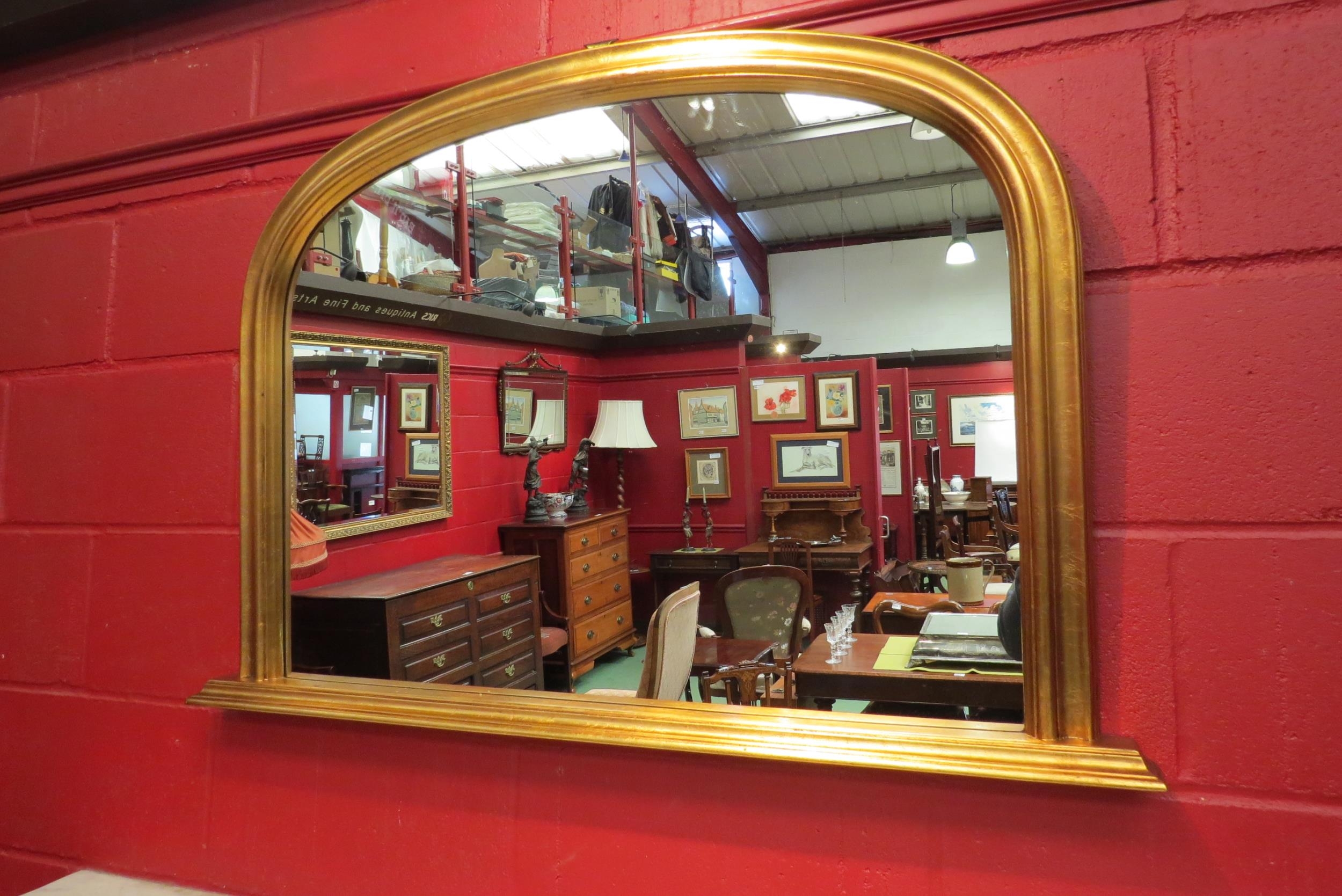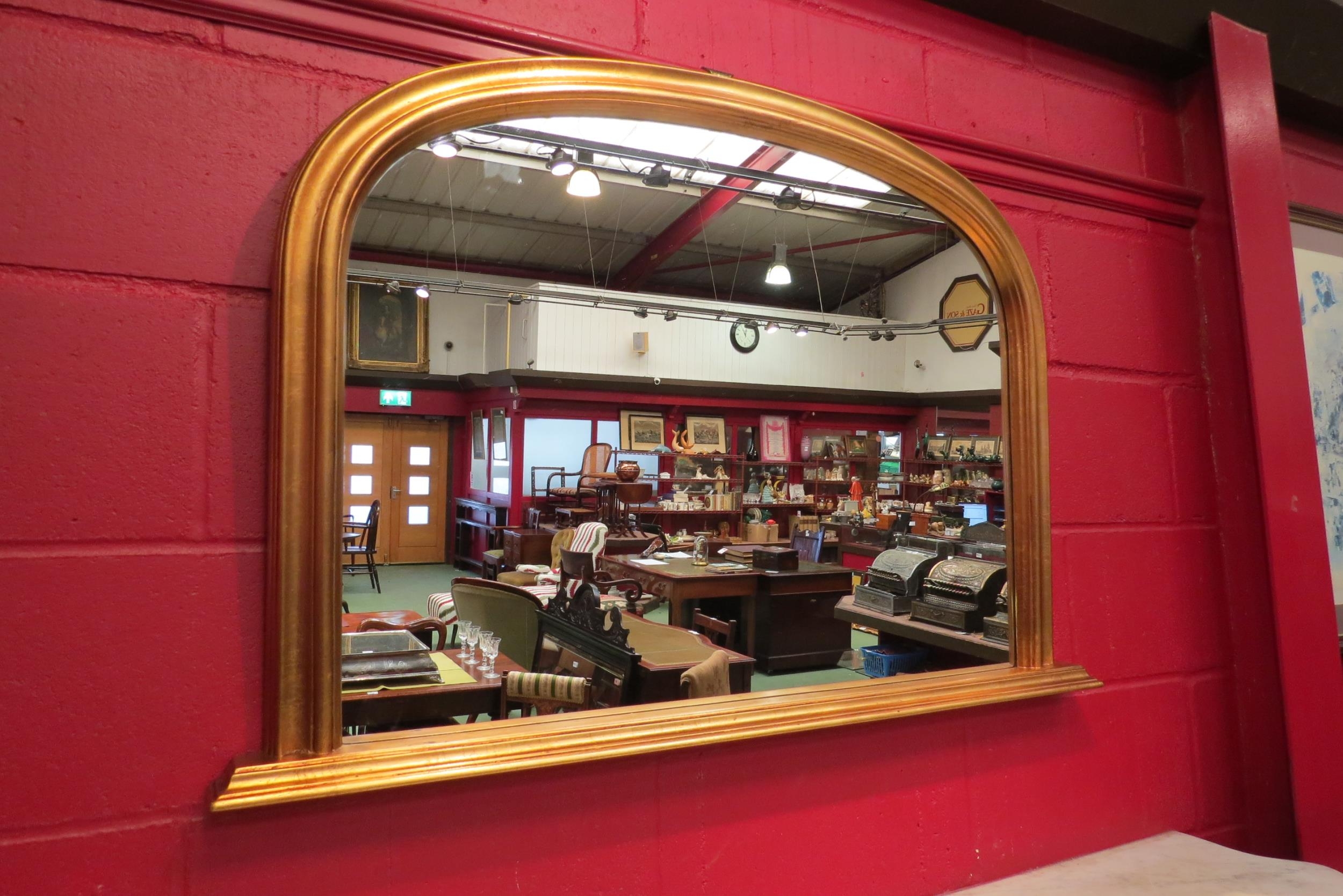 A Victorian style arch top gilt frame wall hanging mirror, 72cm x 107cm total (R) £40