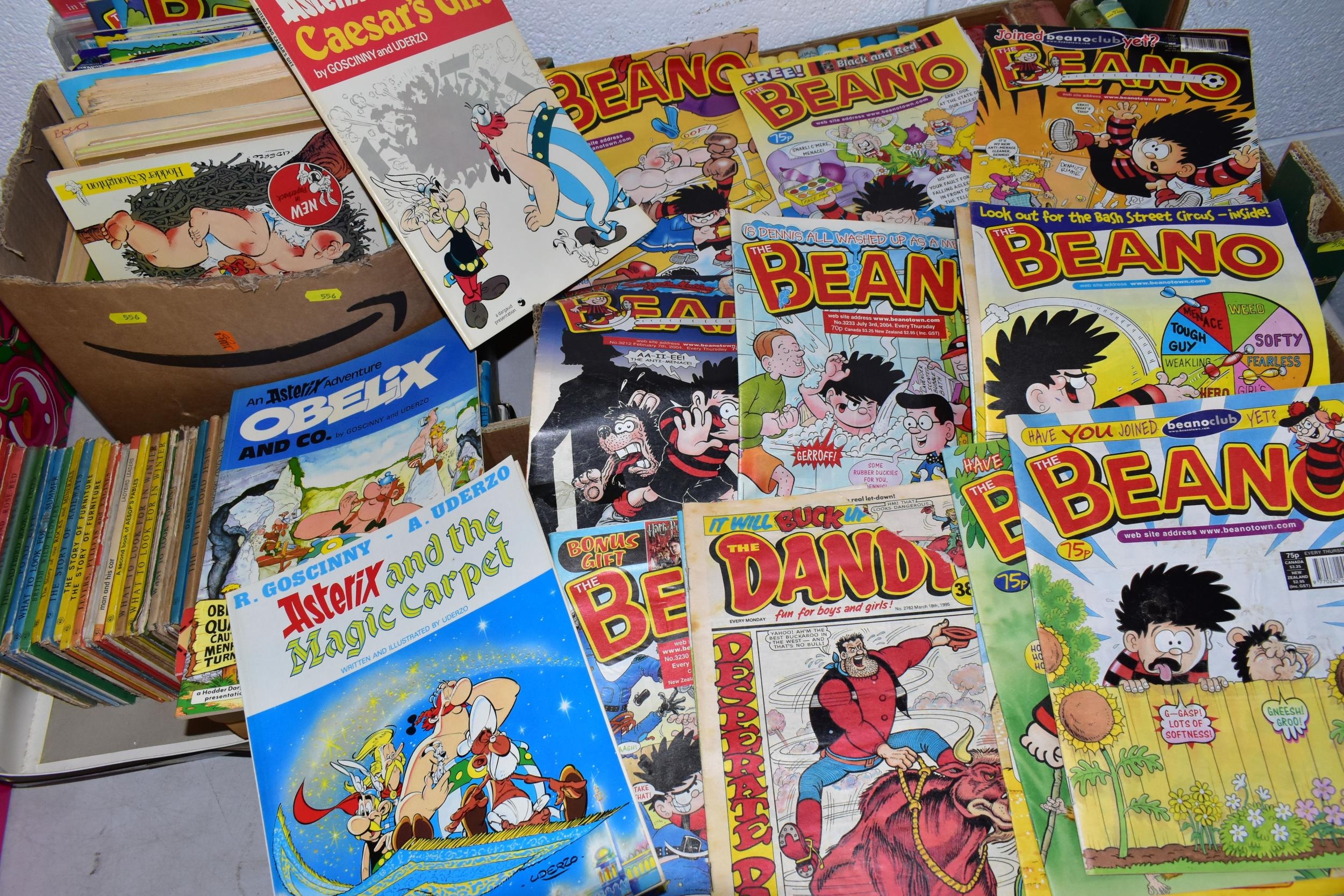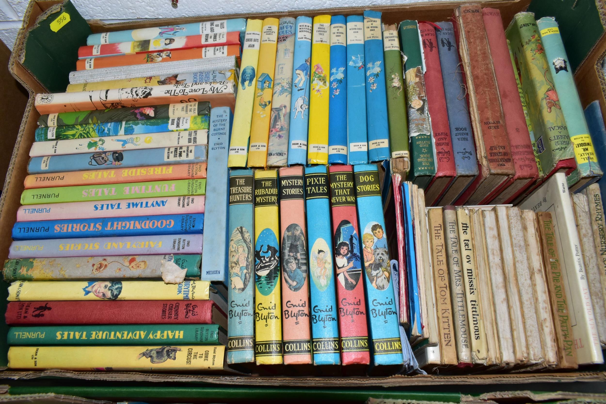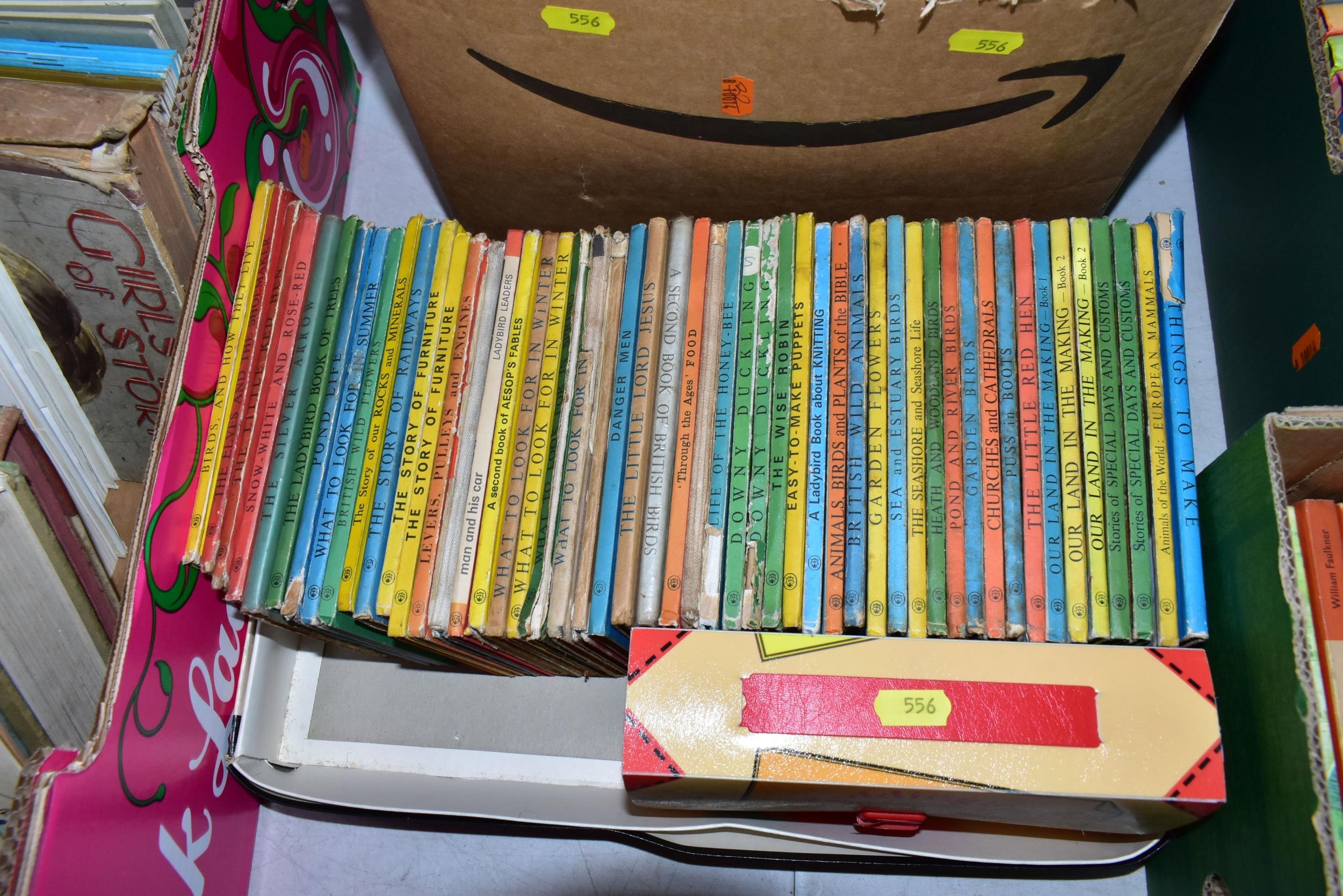 FIVE BOXES OF BOOKS, EDUCATIONAL PAMPHLETS & COMICS, in hardback and paperback formats, four of the boxes mostly consist of Children's books and include many title by Enid Blyton (various Publishers) and Beatrix Potter, there are over fifty 'Ladybird' titles and one box containing over eighty factual, classic or contemporary fiction titles, mostly published by Penguin, Pelican, Puffin and Pan, authors include Roald Dahl, Agatha Christie, Robert Graves, George Orwell and many others (5 boxes)