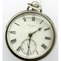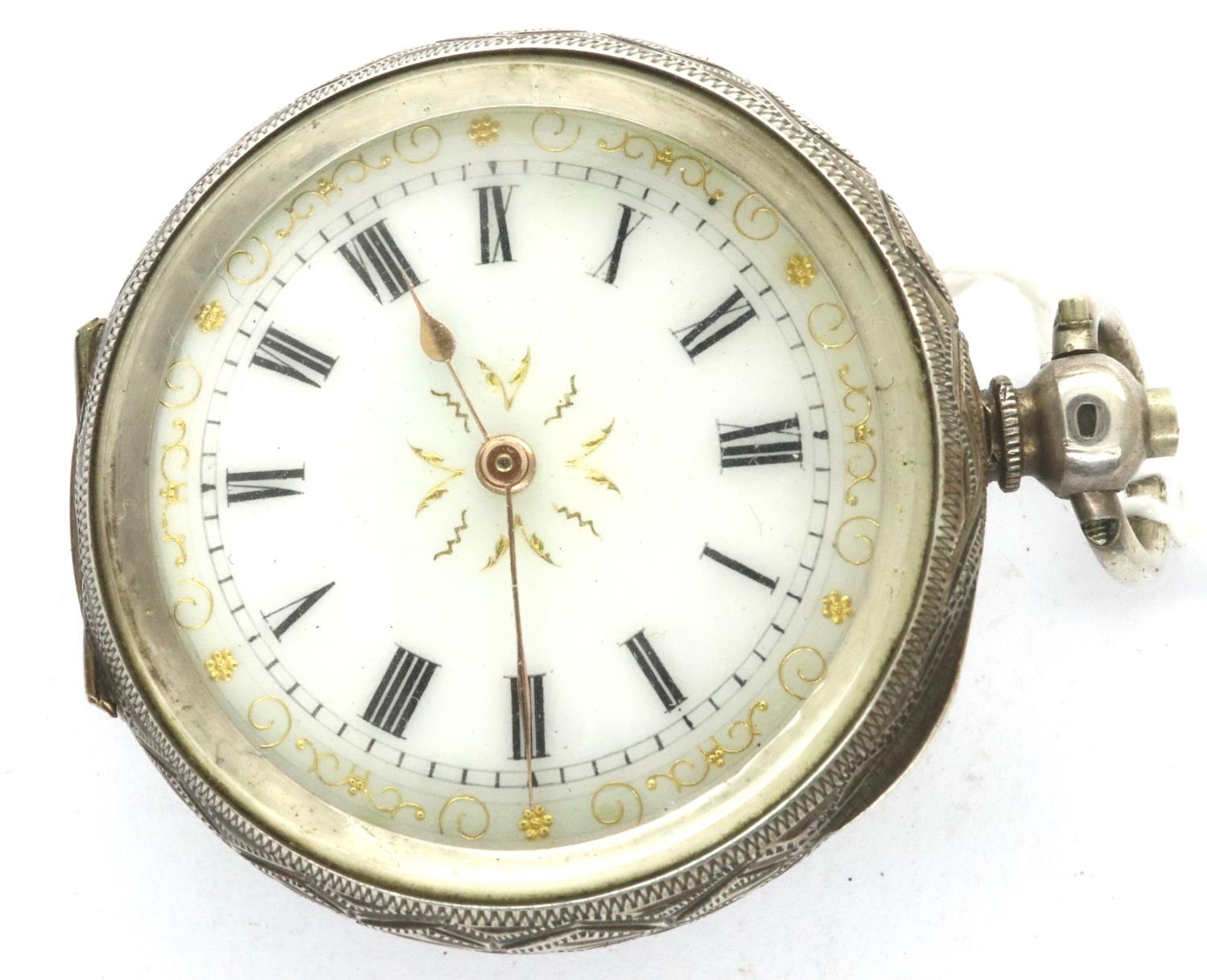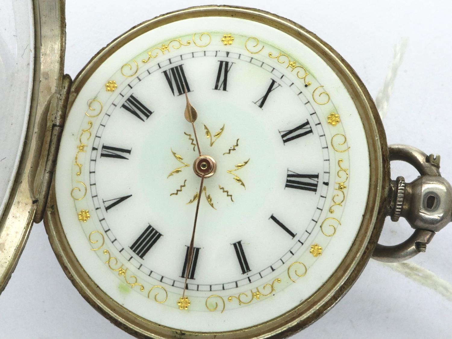 Ladies silver fob watch, D: 35 mm, not working at lotting. P&P Group 1 (£14+VAT for the first lot and £1+VAT for subsequent lots)