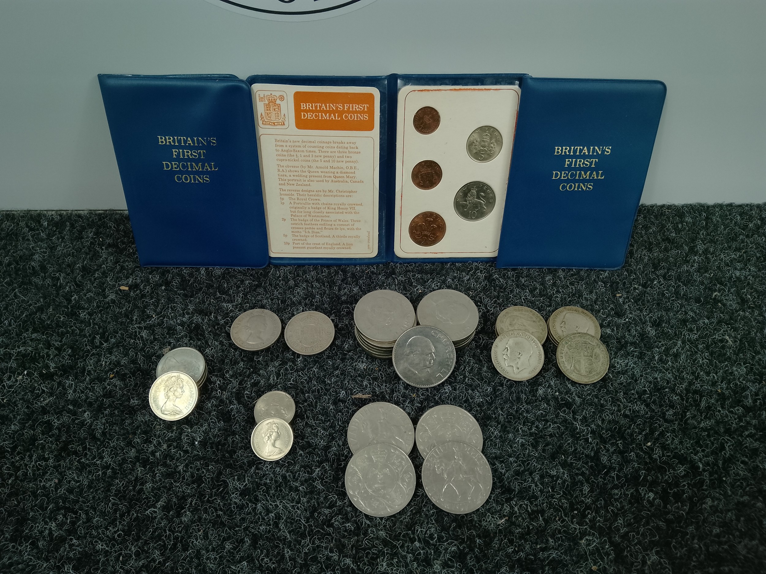 Qty Of Coins - Including Britains First Decimal Coins, 4x Elizabeth Crowns, 8 George VI Half Crowns & More