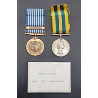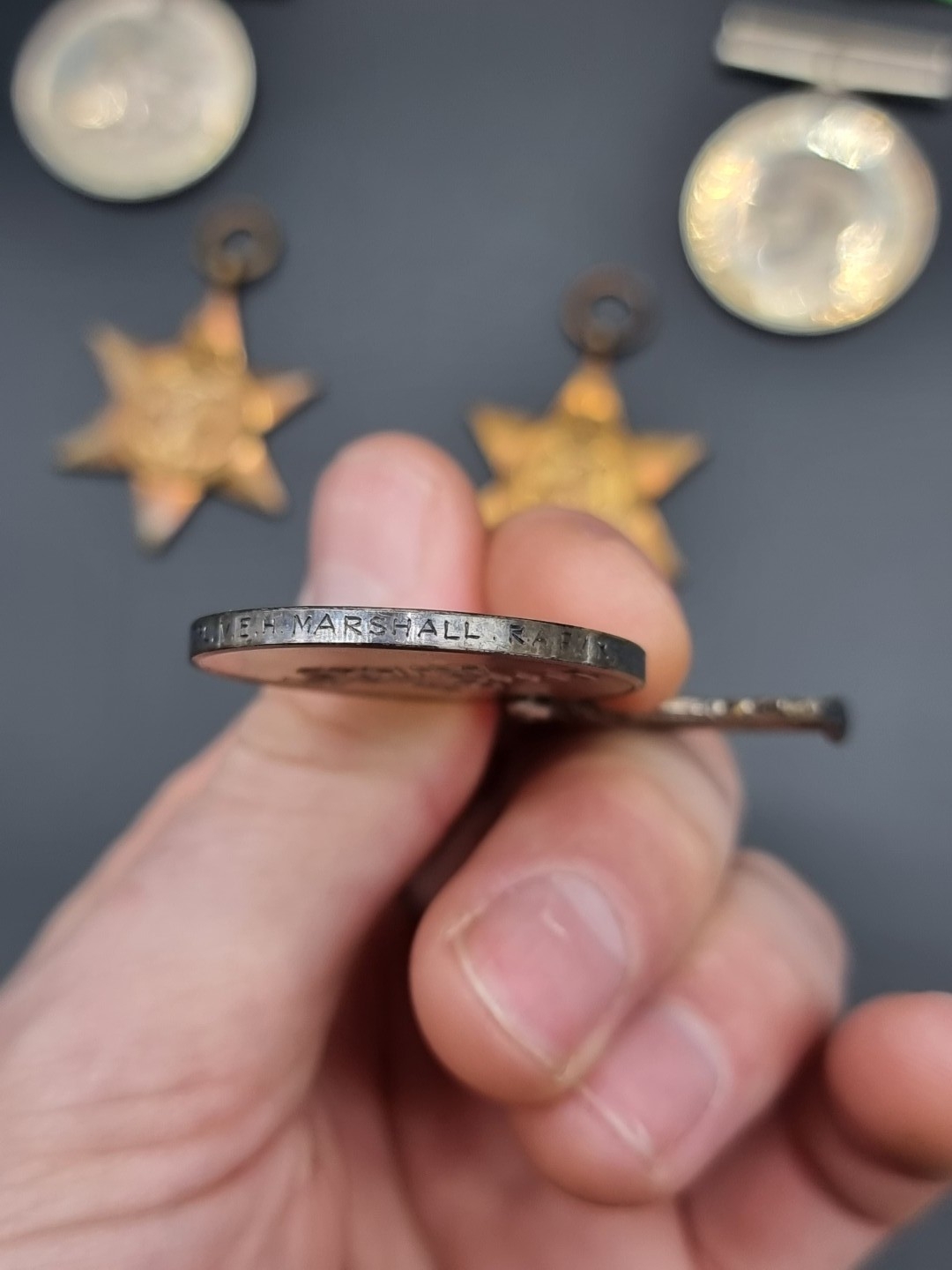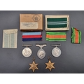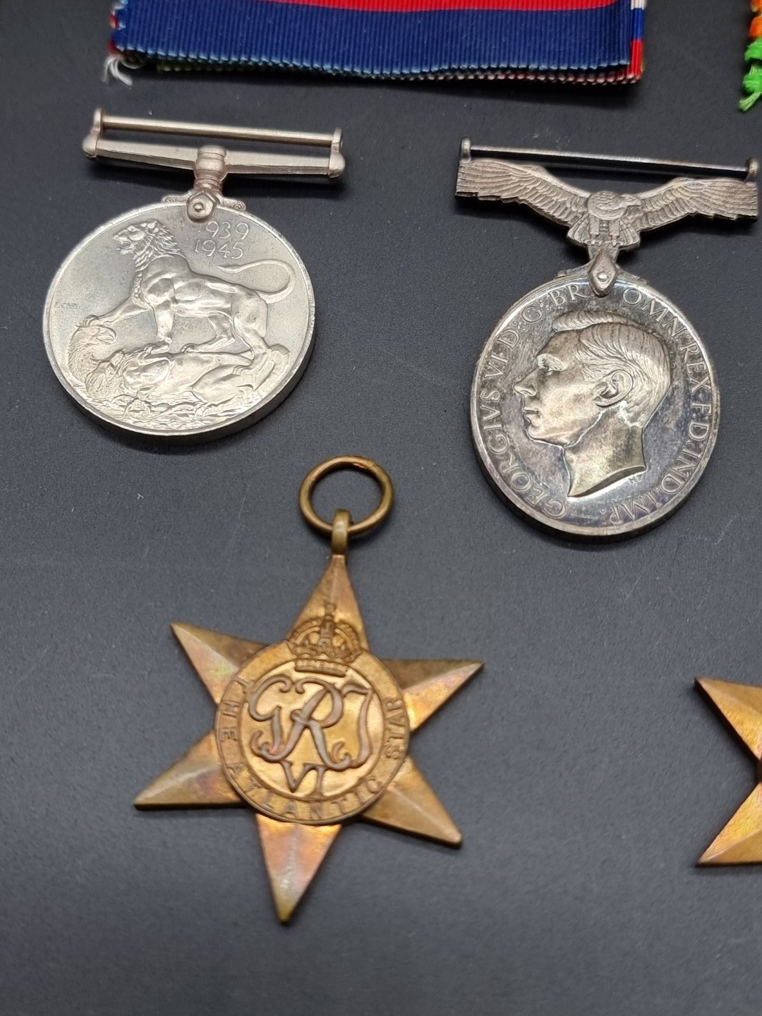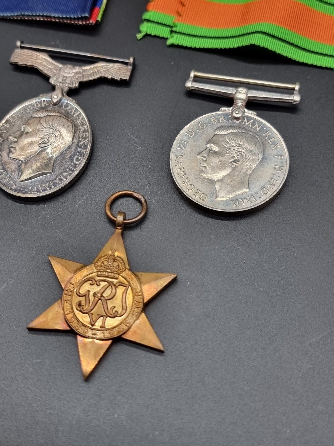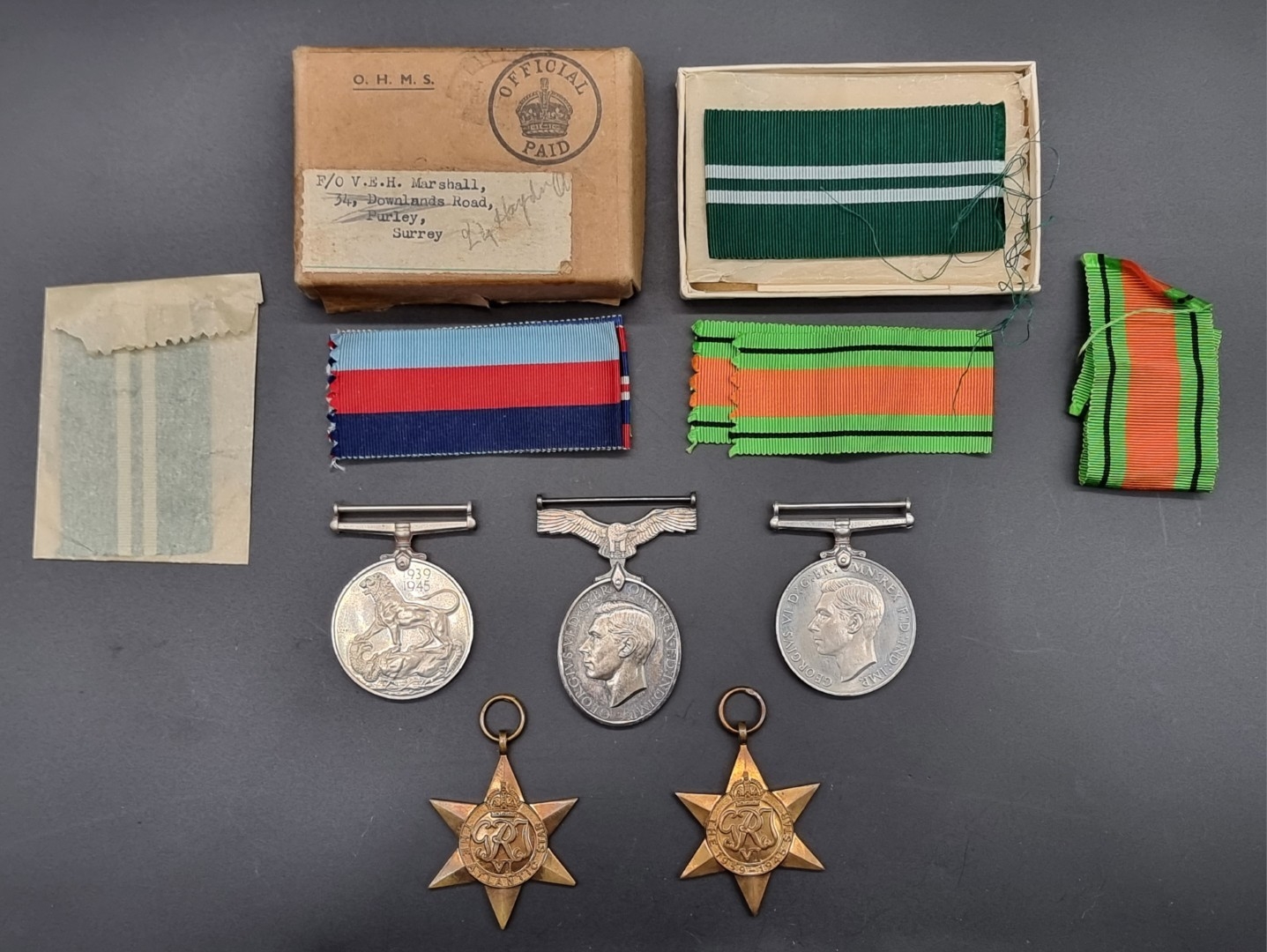 Medals: a George VI Air Efficiency Award and group of four WWII medals, to 754453 Cpl V E H Marshall R.A.F.V.R, boxed.