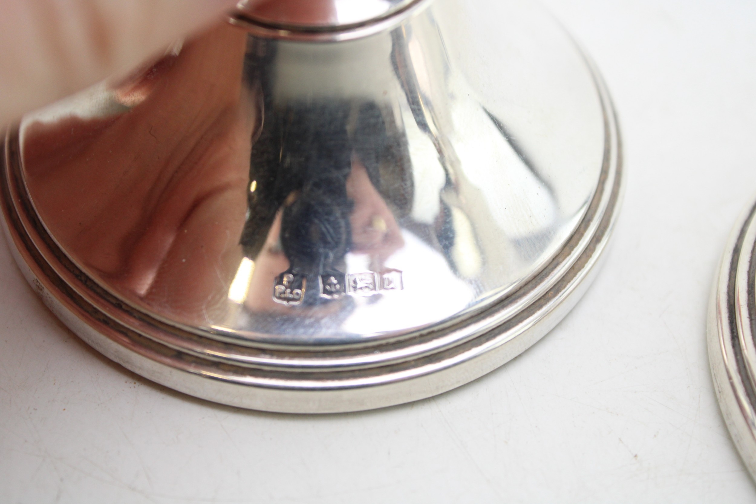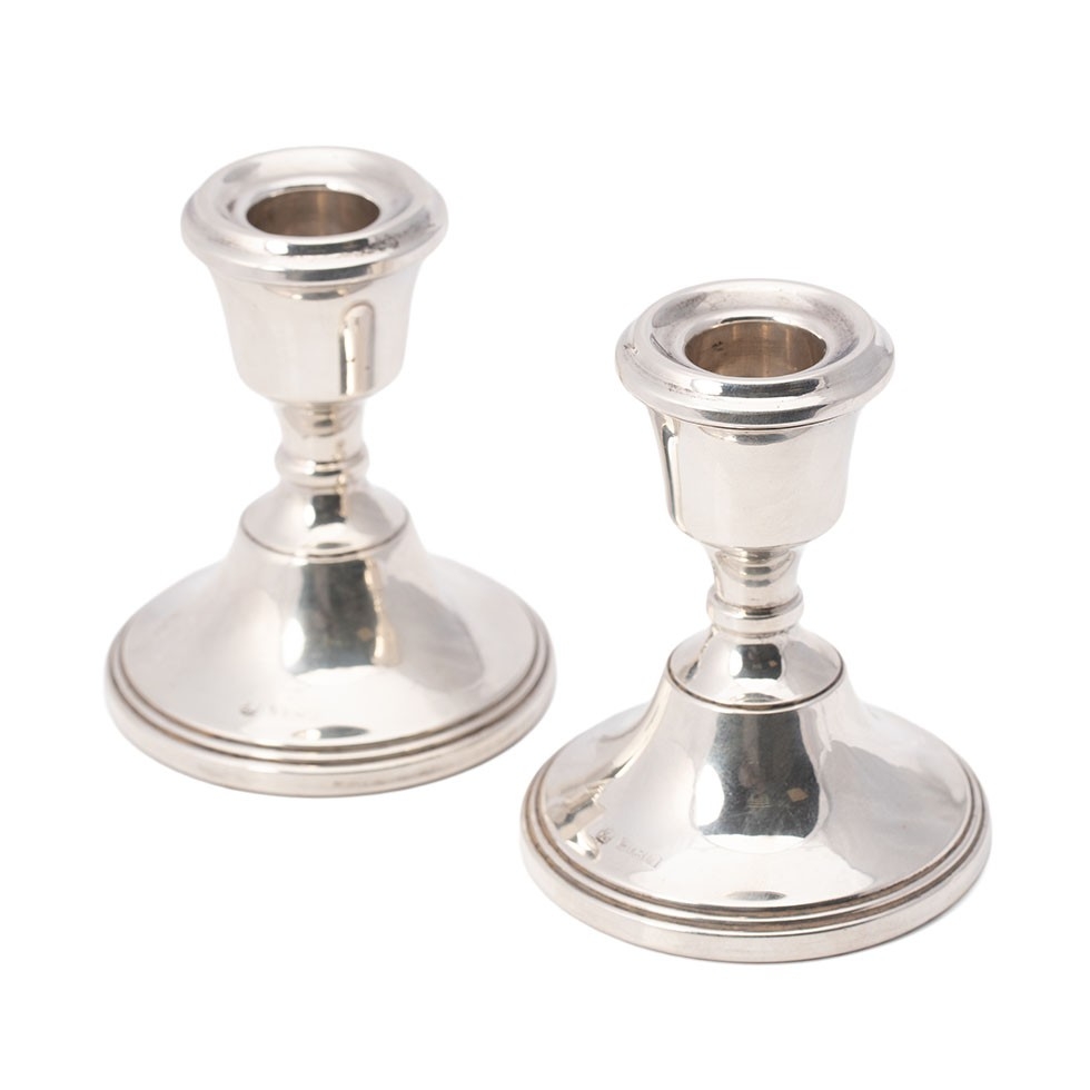 A pair of silver squat candlesticks, Birmingham 1969, 9.5cm tall.