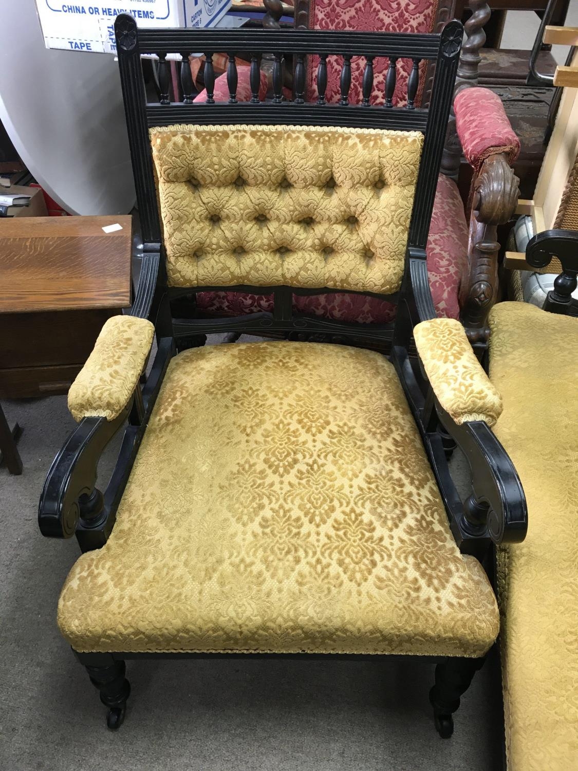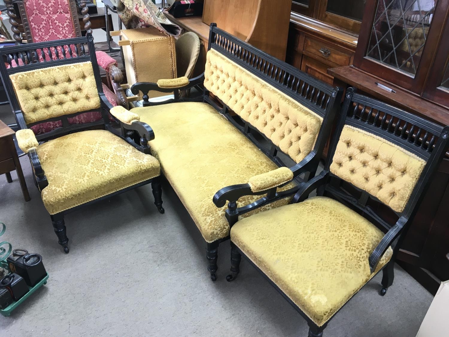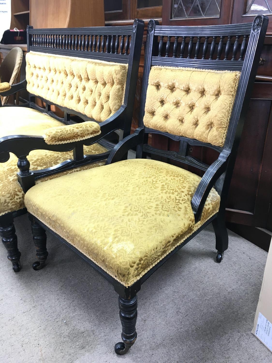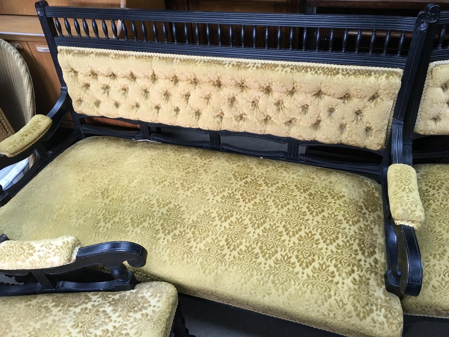 Three piece suite consisting of two arm chairs and a sofa made with ebonsied wood