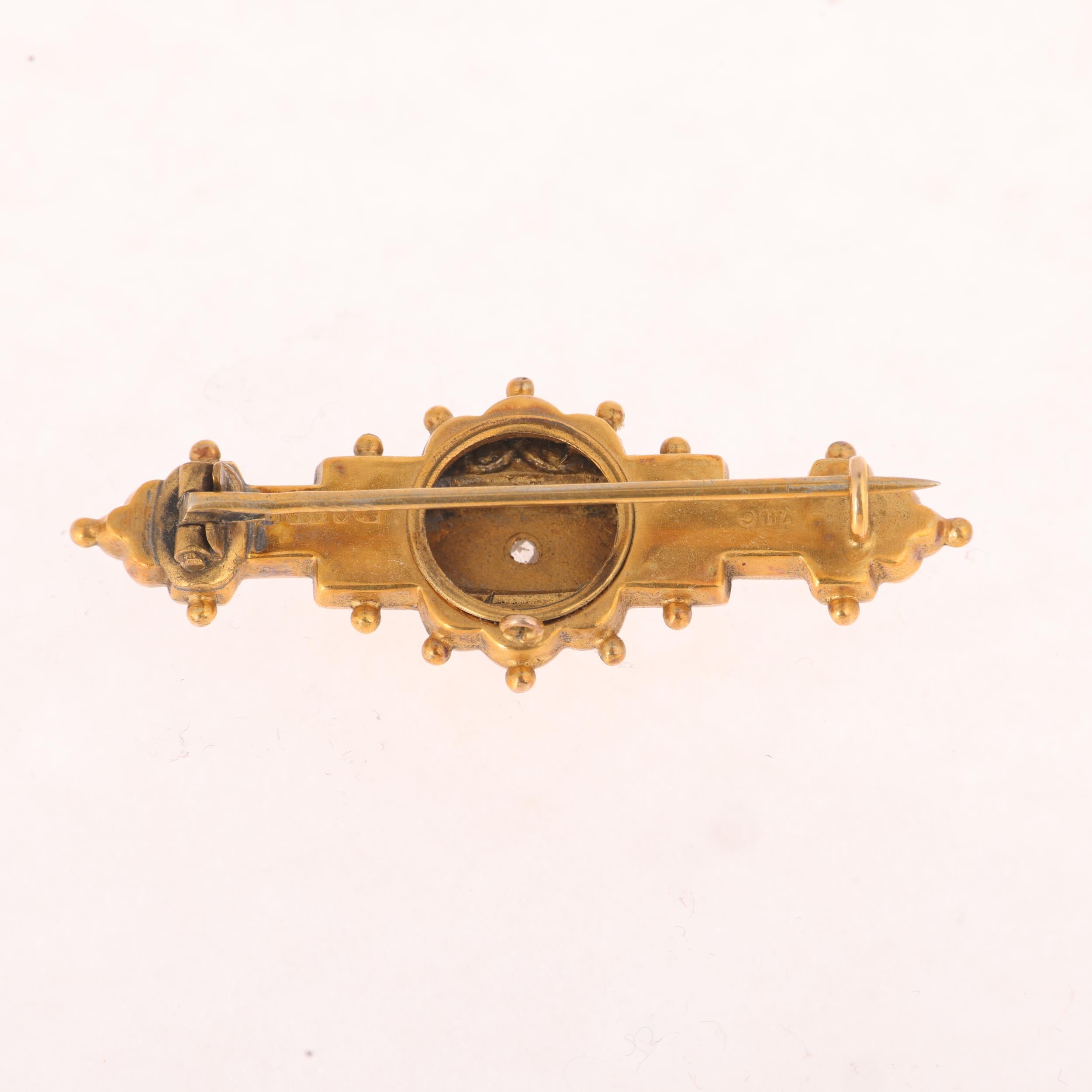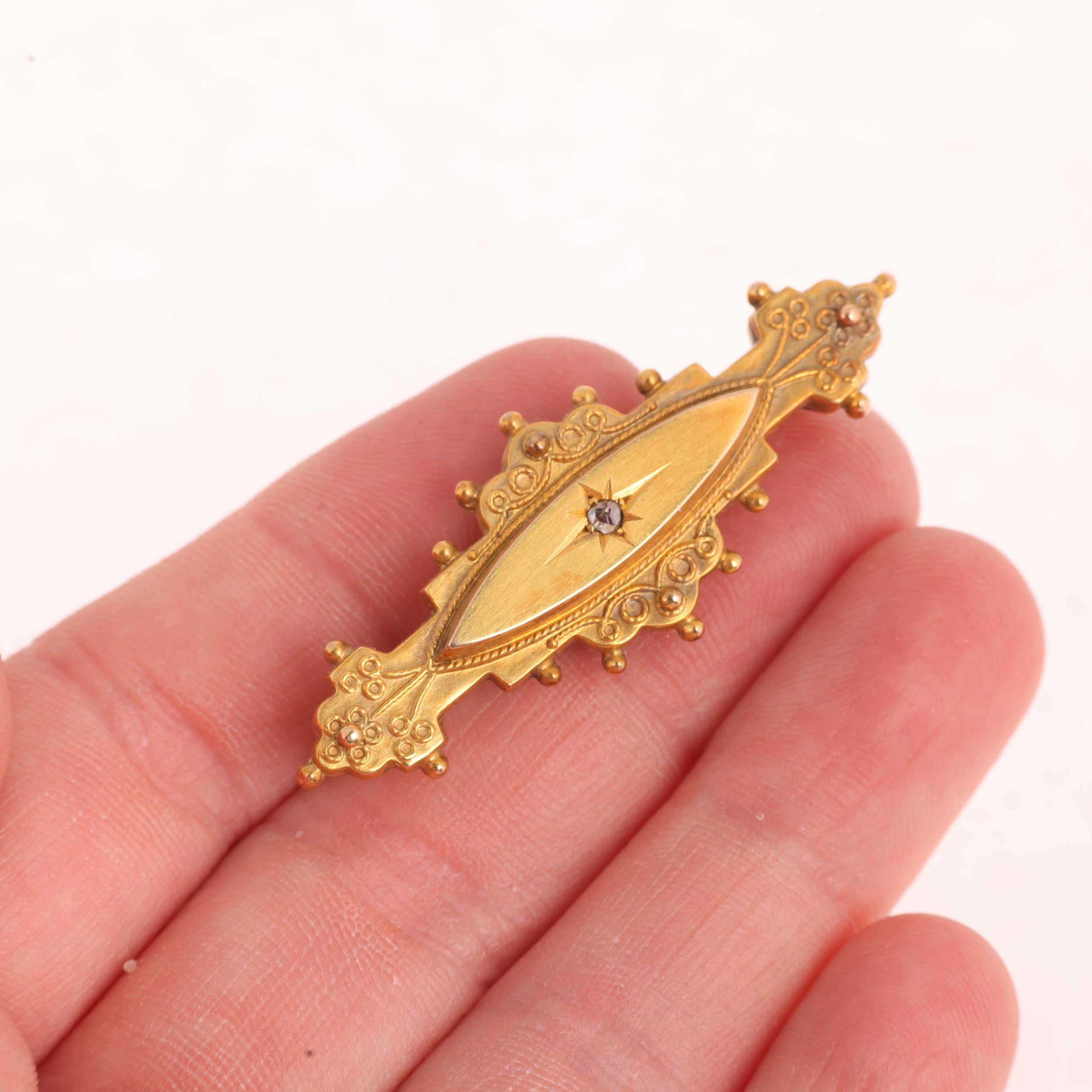 An Antique Etruscan Revival 9ct gold diamond bombe brooch, maker WH Co, Chester 1900, 46.7mm, 3.1g
