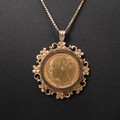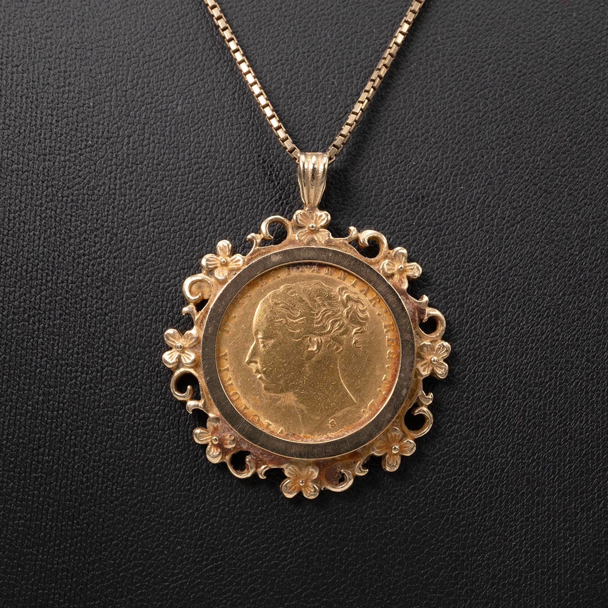 A young Victoria 1875 pendant sovereign set in 9ct mount with box link necklace with spring ring clasp, L46cm, weight 16.72 grams.
