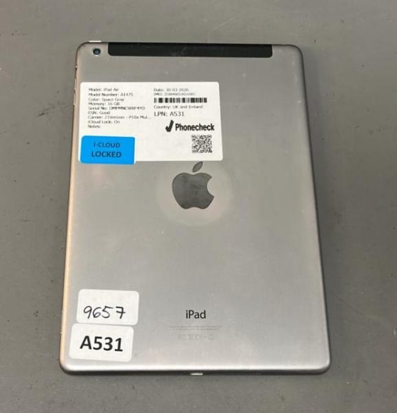 APPLE IPAD AIR / A1475/ SPACE GRAY/ 16GB/ I-CLOUD LOCKED/ IMEI: 358846053651083