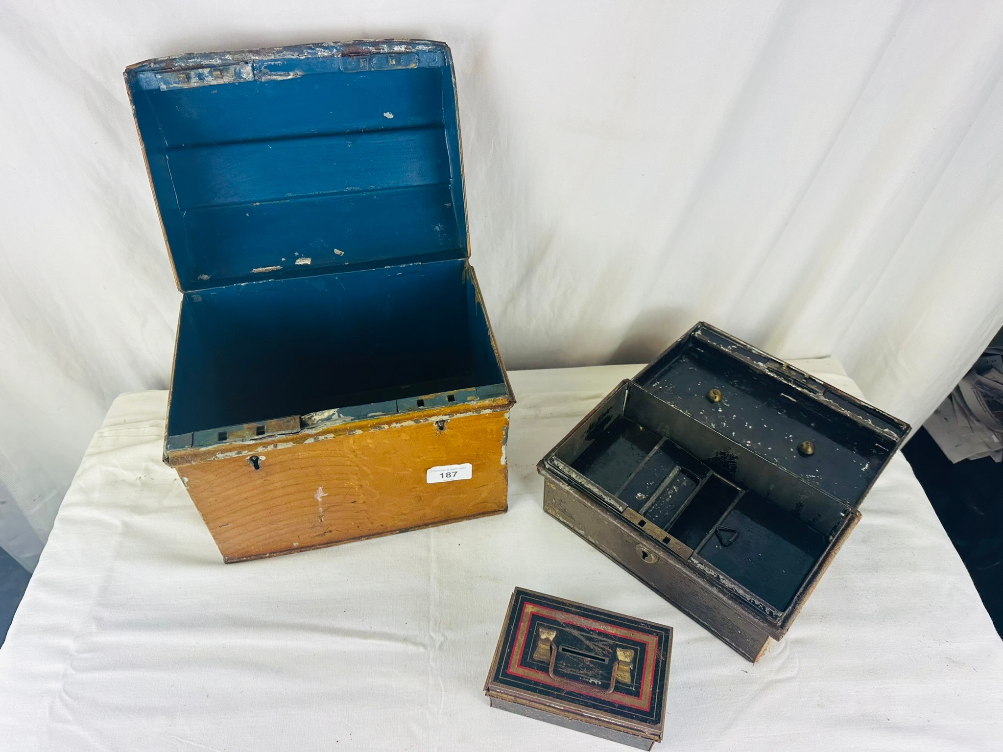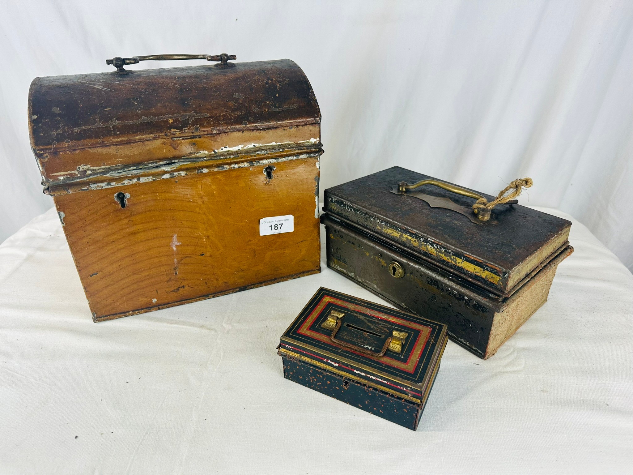 OLD DEED DISPLAYED BOXES X3 LARGEST H24CM W26CM