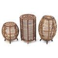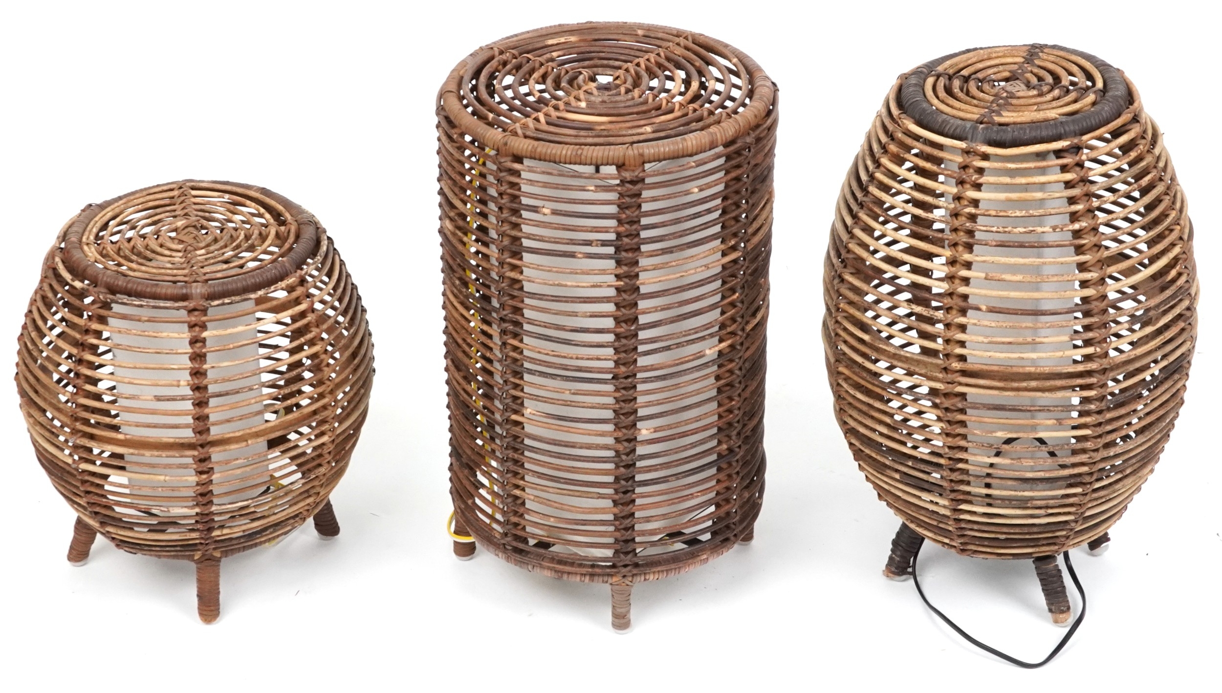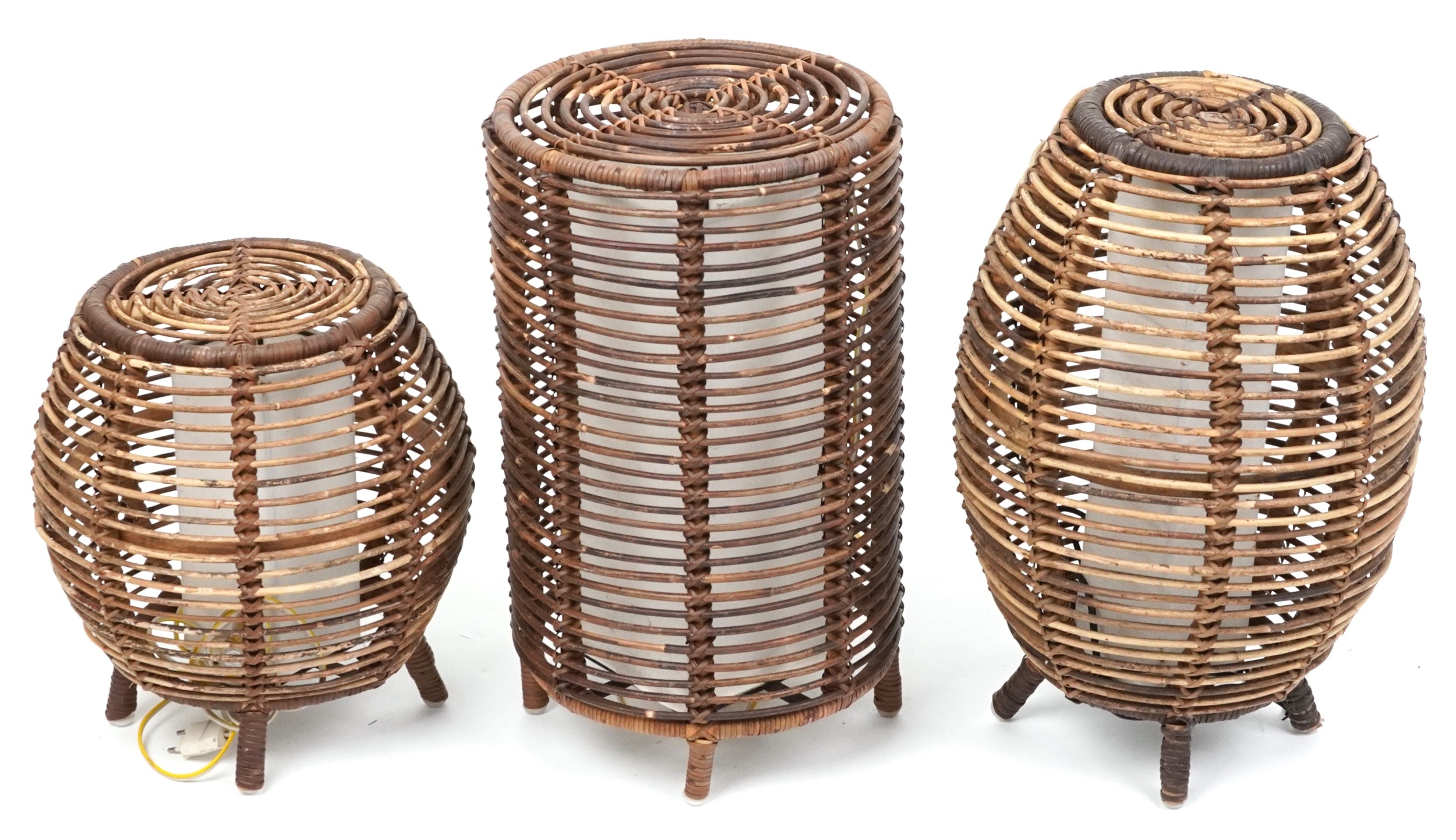 Three similar mid/late 20th century wicker floor lamps after a design by Tito Agnoli, the largest 52cm high.