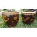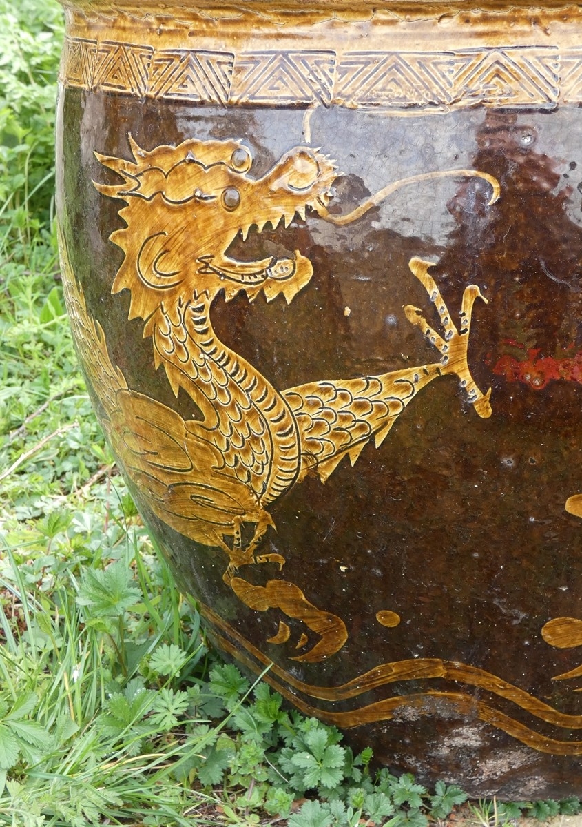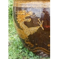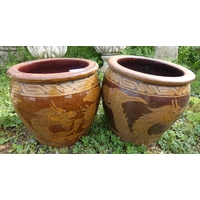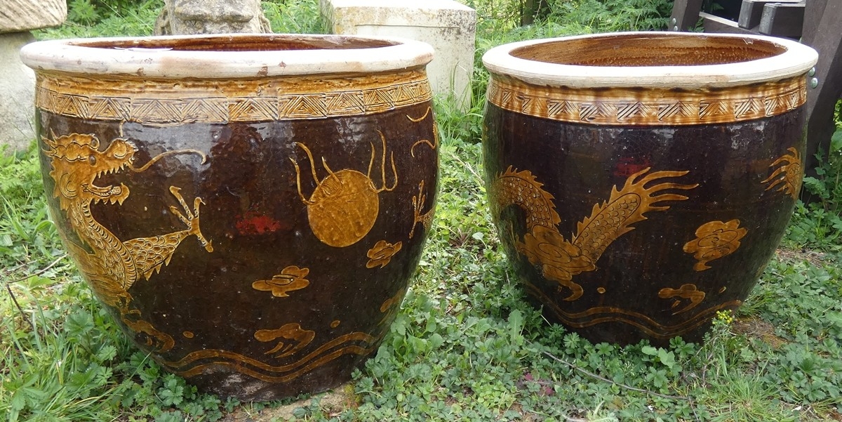 Pair of Oriental Glazed Garden Pots Depicting Dragons - Approx H: 42cm