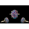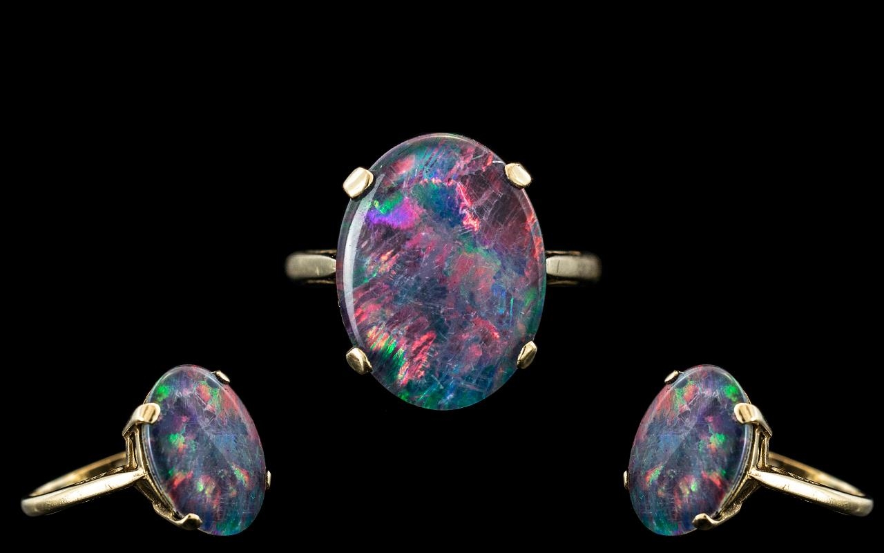 Antique Period - Attractive 9ct Gold Doublet Opal Set Ring of Oval Form. Excellent Colours, Est Weight 8.00 cts, Full Hallmark to Interior of Shank. Ring Size - O. Excellent Condition Including Shank / Setting - Please Confirm with Photo. Provenance - From a Ladies Private Collection.