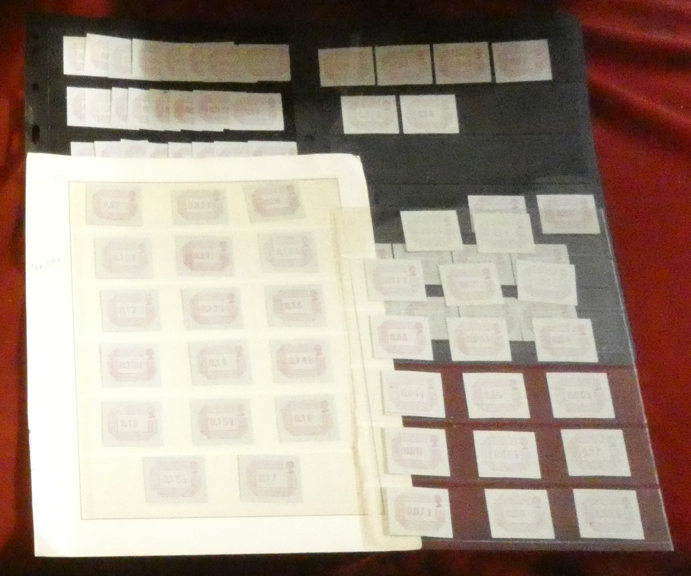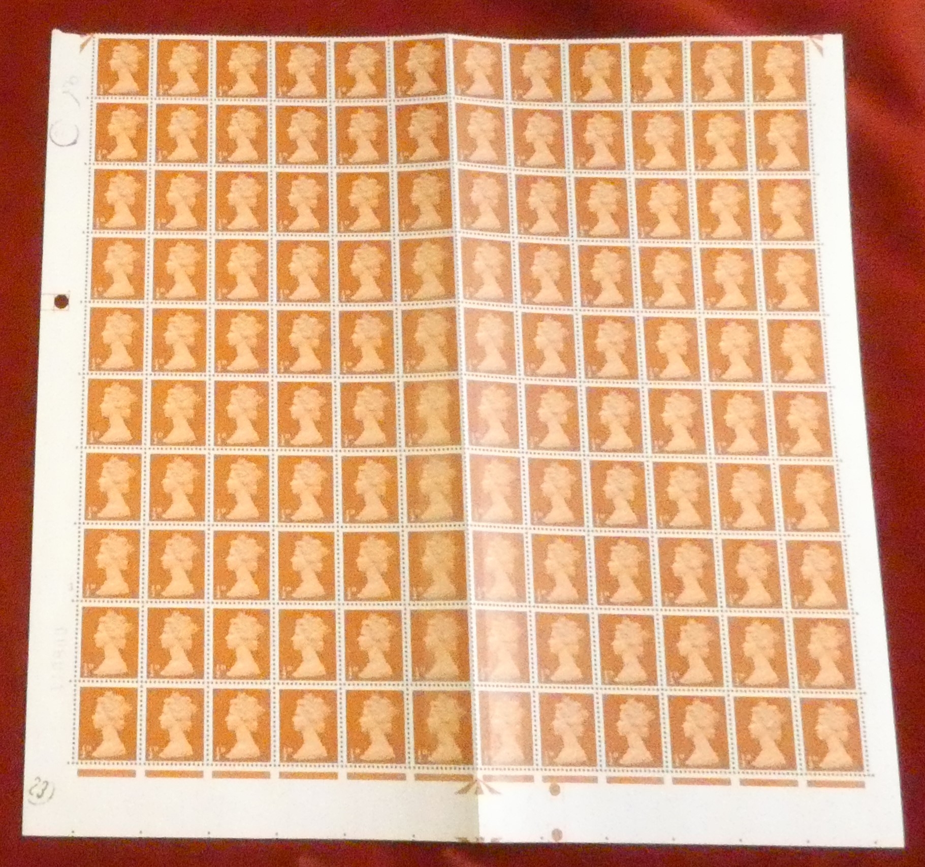 Great Britain 1968-1984 u/m Machins includes SG723 1/2d sheet of 120, booklet SGNA1 2002, seven booklet panes u/m, two Royal Mail u/m poostage label sets.