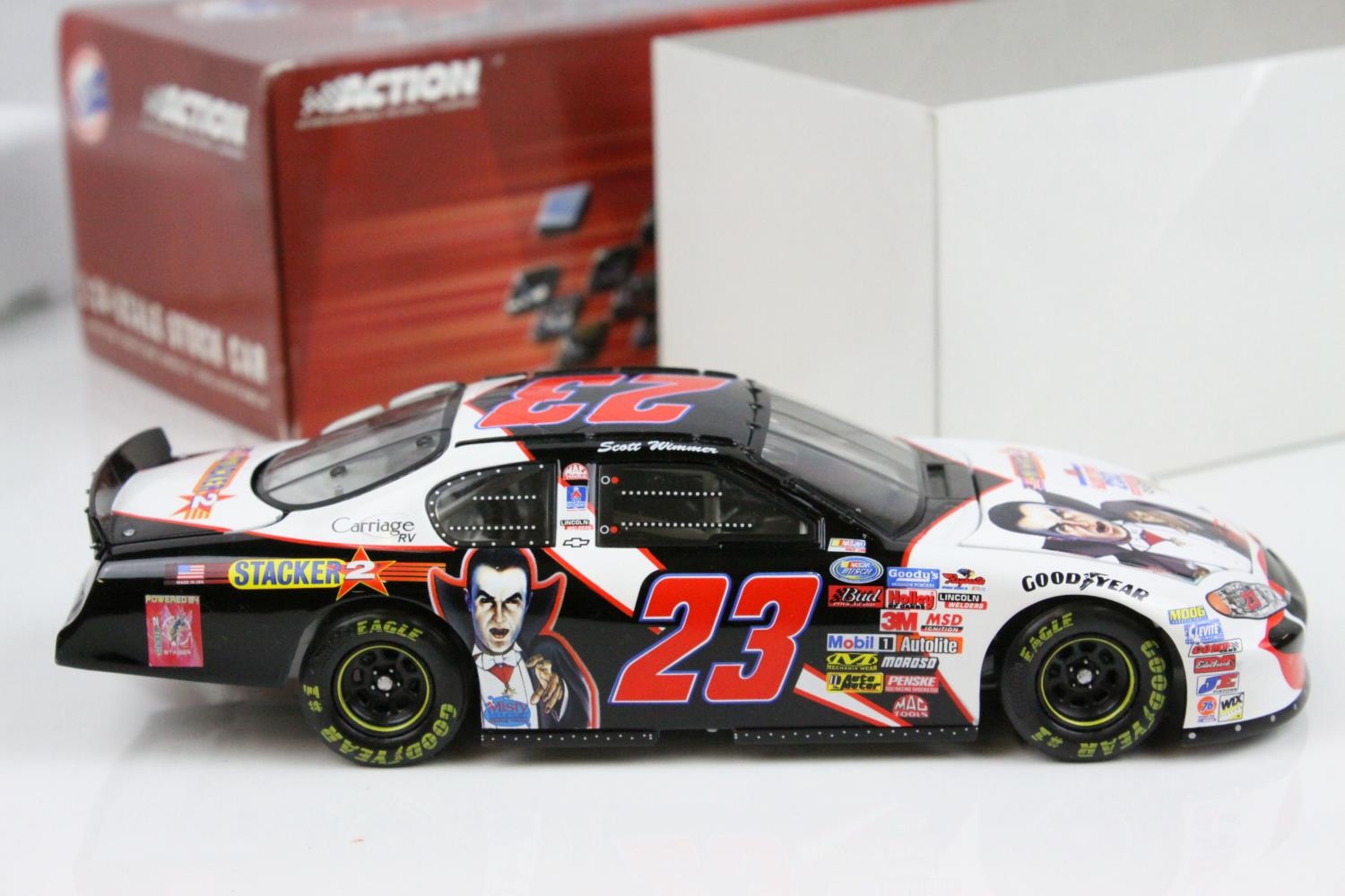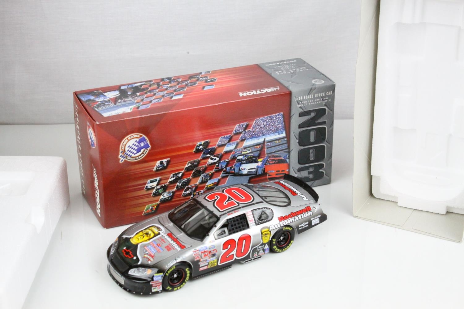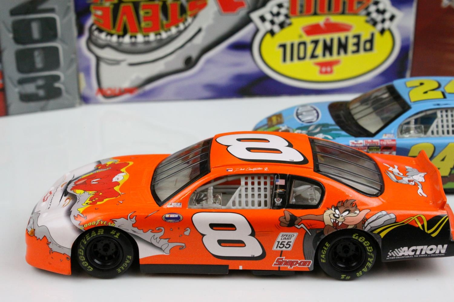 Seven boxed 1:24 Action Racing Collectables to include Snap On Pennzoil 400 Steve Park, Jerry Mayfield 19 Dodge, Jimmy Spencer 41 Energizer, Ernie Irvan 36 Pedigree, and 3 x 2003 Stock Car models plus 2 unboxed Warner Bros Action models (9)