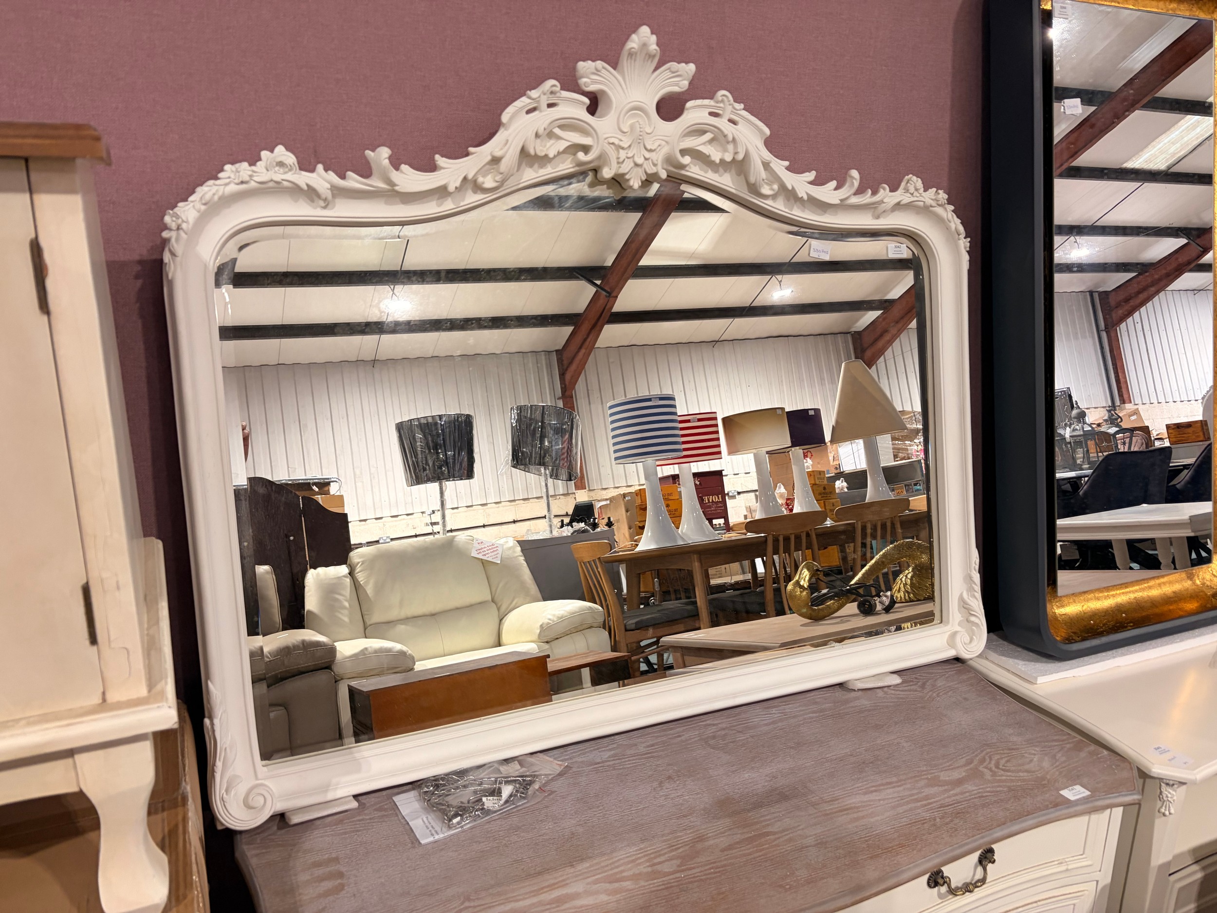 A white Laura Ashley Patricia overmantel mirror