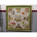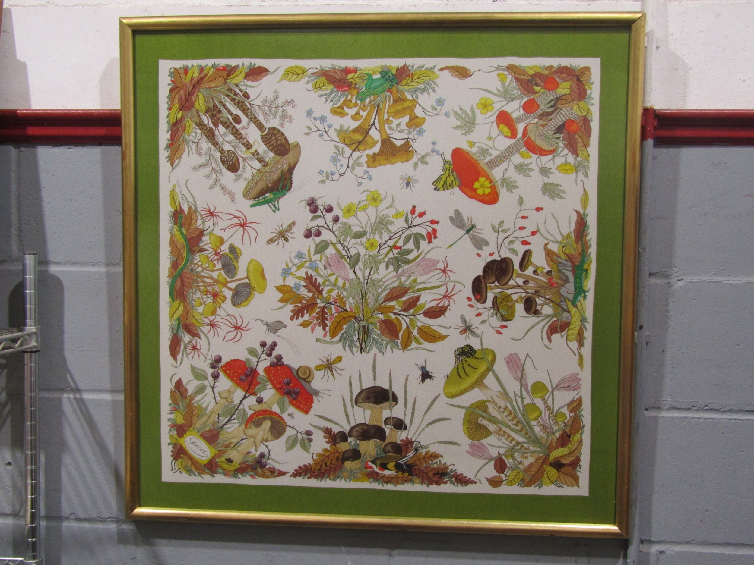 A framed and glazed Gucci Scarf with V. Accornero Botanical design from 1966, overall size 87cm x 86cm