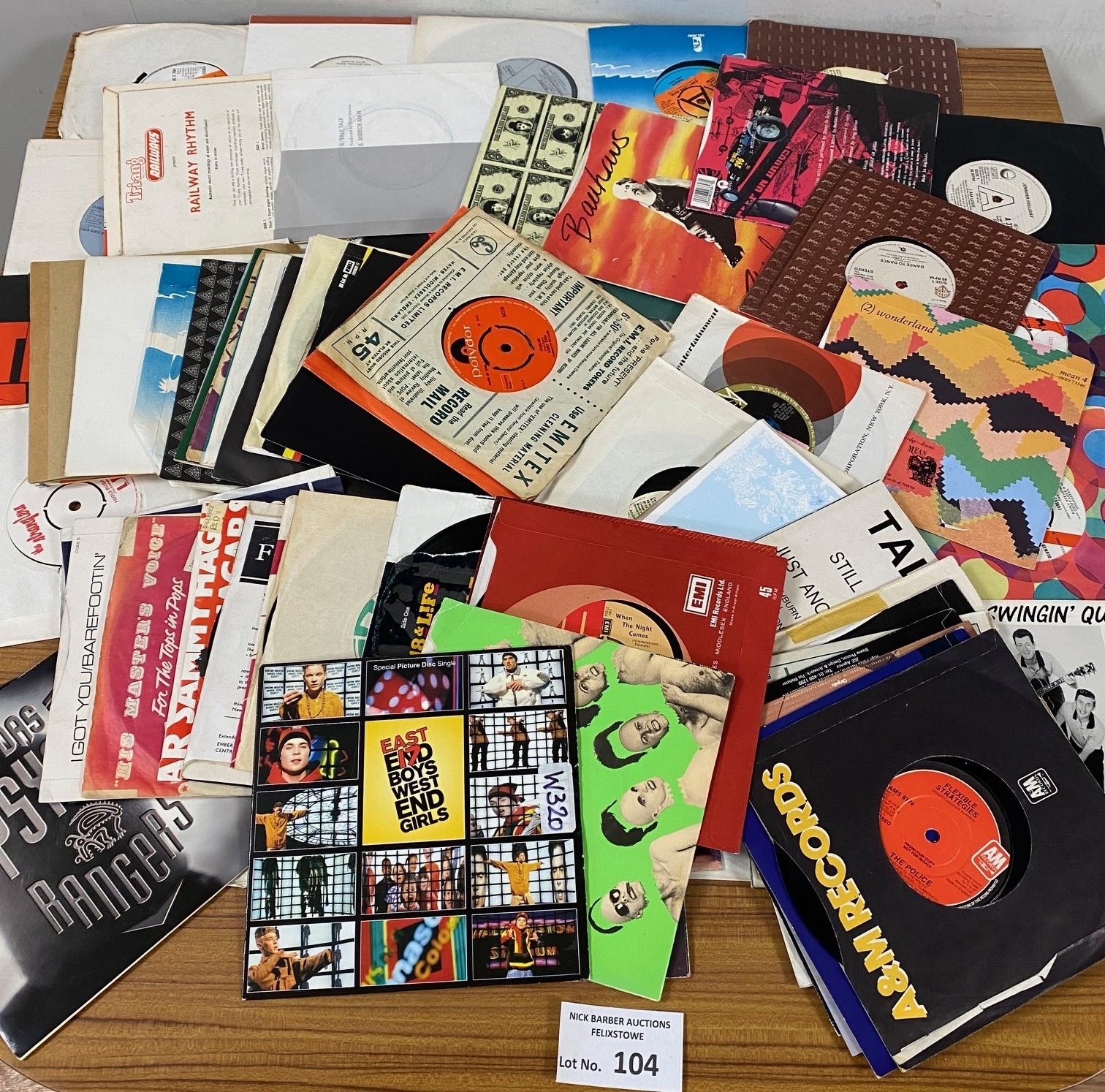 Records : Box of decent 7" singles, 1960's to modern, does incl several 'demos', incl Police, Tears for Fears, Bauhaus, great lot 80+.