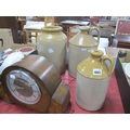 Two Stoneware Flagons and Jar, 29cm high; Smiths mantel clock. (4)