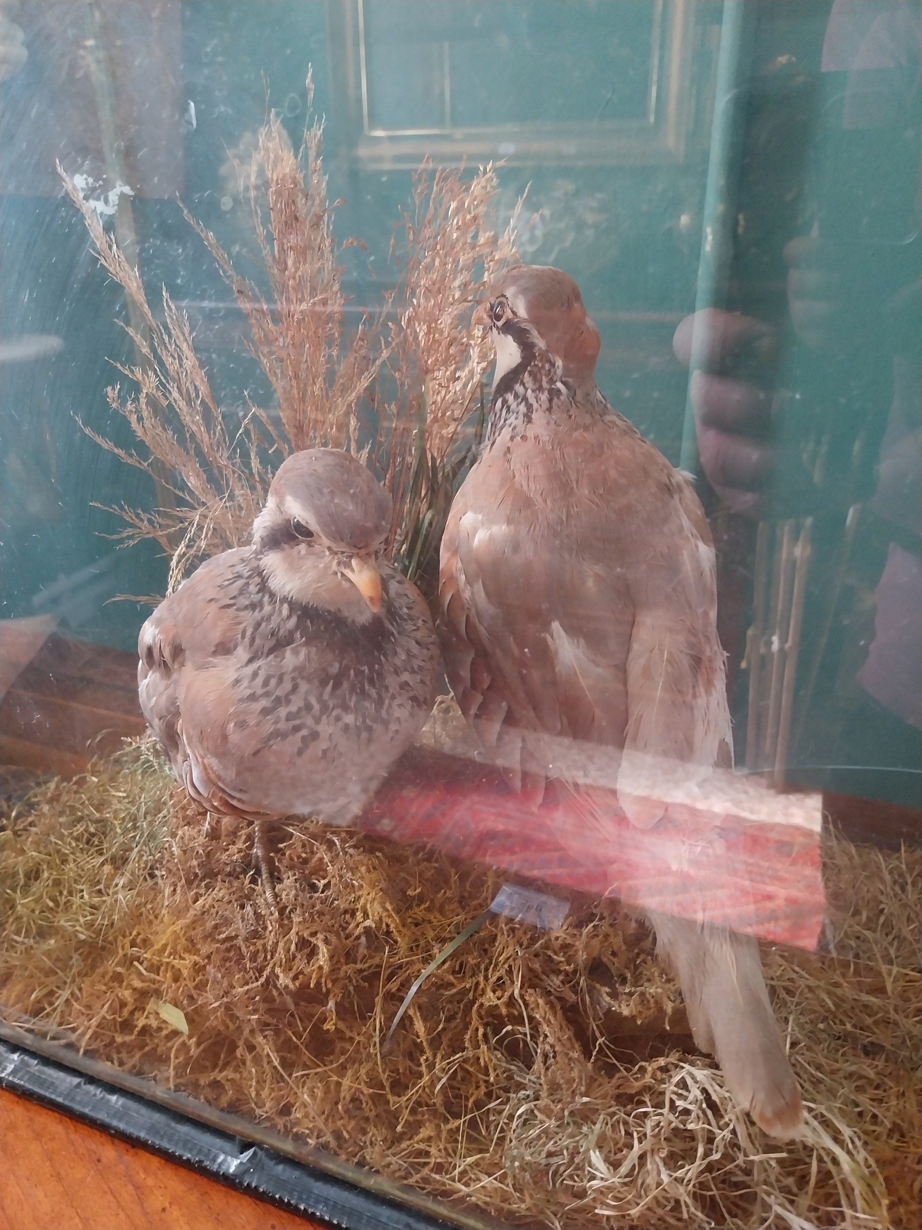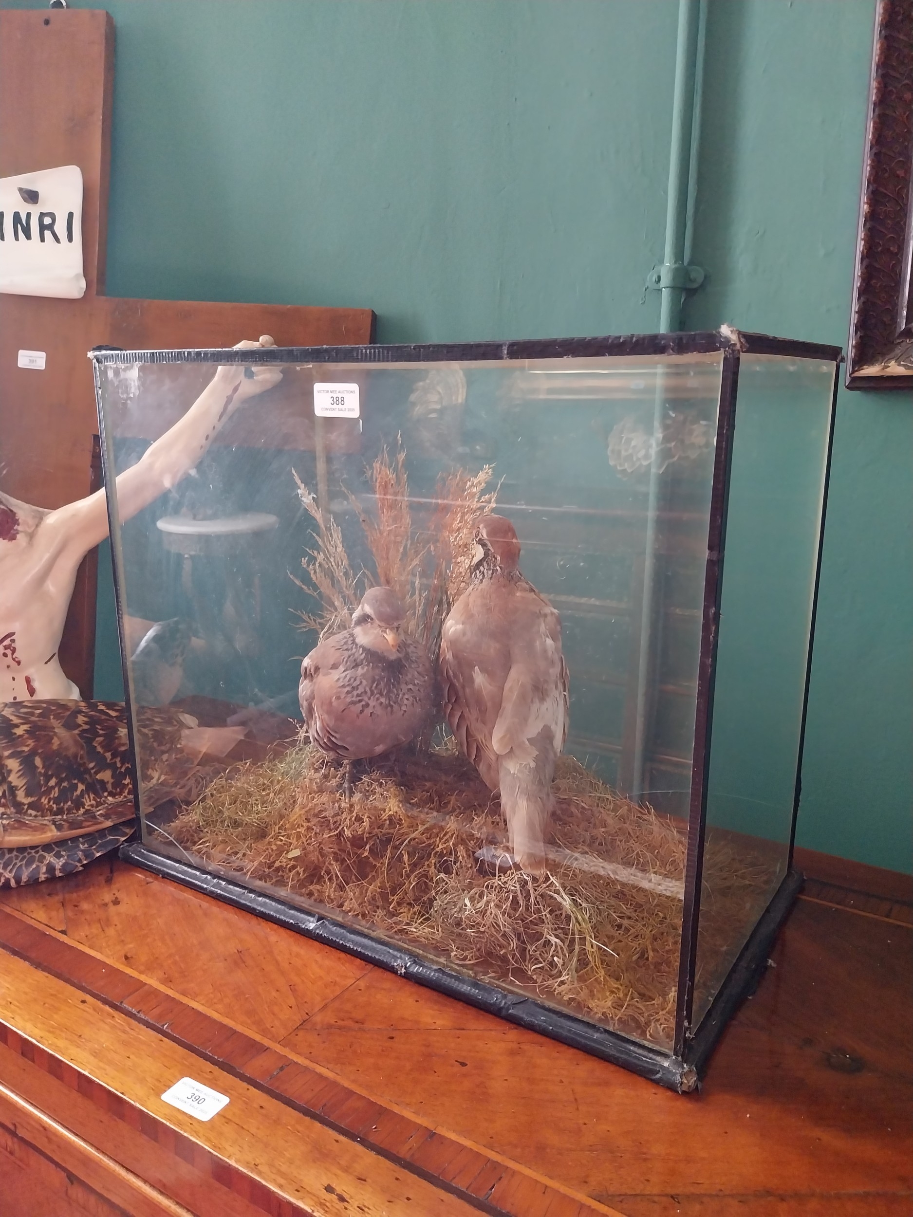Pair of early 20th. C. taxidermy Birds, mounted in a glazed case. { 44cm H X 51cm W X 29cm D }.