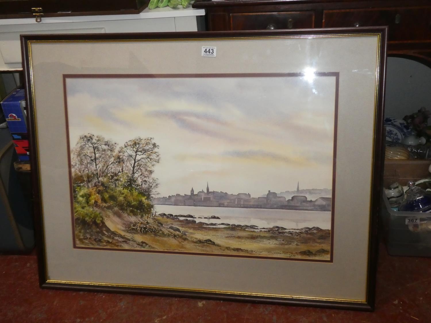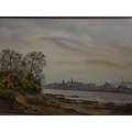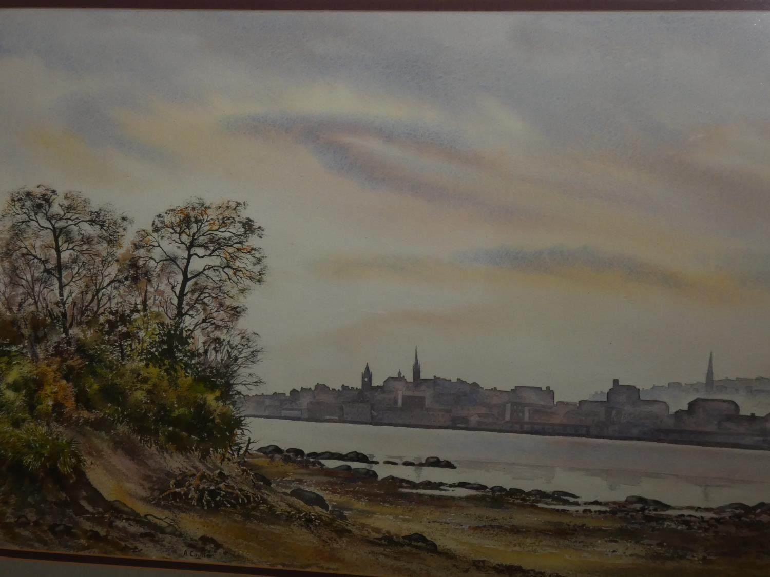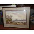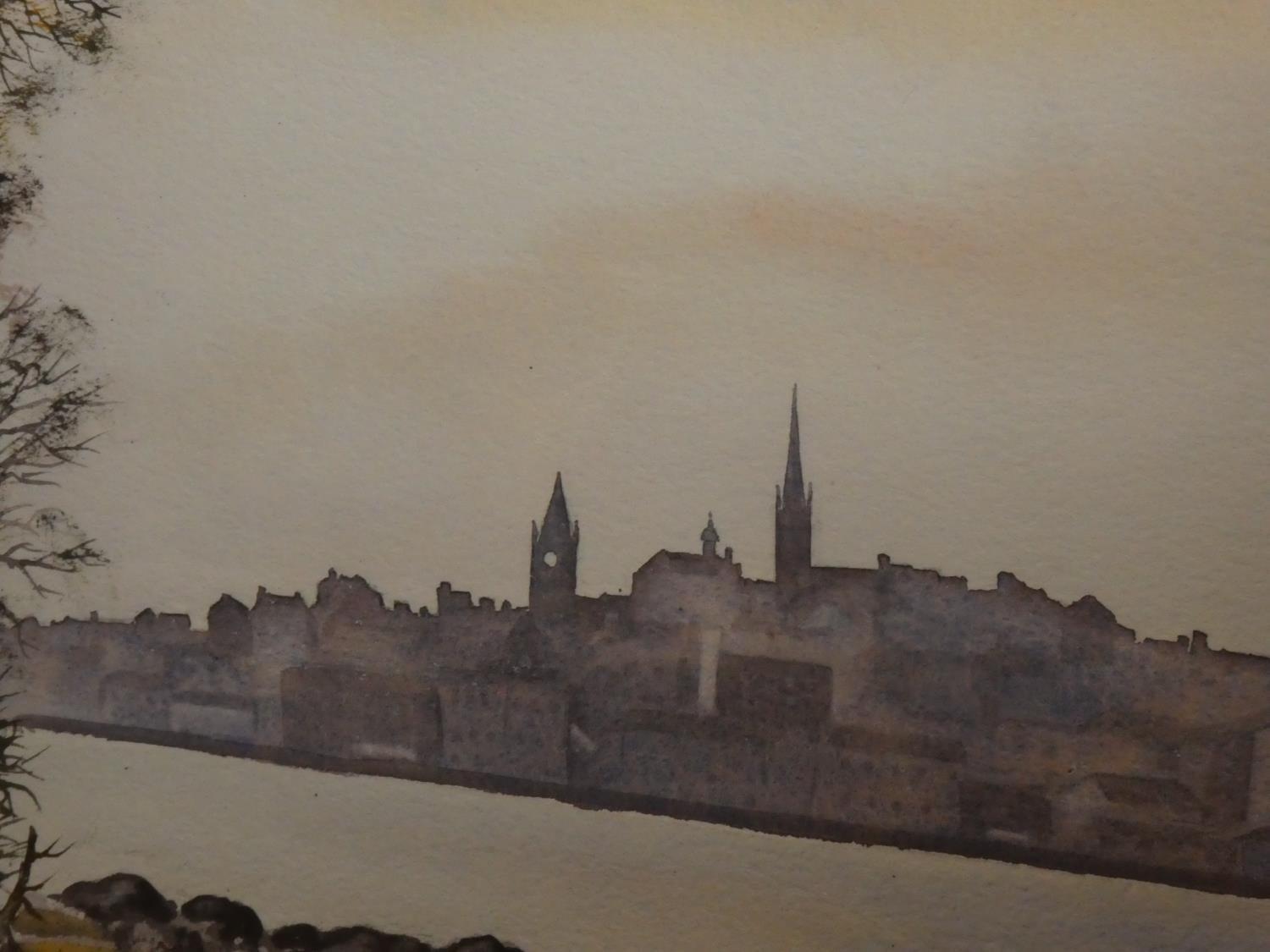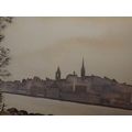A large stunning framed watercolour 'City Skyline' by Irish artist Ashley Coulter, painting measures 30" x 20"