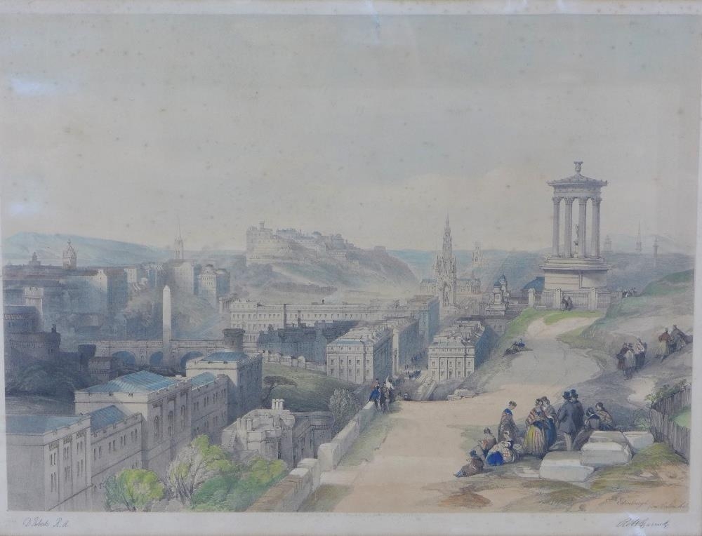 Edinburgh From Calton Hill, a coloured print after David Rob...
