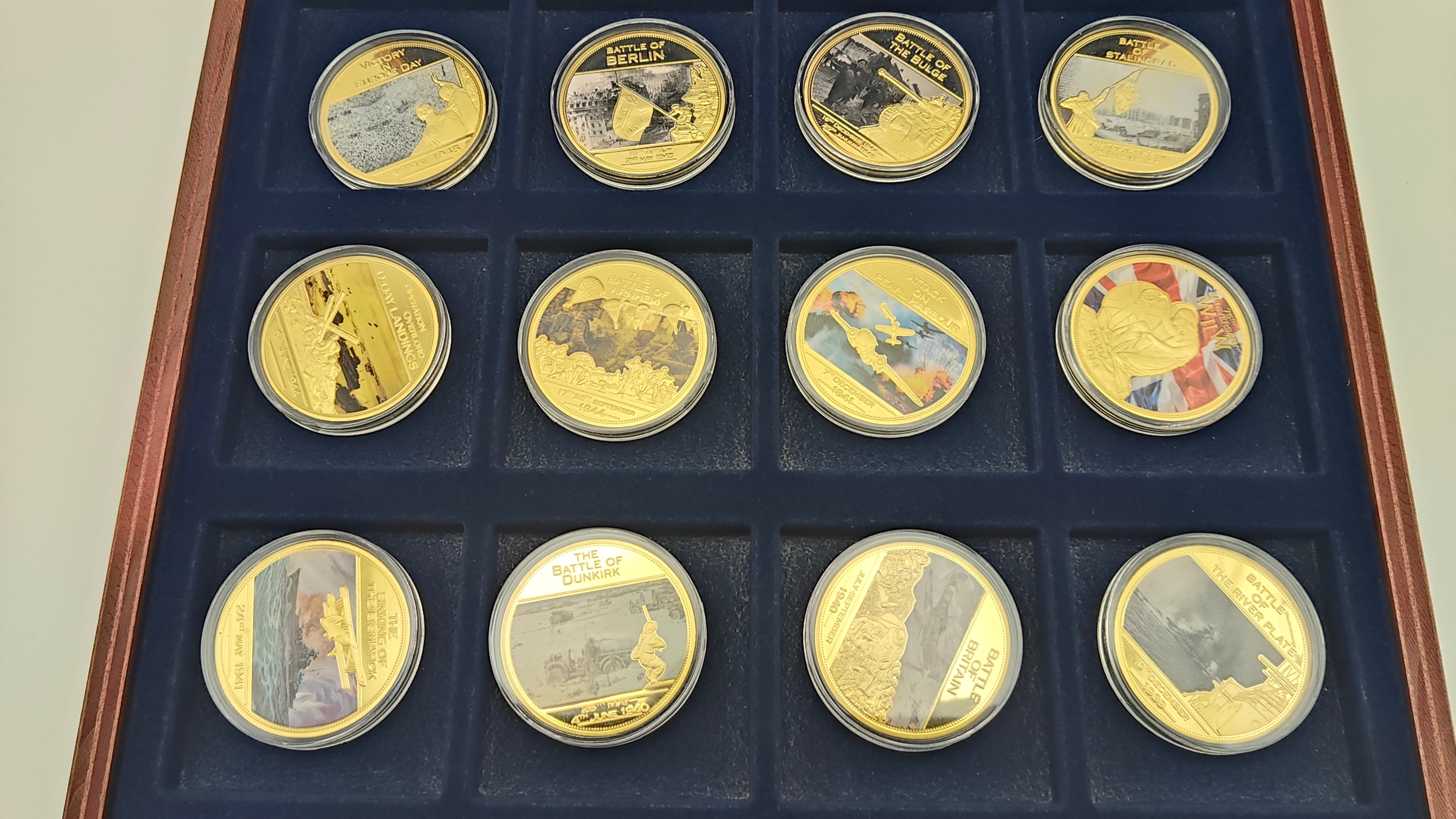 Windsor mint coin collection commemorating famous battles in wooden presentation box