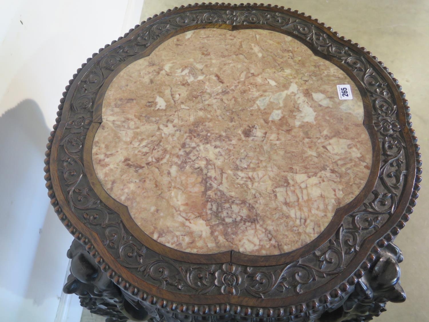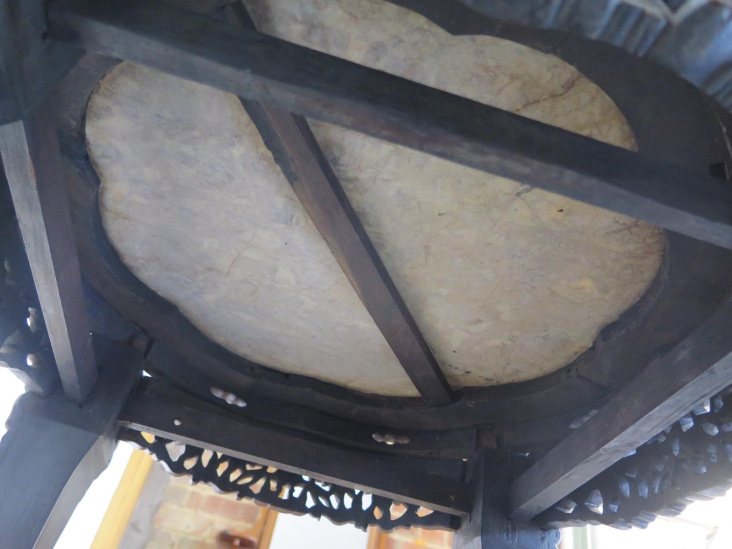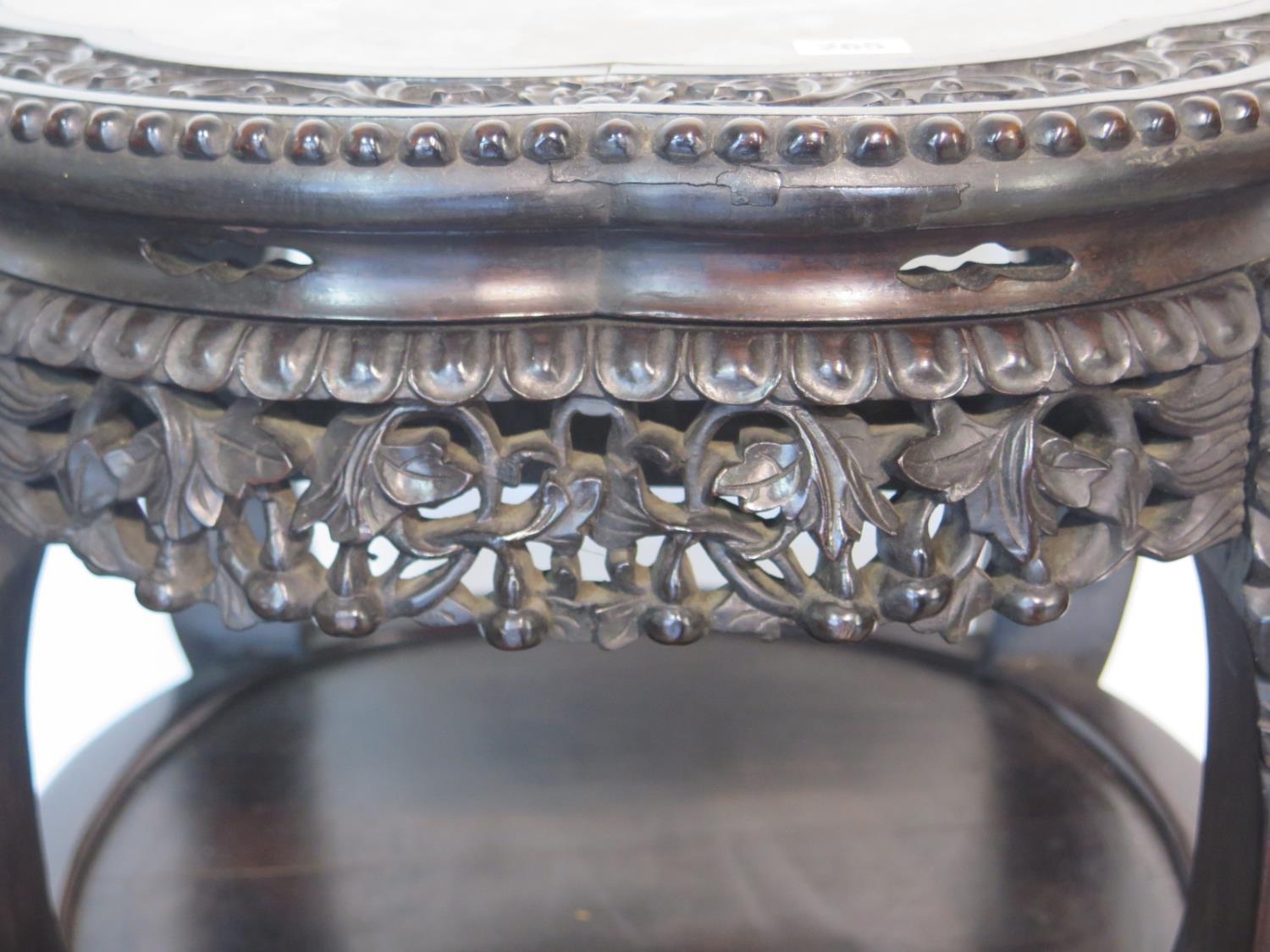 A tall Oriental carved hardwood marble top jardiniere stand with under tier, with good colour and in good condition H81cm x W70cm