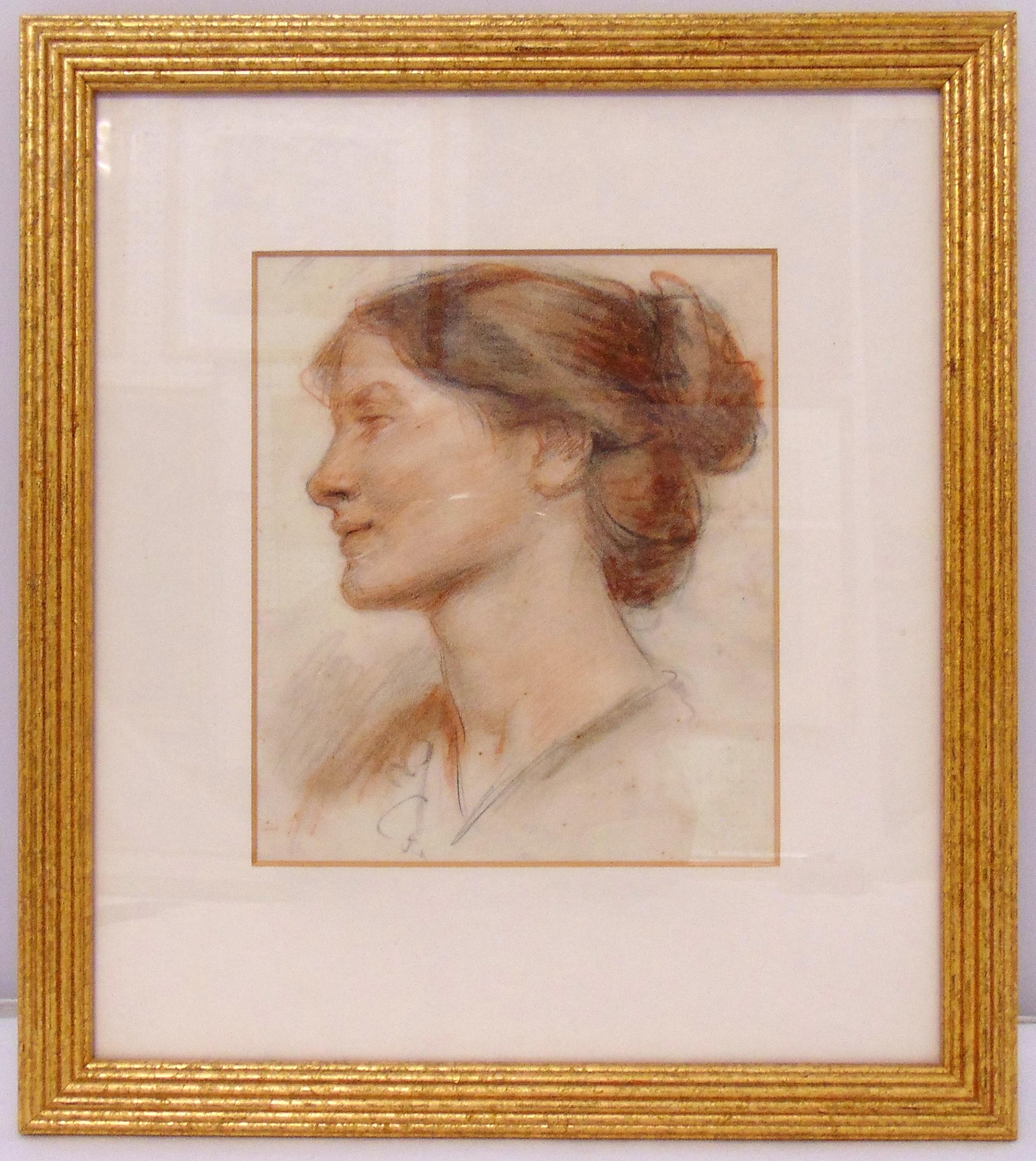 Richard C Weatherby framed and glazed pastel portrait circa 1920, details to verso, 21.5 x 18cm