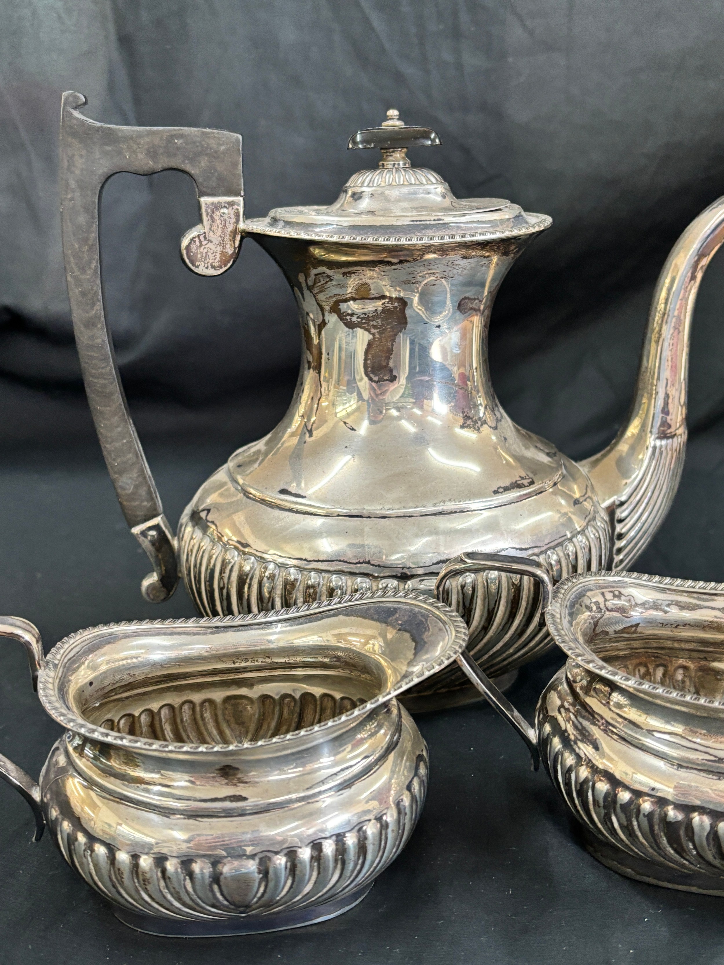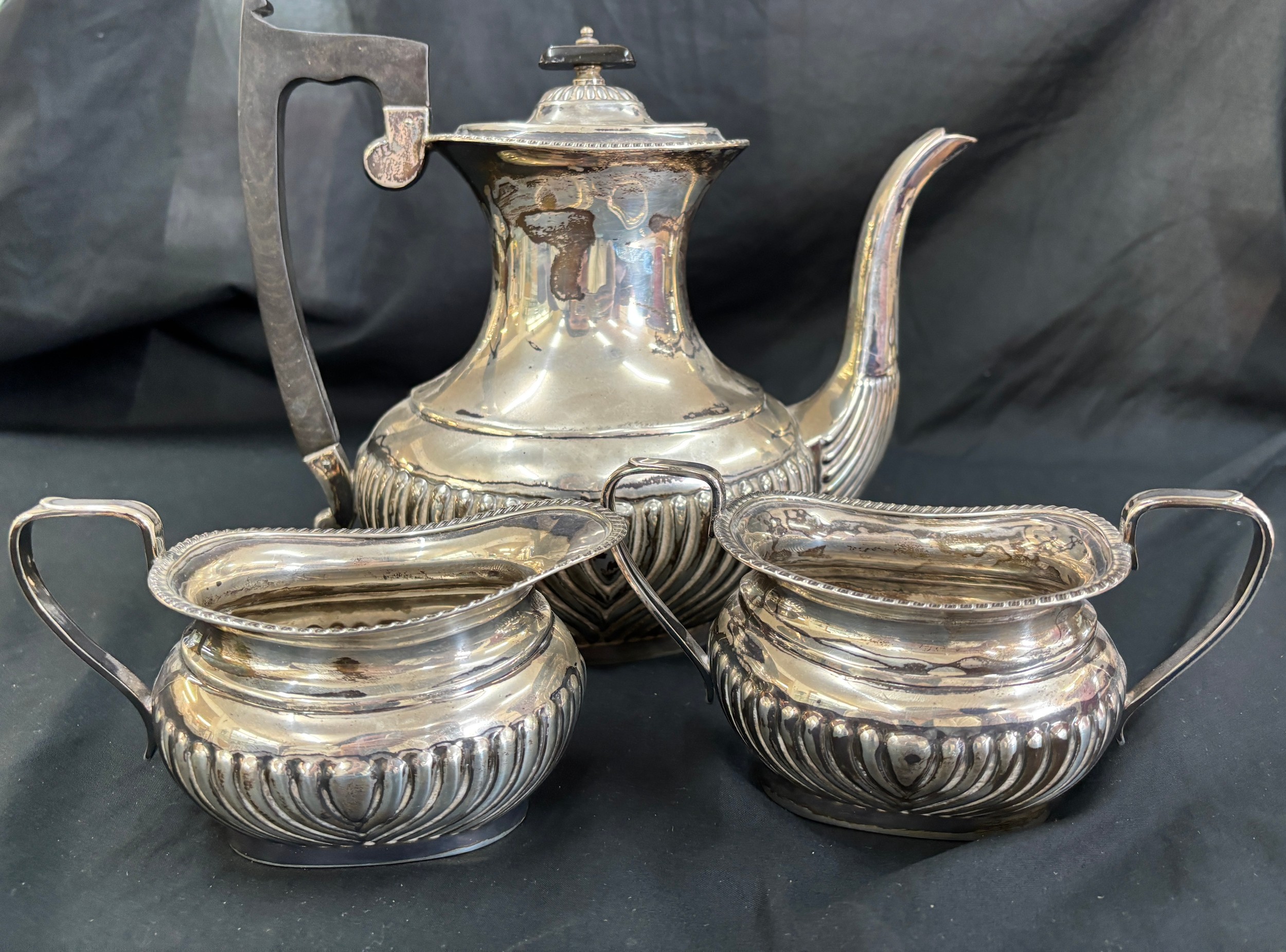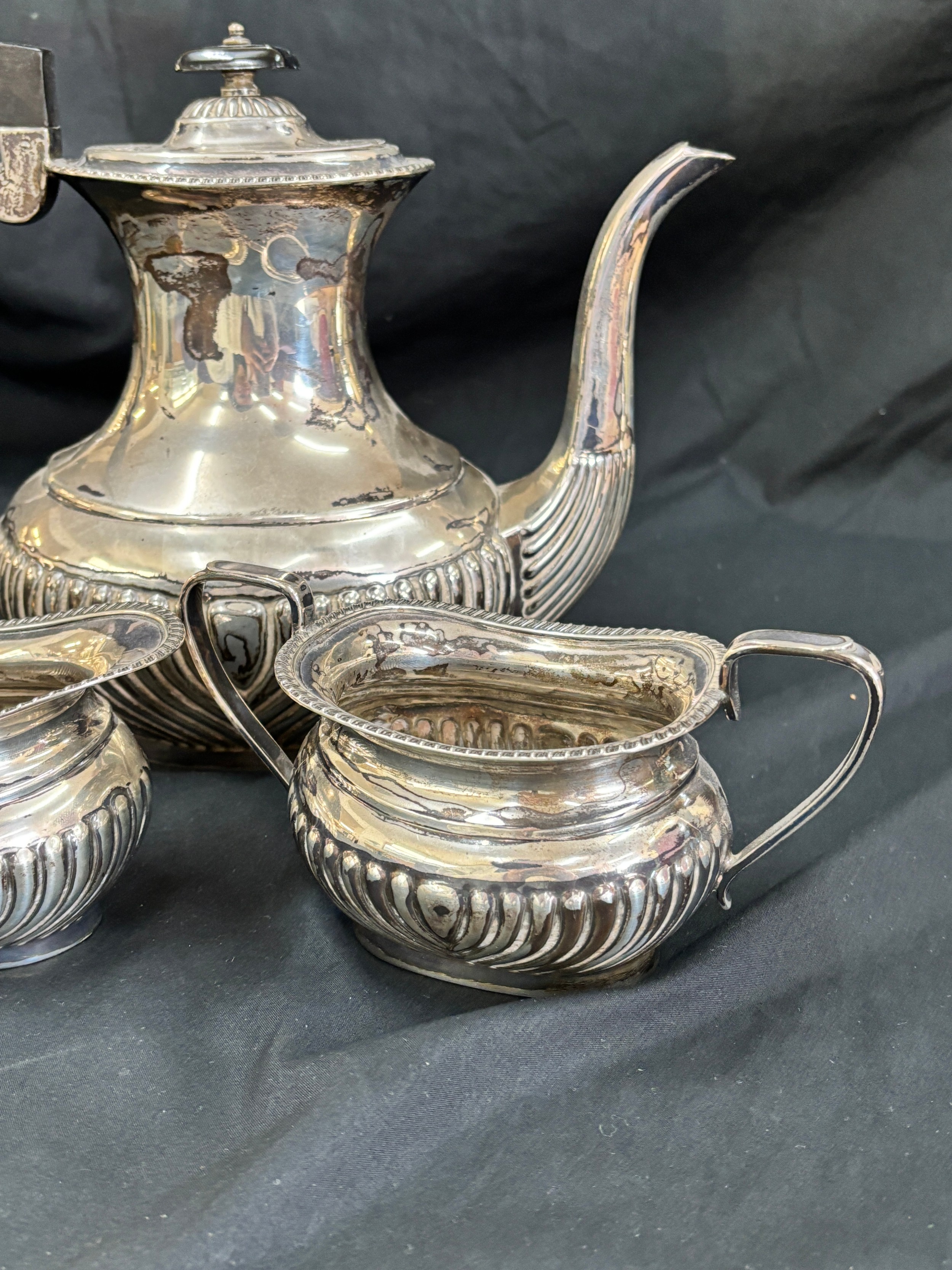 Sterling silver three piece Viners Ltd -Edward Viner tea service, E.V, Sheffield silver, total weight 1234 grams