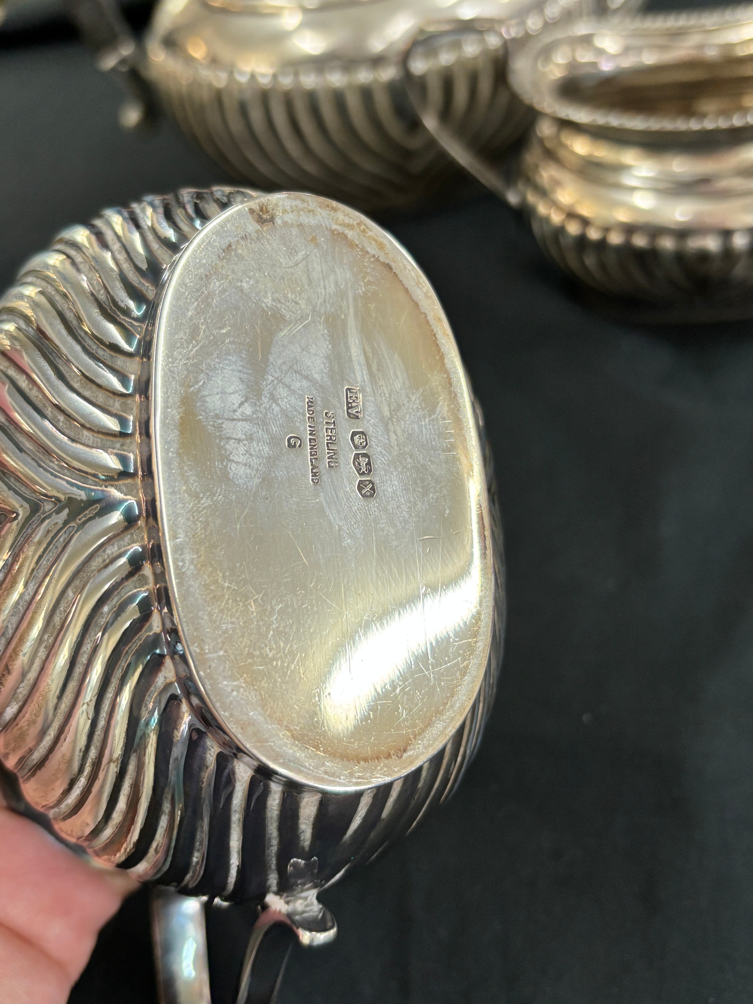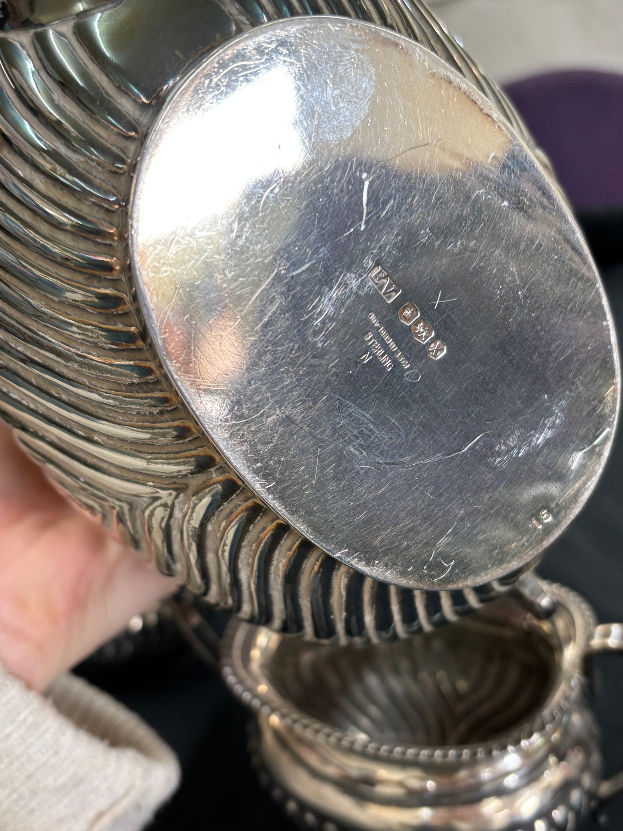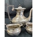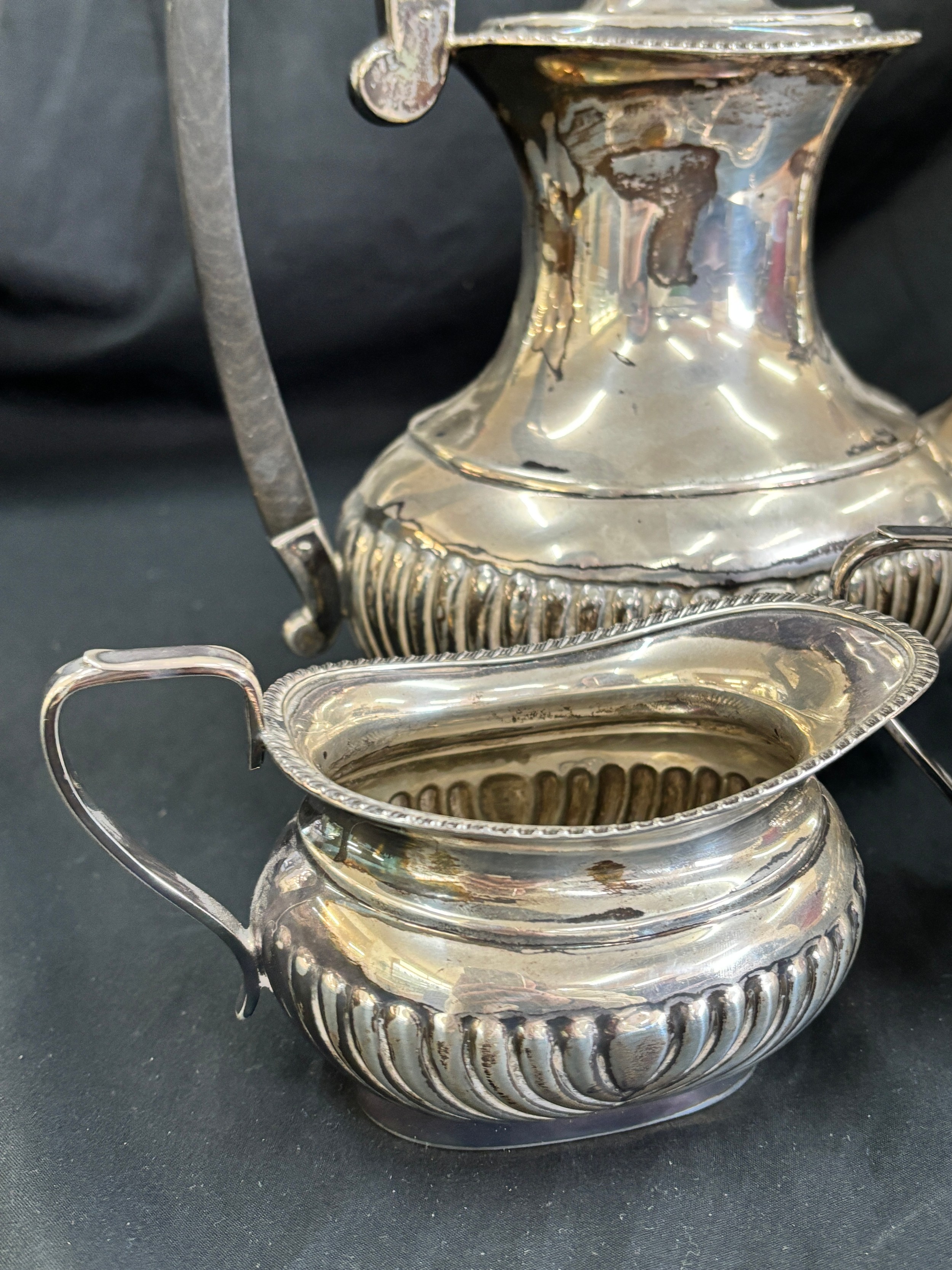 Sterling silver three piece Viners Ltd -Edward Viner tea service, E.V, Sheffield silver, total weight 1234 grams
