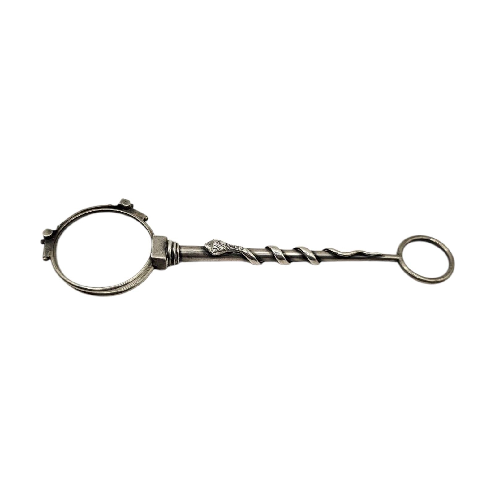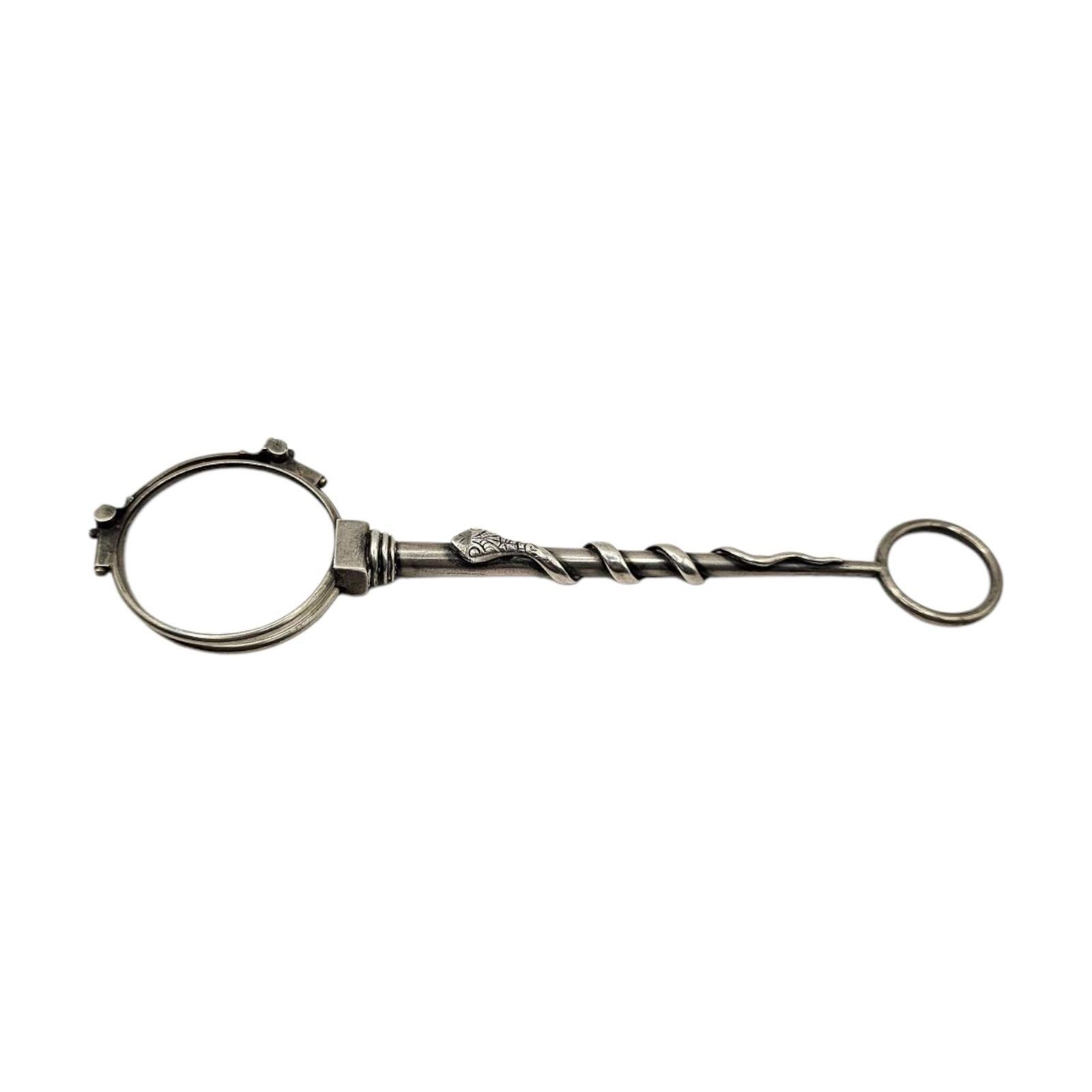 Having spring loaded glasses with entwined serpent to handle, marked ‘800’.