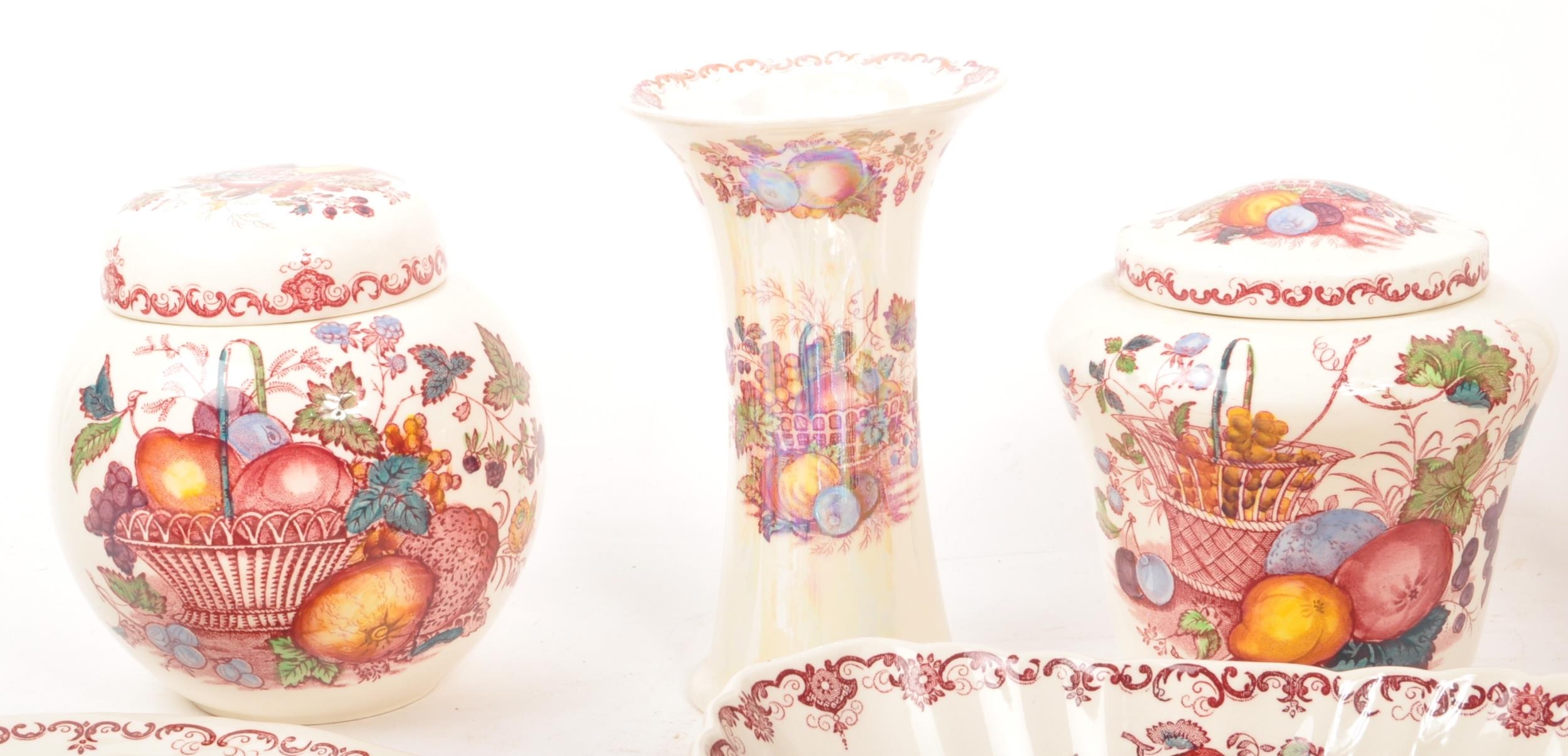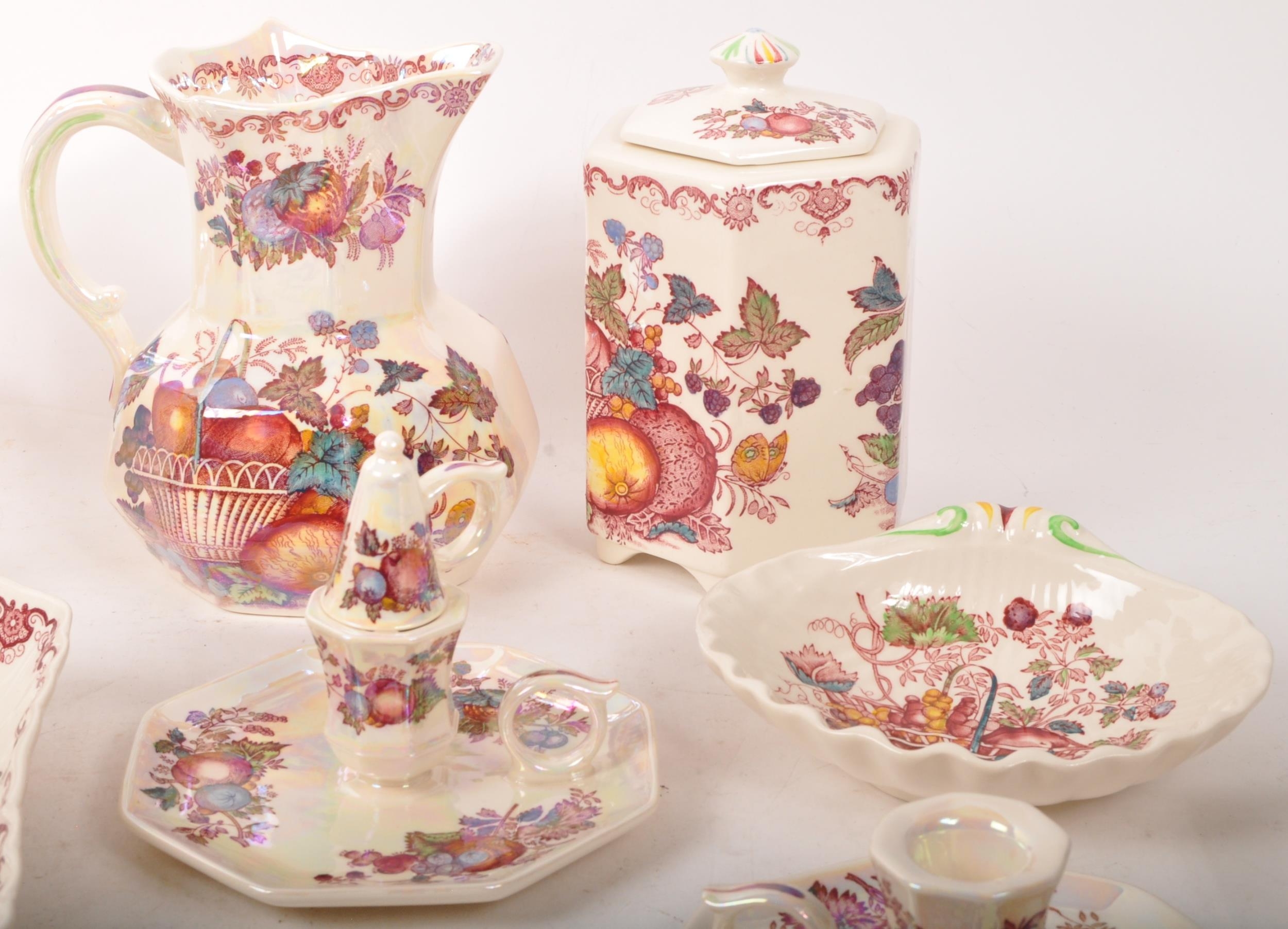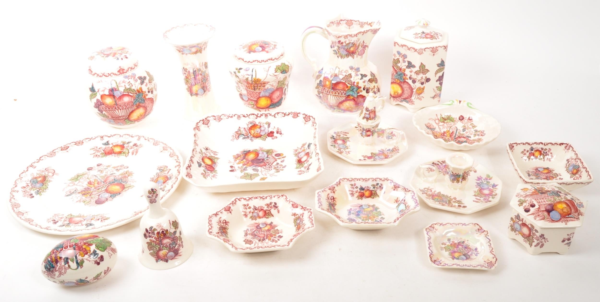 Masons Ironstone - A collection of 20th century Masons Ironstone ceramic decorative pieces. The collection to include candle holders, a bell, an ashtray, bon bon dishes, ginger jars, and a vase, amongst other examples.