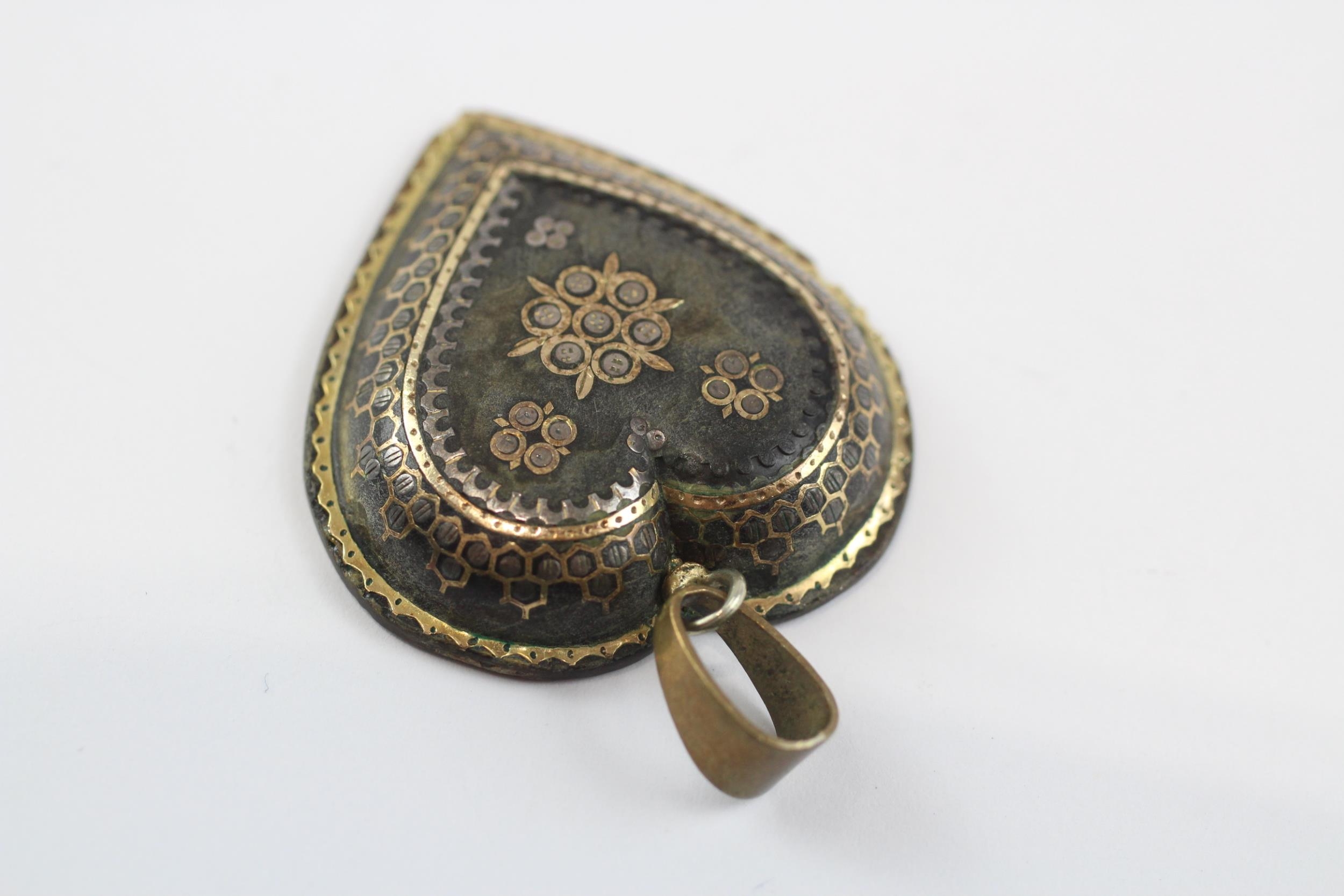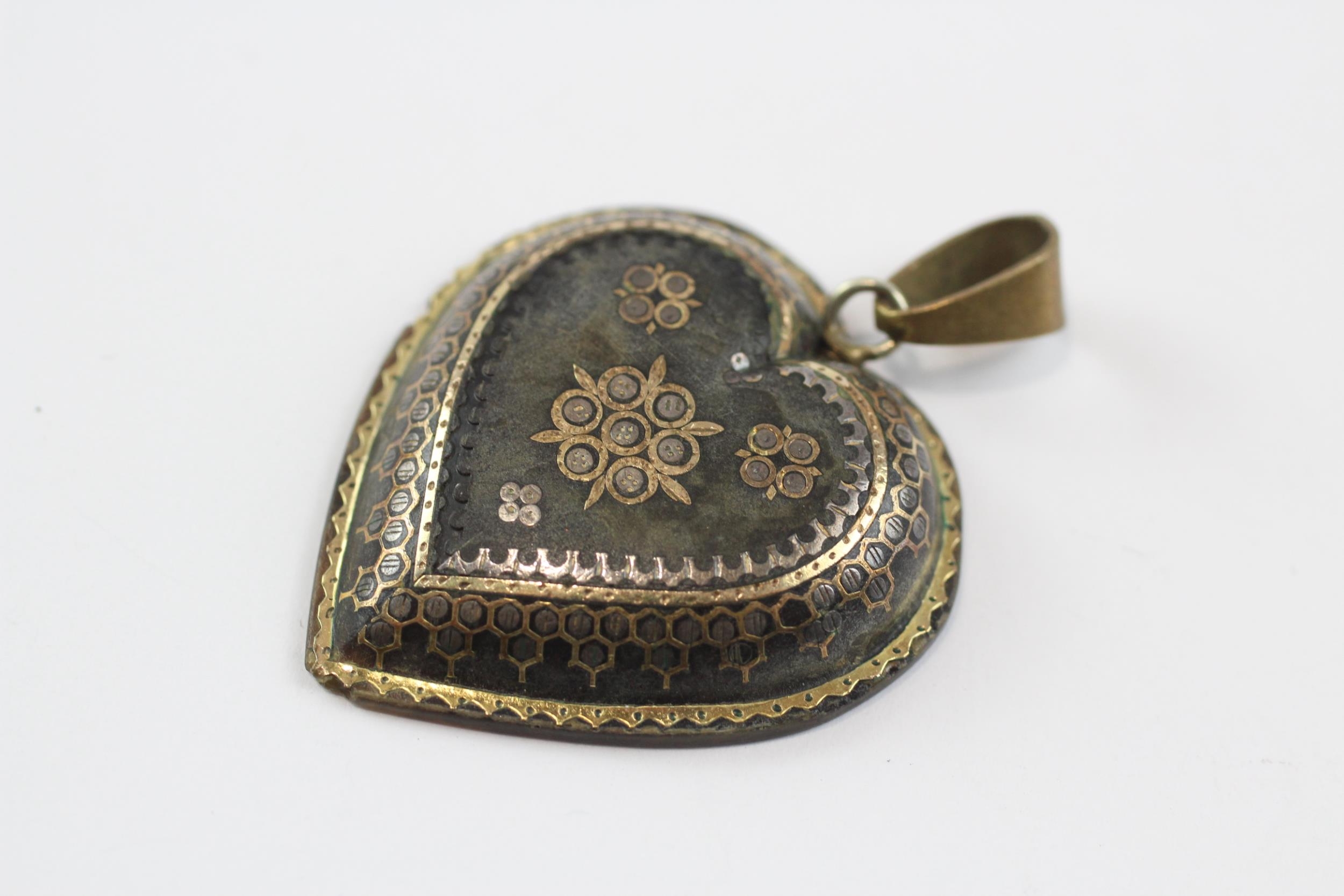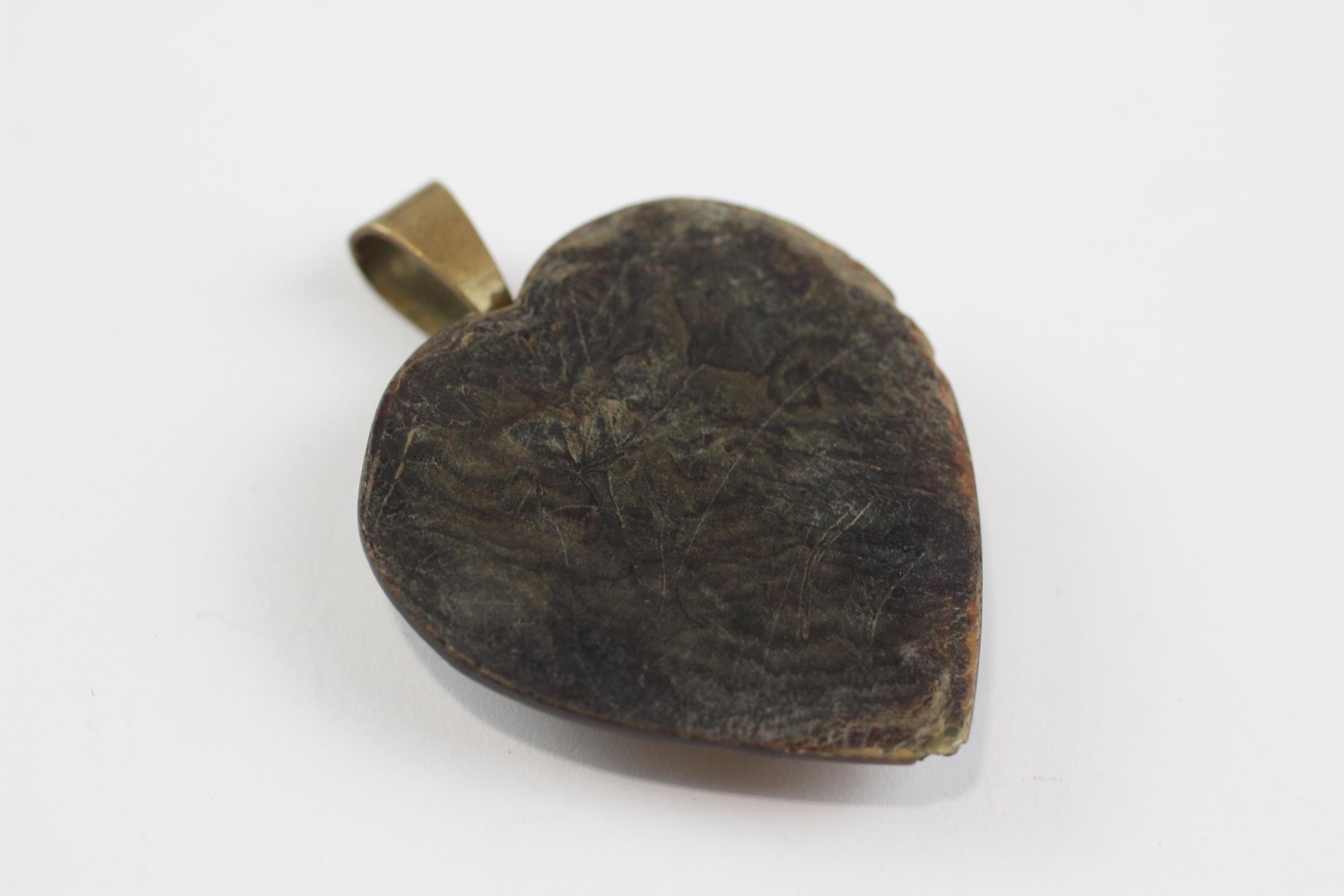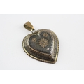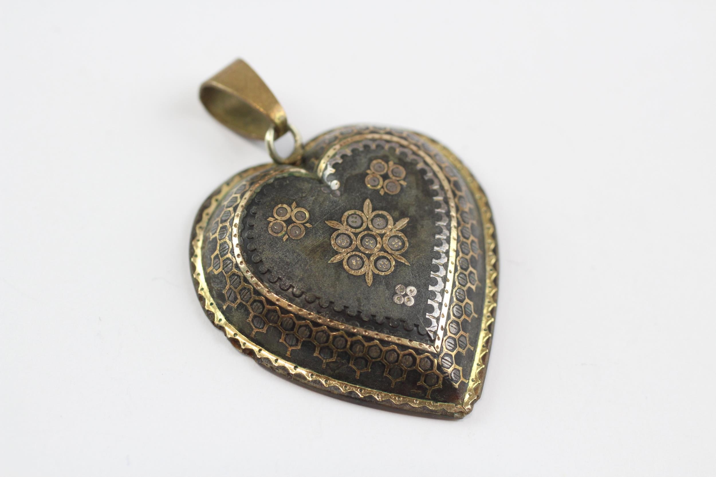 9ct Gold Antique Pique Inlaid Heart Brooch With Base Metal Bail (5.4g)