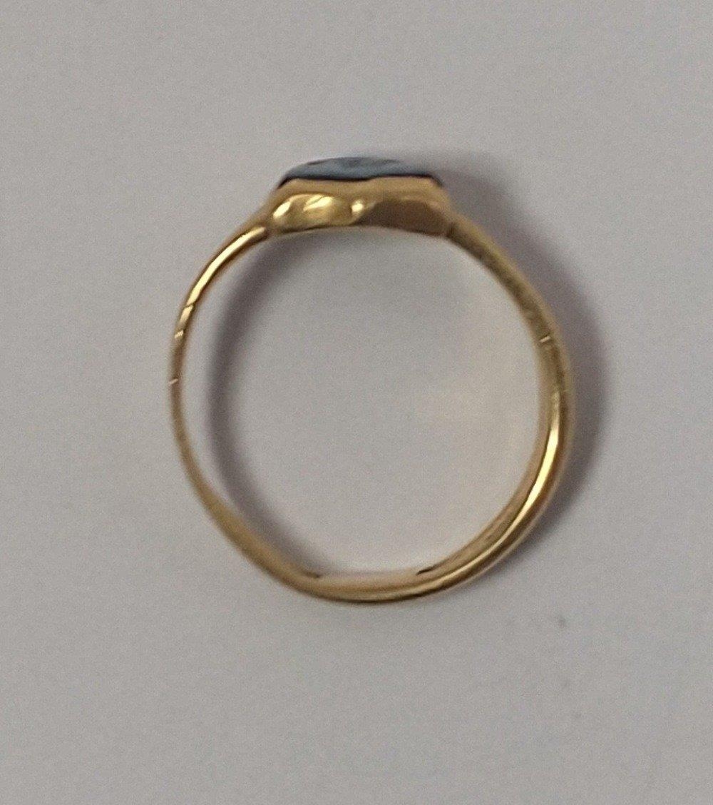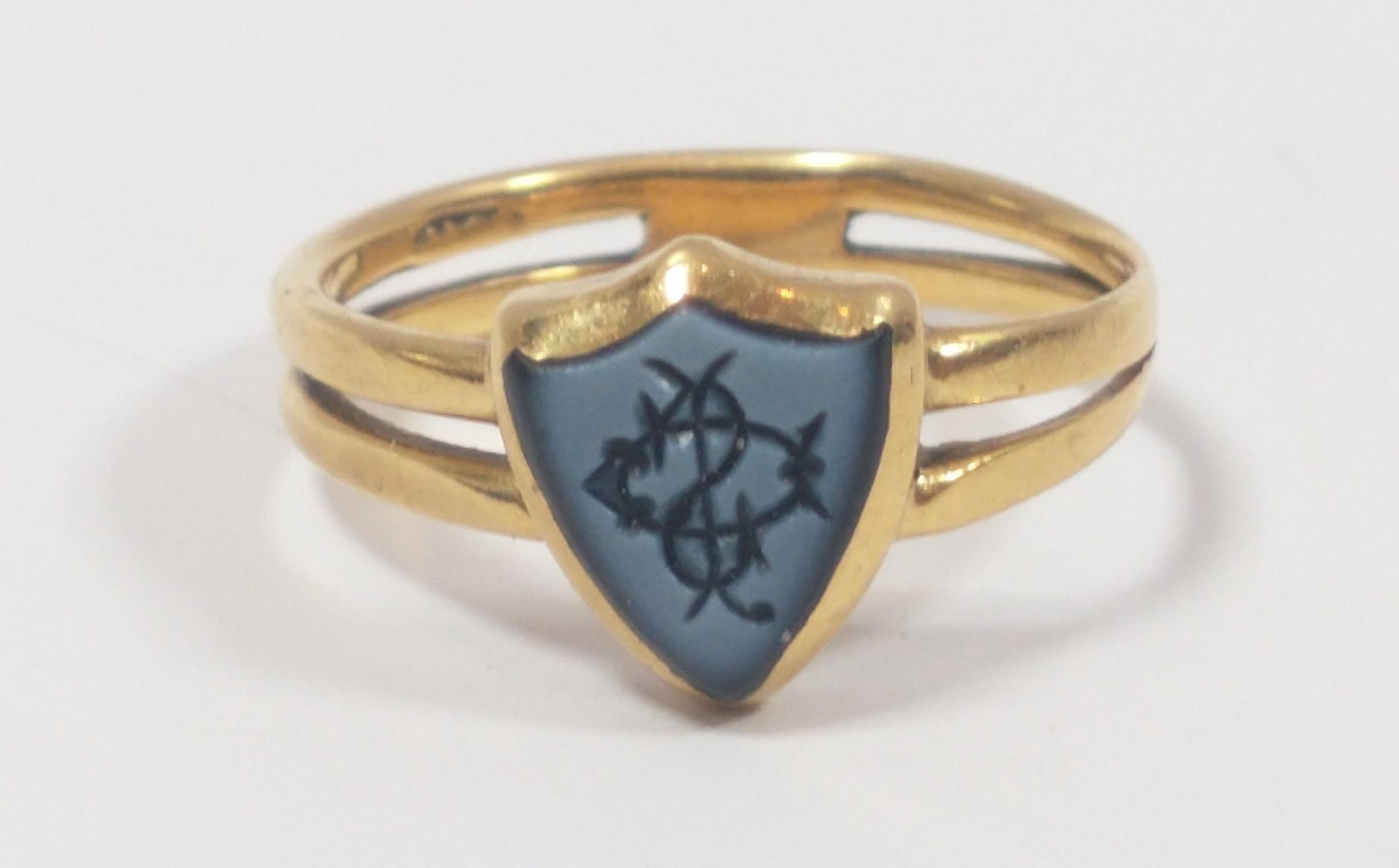 An unmarked yellow metal ring with well-worn marks, size M, with a seal with the letter 'S', gross weight 3.05g approx