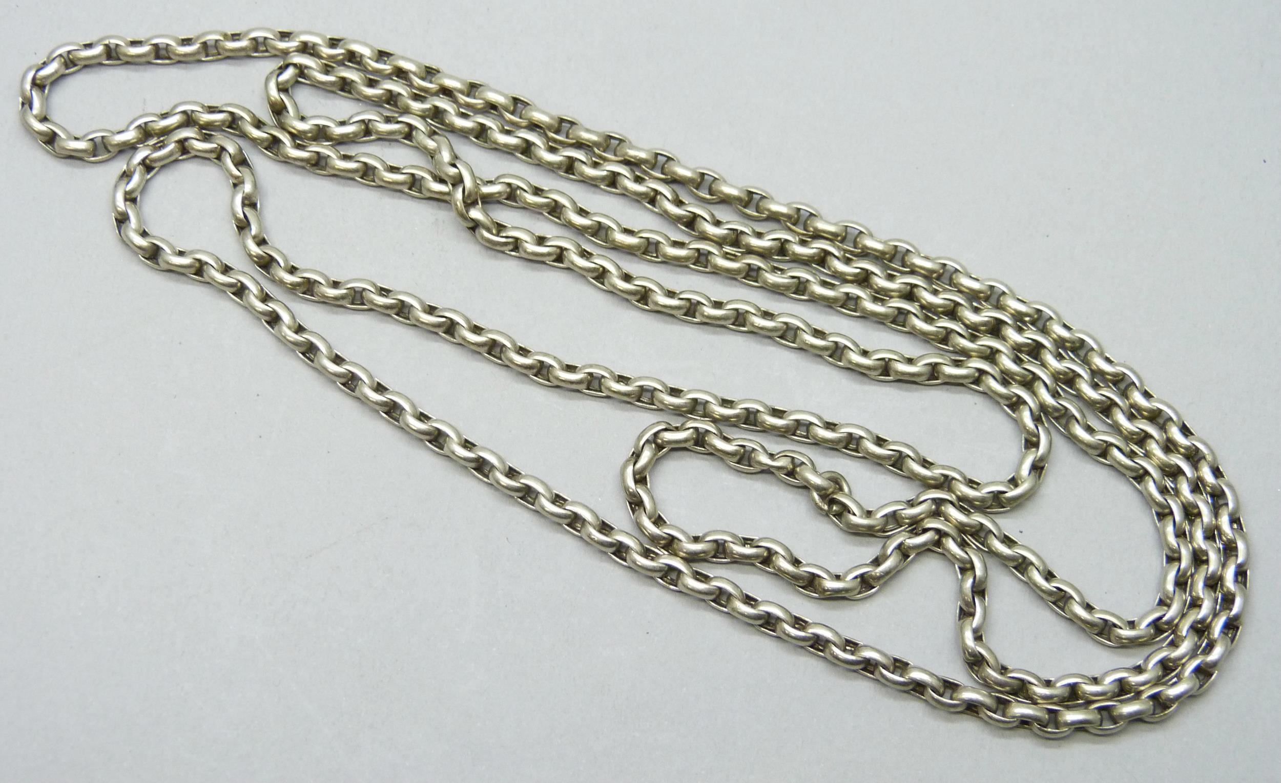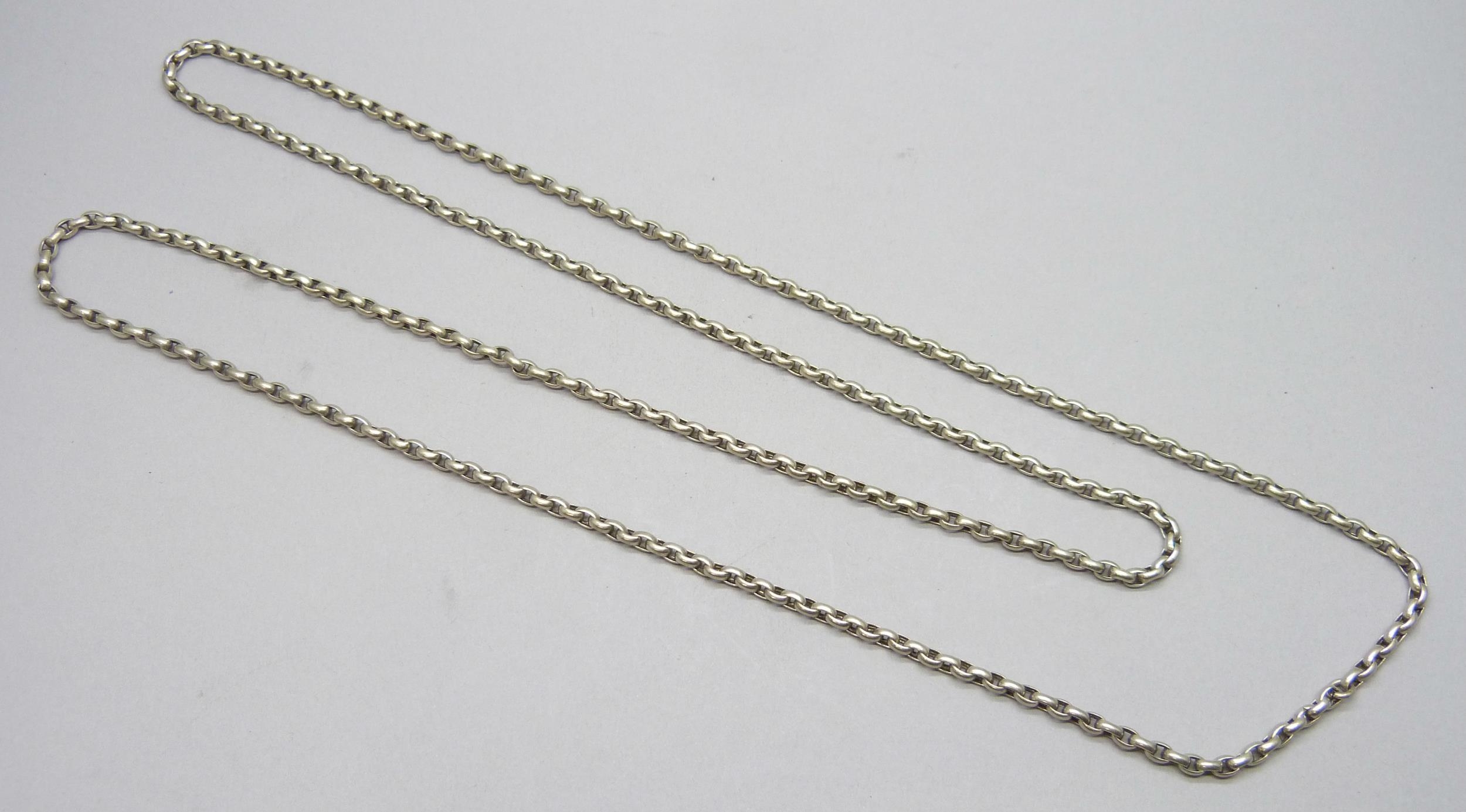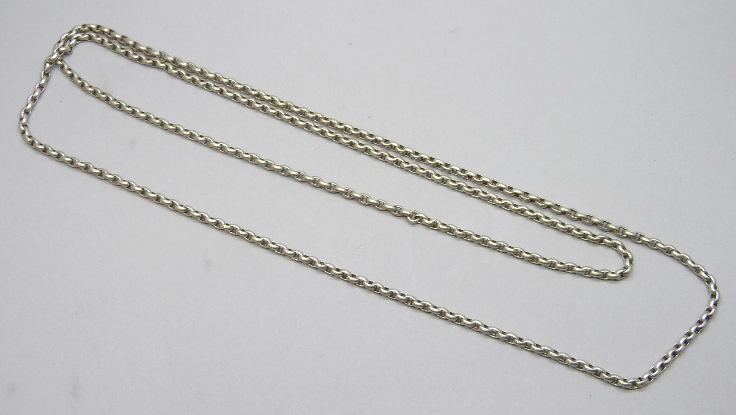A Victorian white metal long guard chain, 43g, approximately 115cm