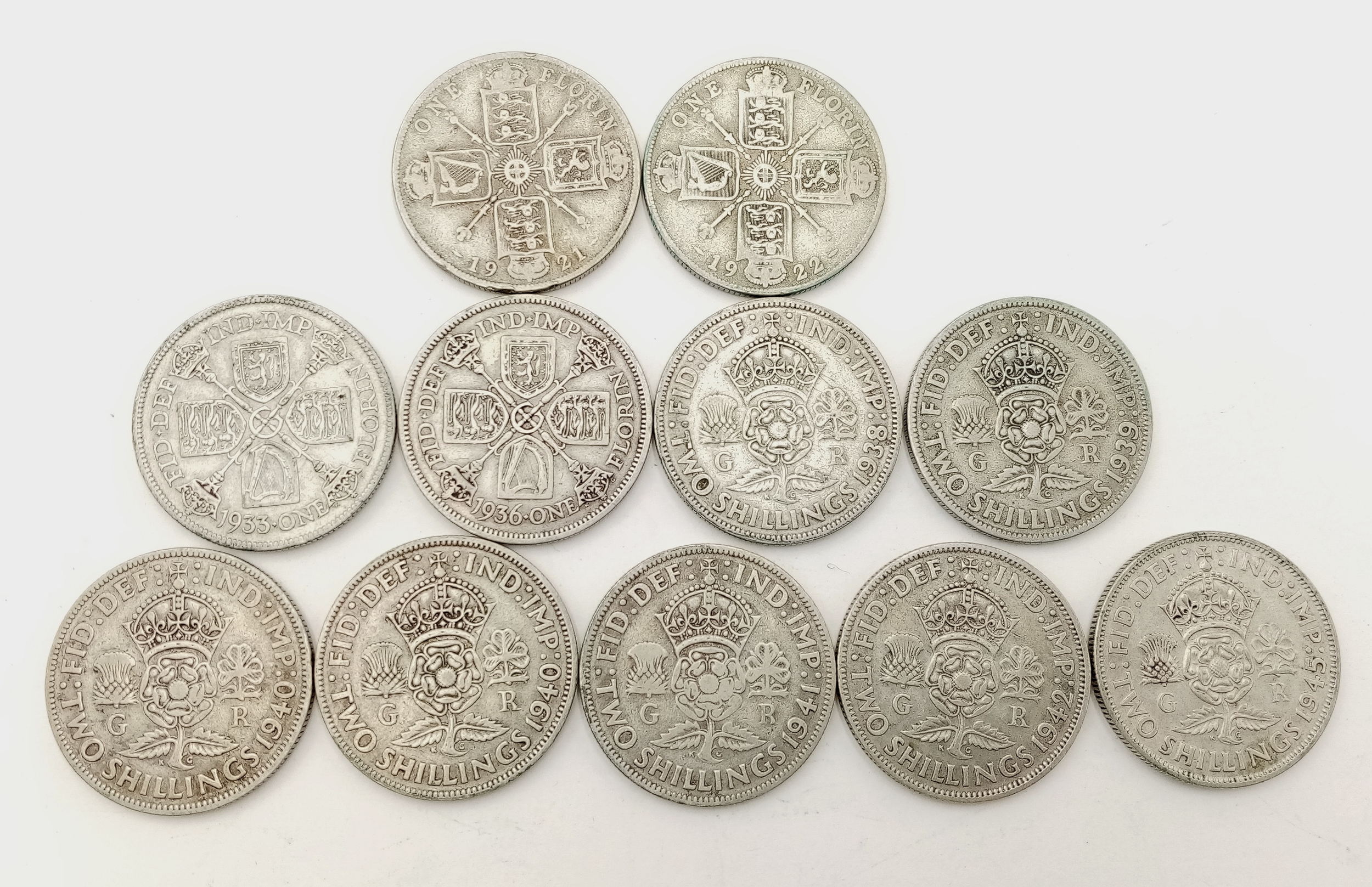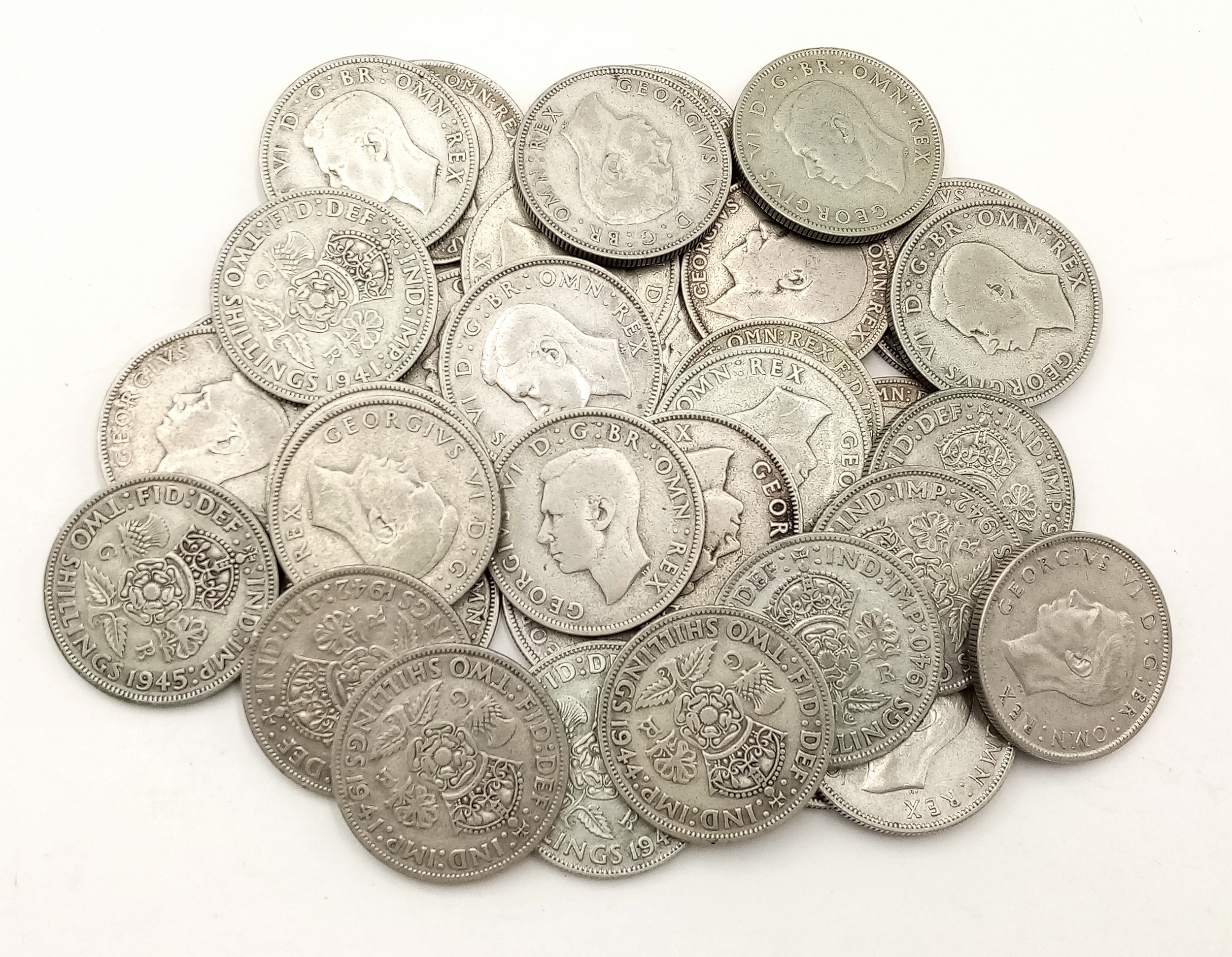 A Collection of 35 Pre 1947 Silver Two Shilling Coins. 390g.