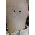 Generally good, fire imperfections across forehead. Damage to side of right knee.