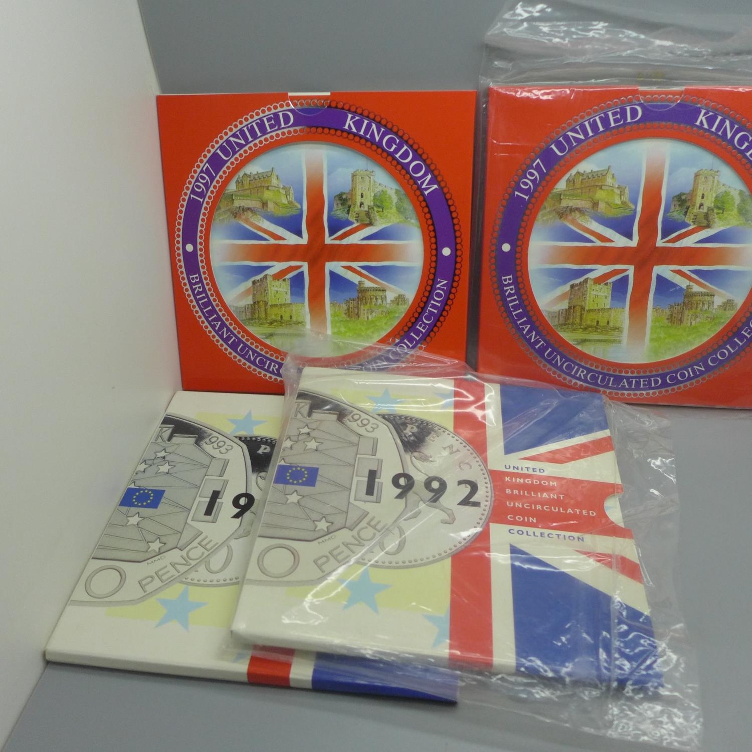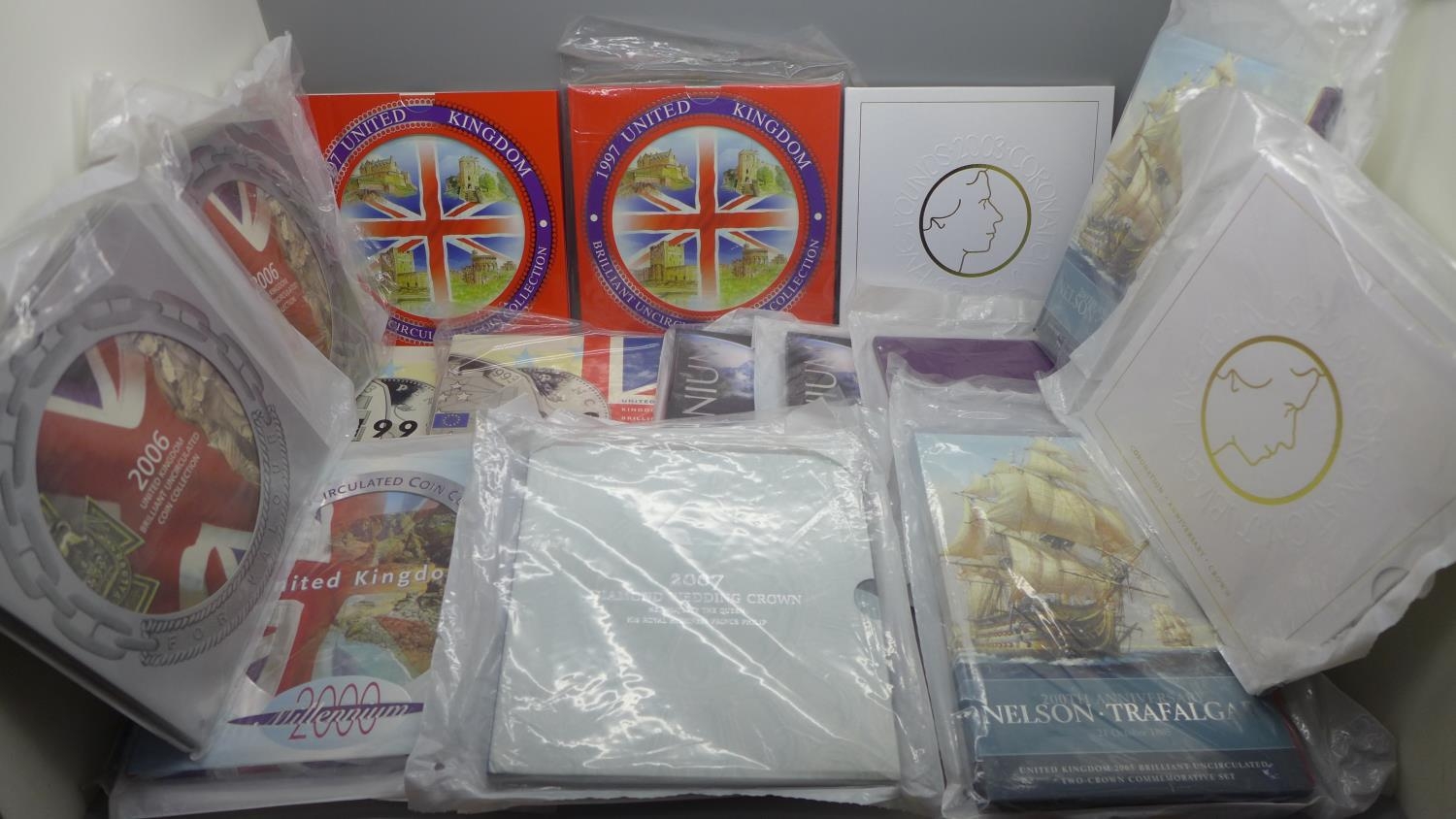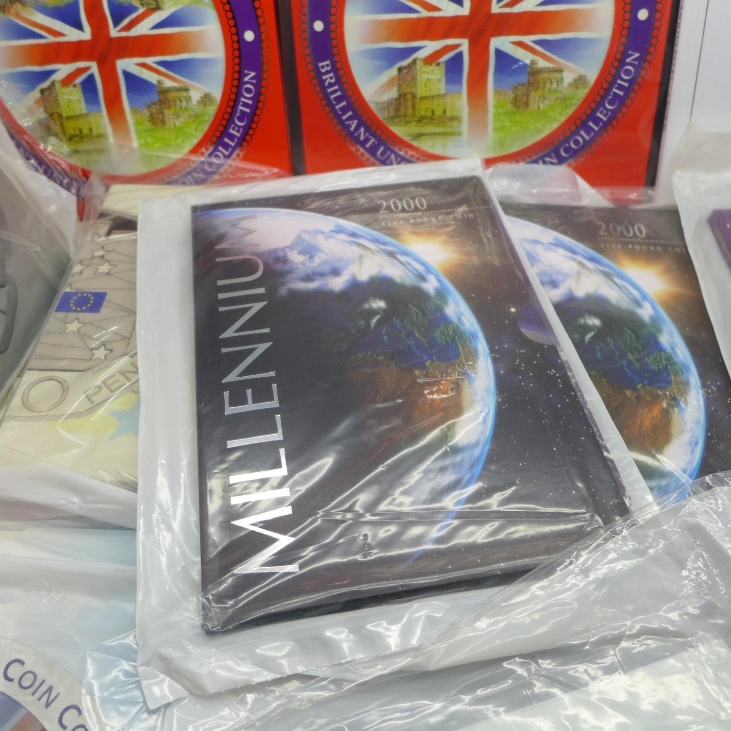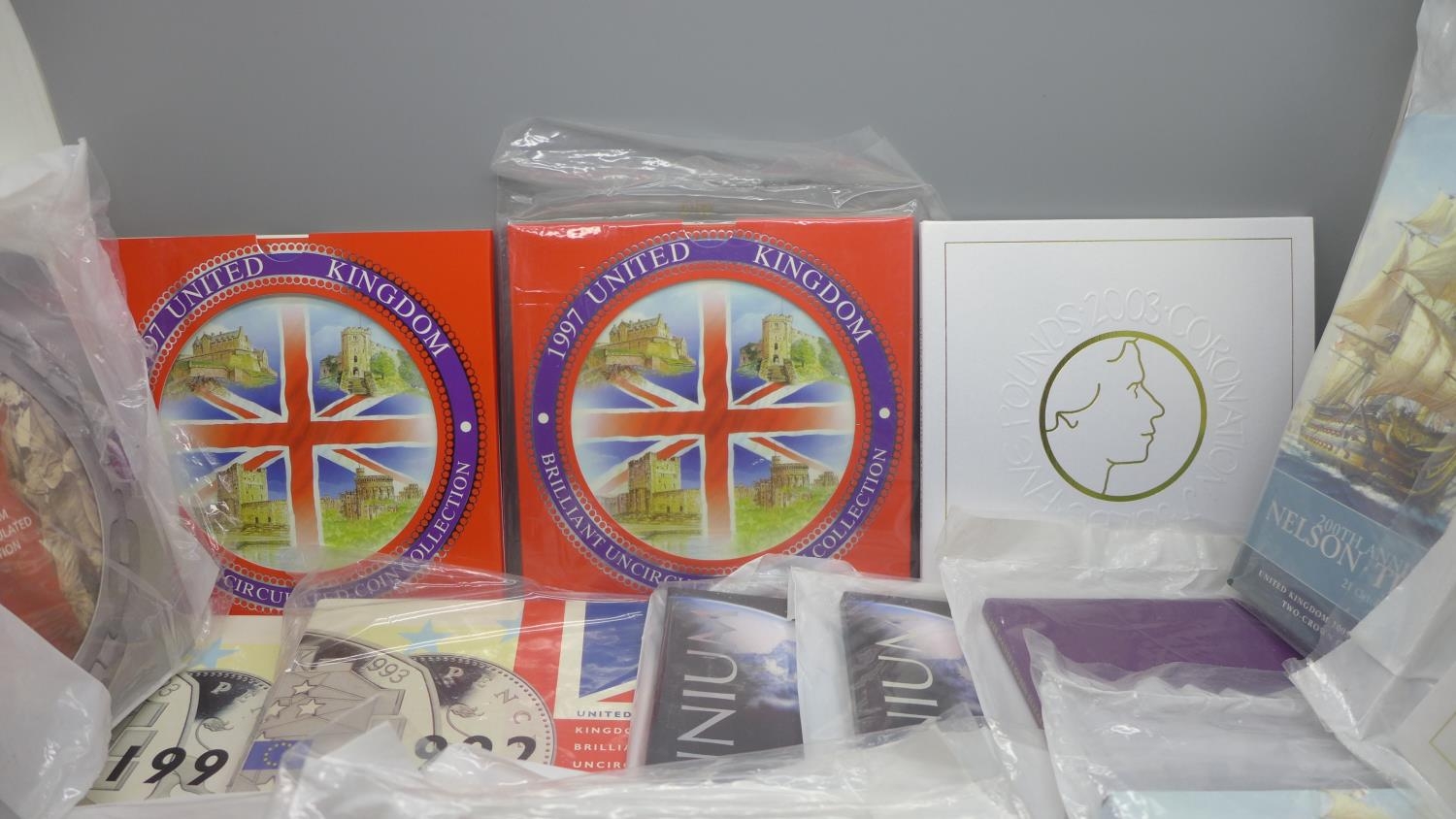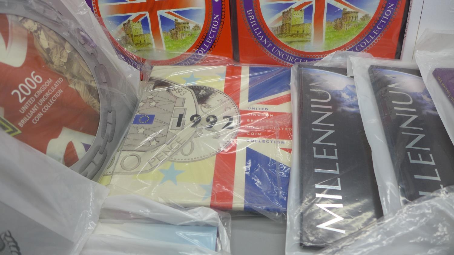 Eighteen uncirculated coin collection packs, nine duplicates, 9x2
