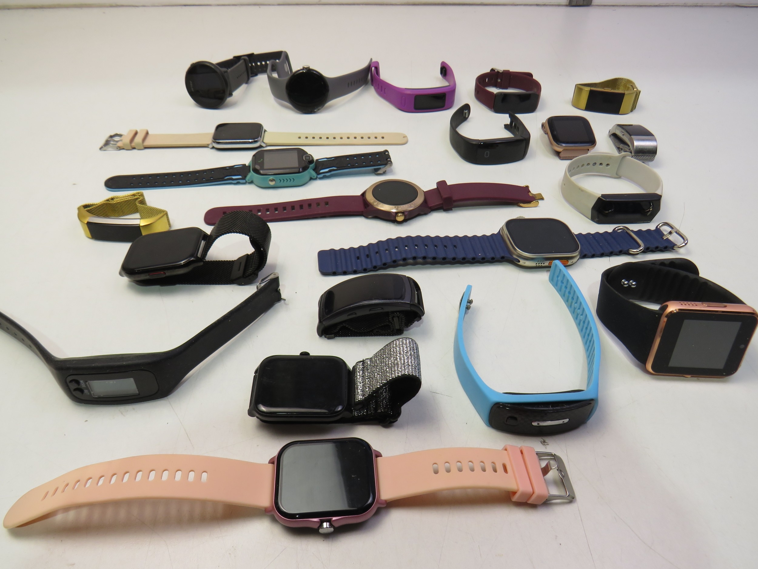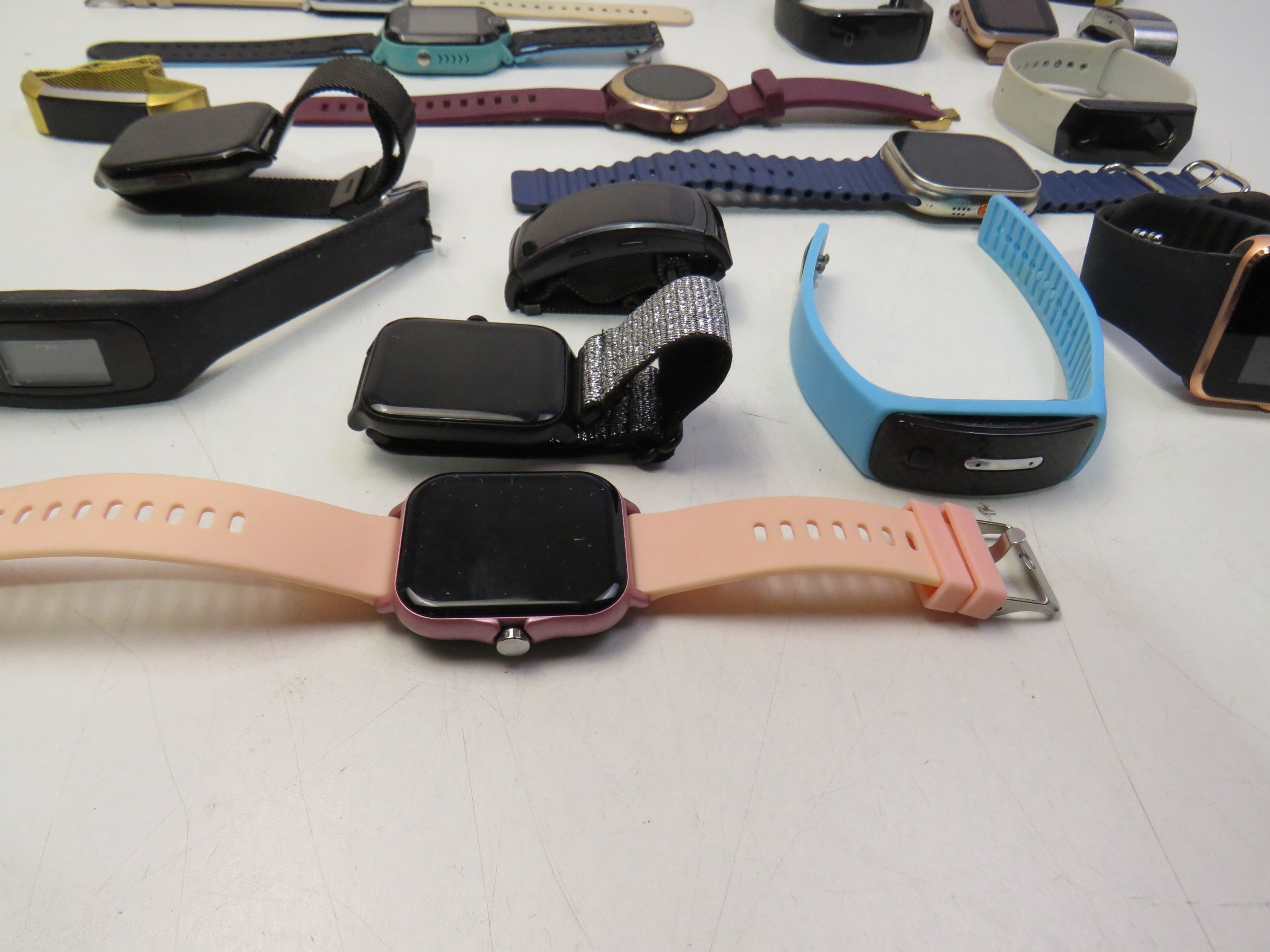Joblot of twenty-five smart watches and some chargers - untested