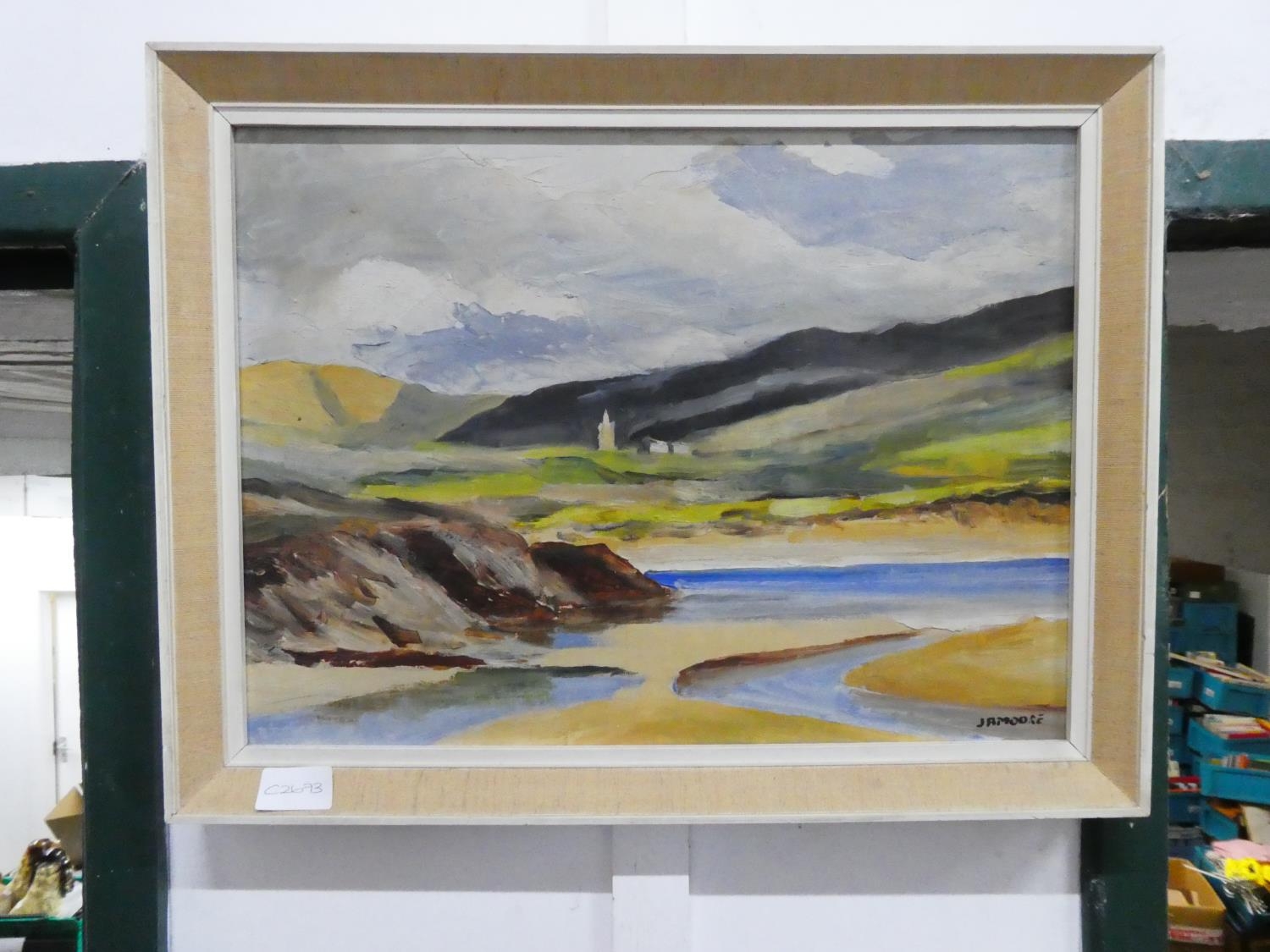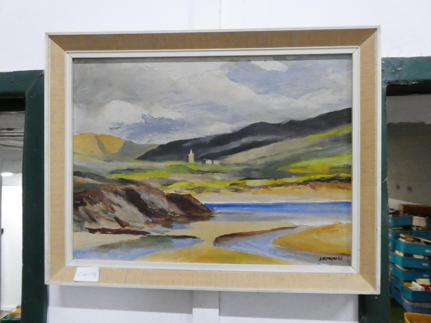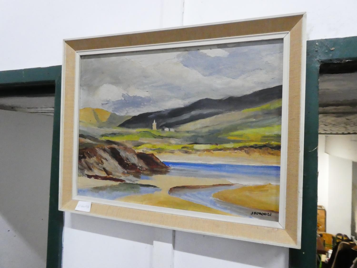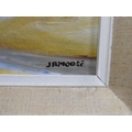A vintage framed oil painting, signed J A Moore.