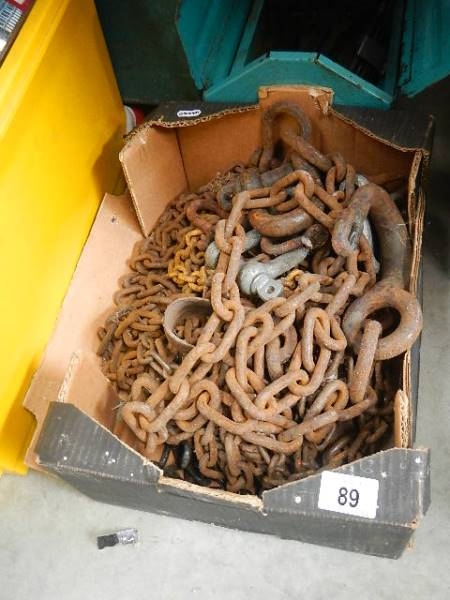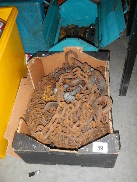 A box of old metal chains.