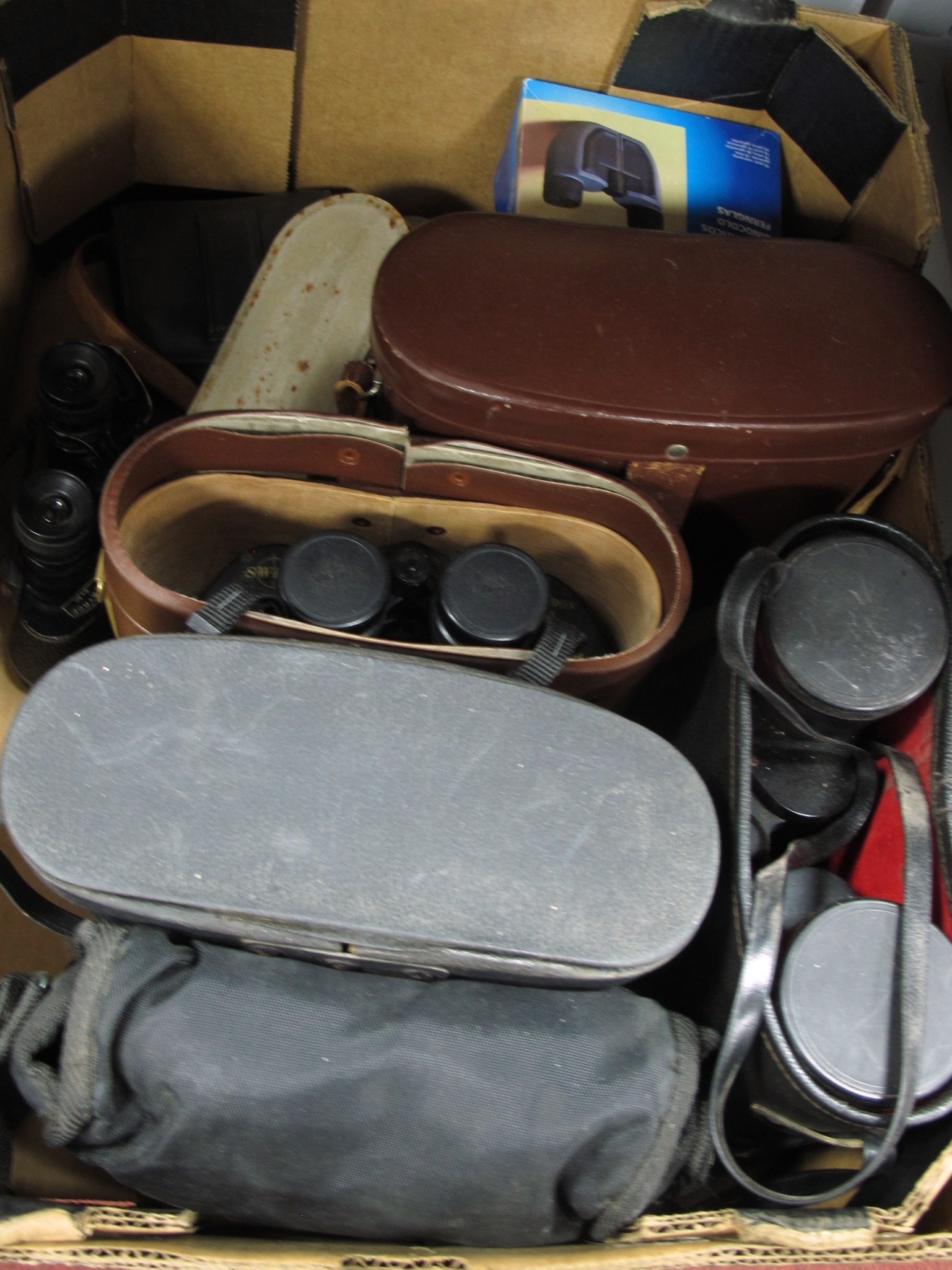 Binoculars; Swift Audubon 8.5x44, Carl Zeiss Jena 10x50w, Prinzlux 10x50, Mark Scheffel 20x50 various others. One Box [956819]