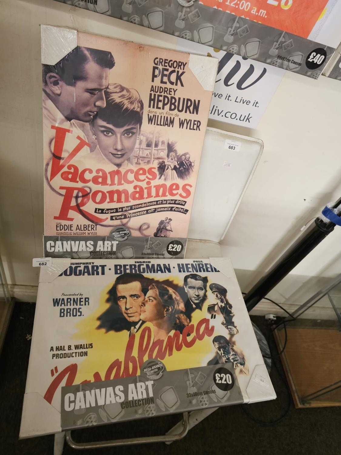 Canvas Art ; French movie poster for "Roman Holiday" (1953), featuring Gregory Peck and Audrey Hepburn and canvas art print of the movie poster for "Casablanca" (1942)