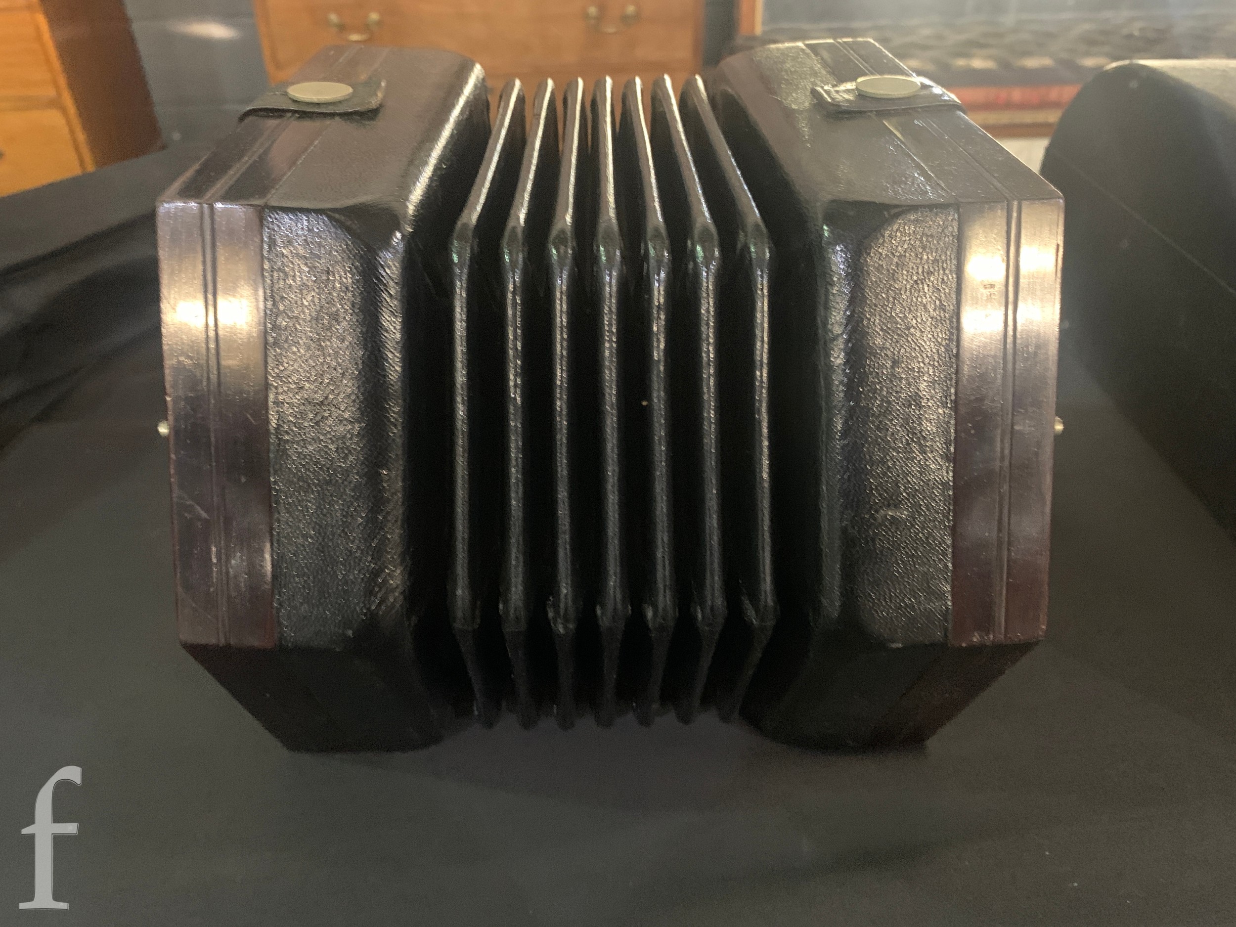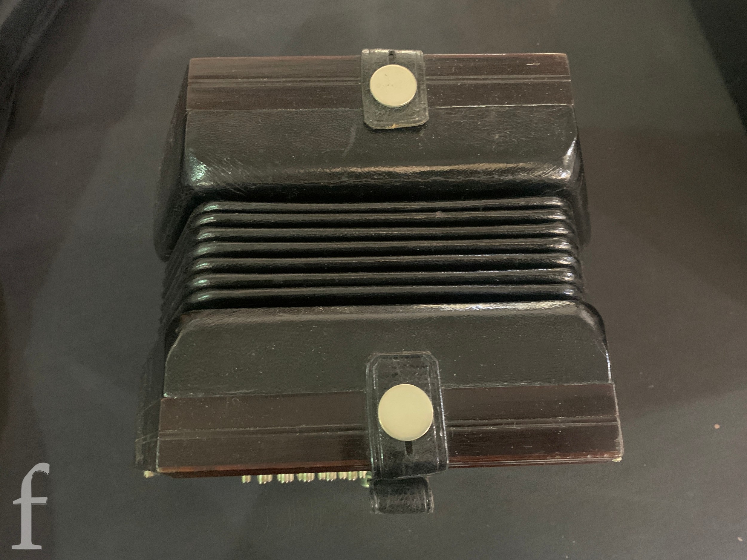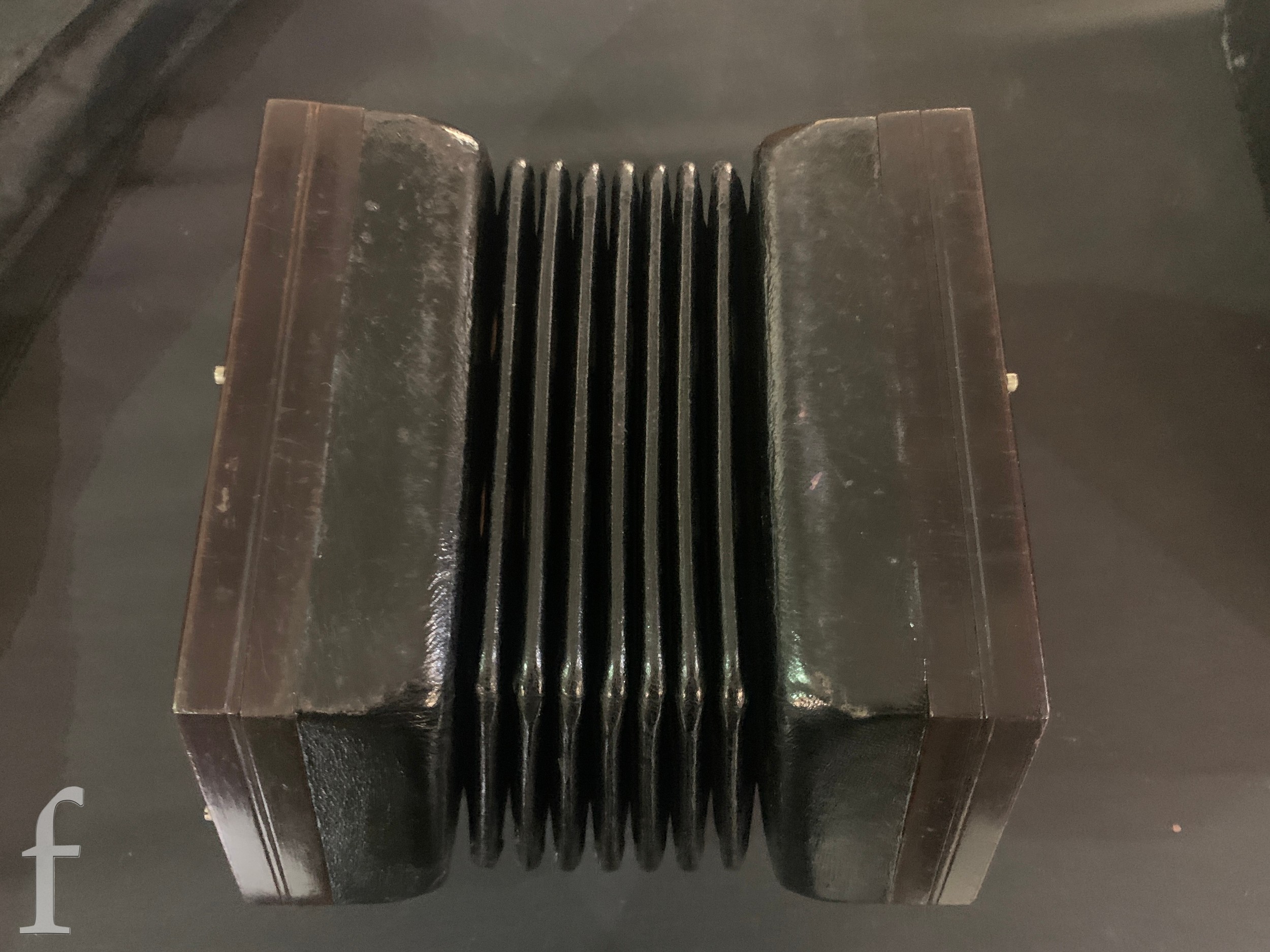 Concertina - Not named or numbered, some light pickling to the plated grills, plays and no splits to the black bellows