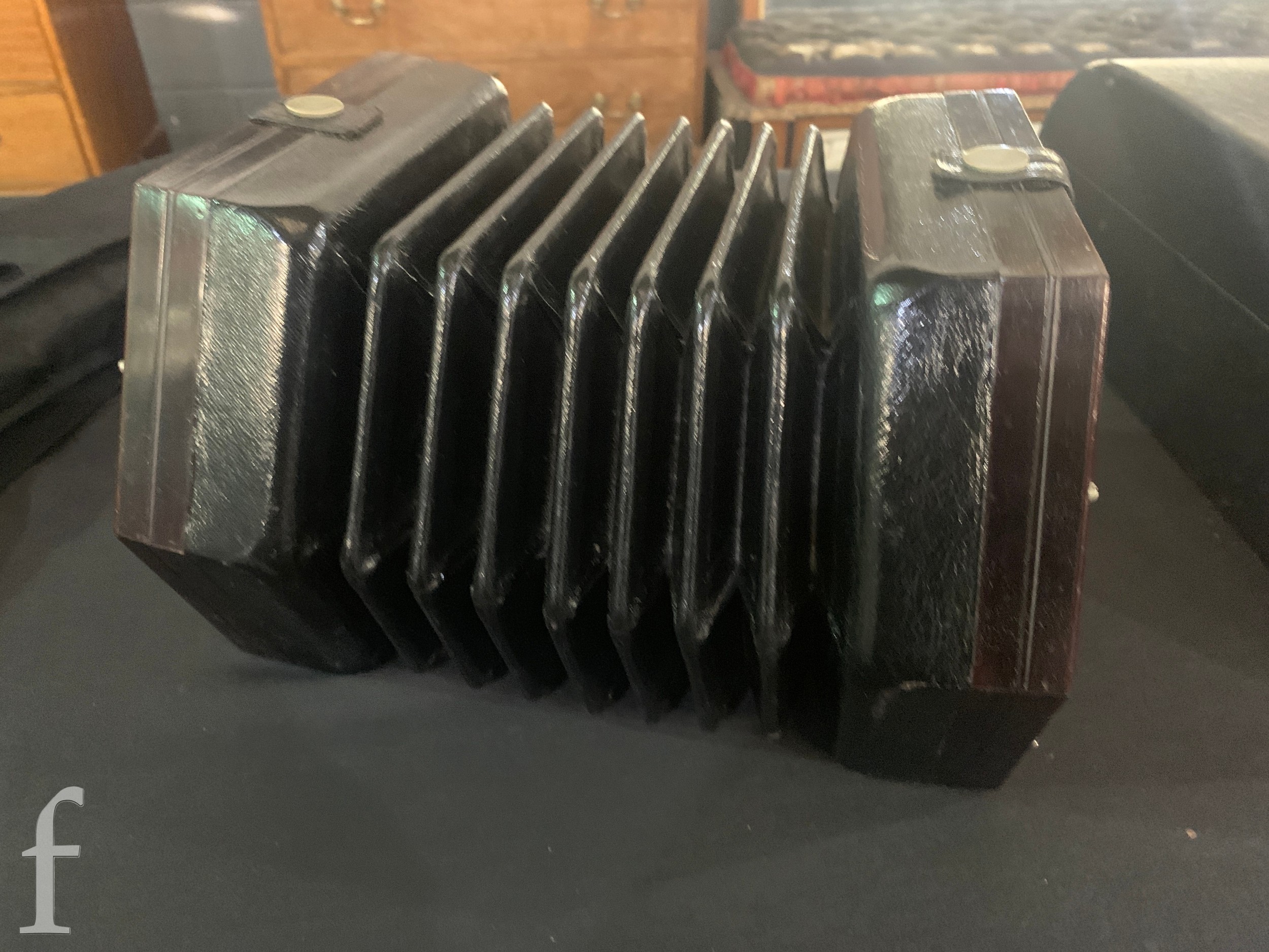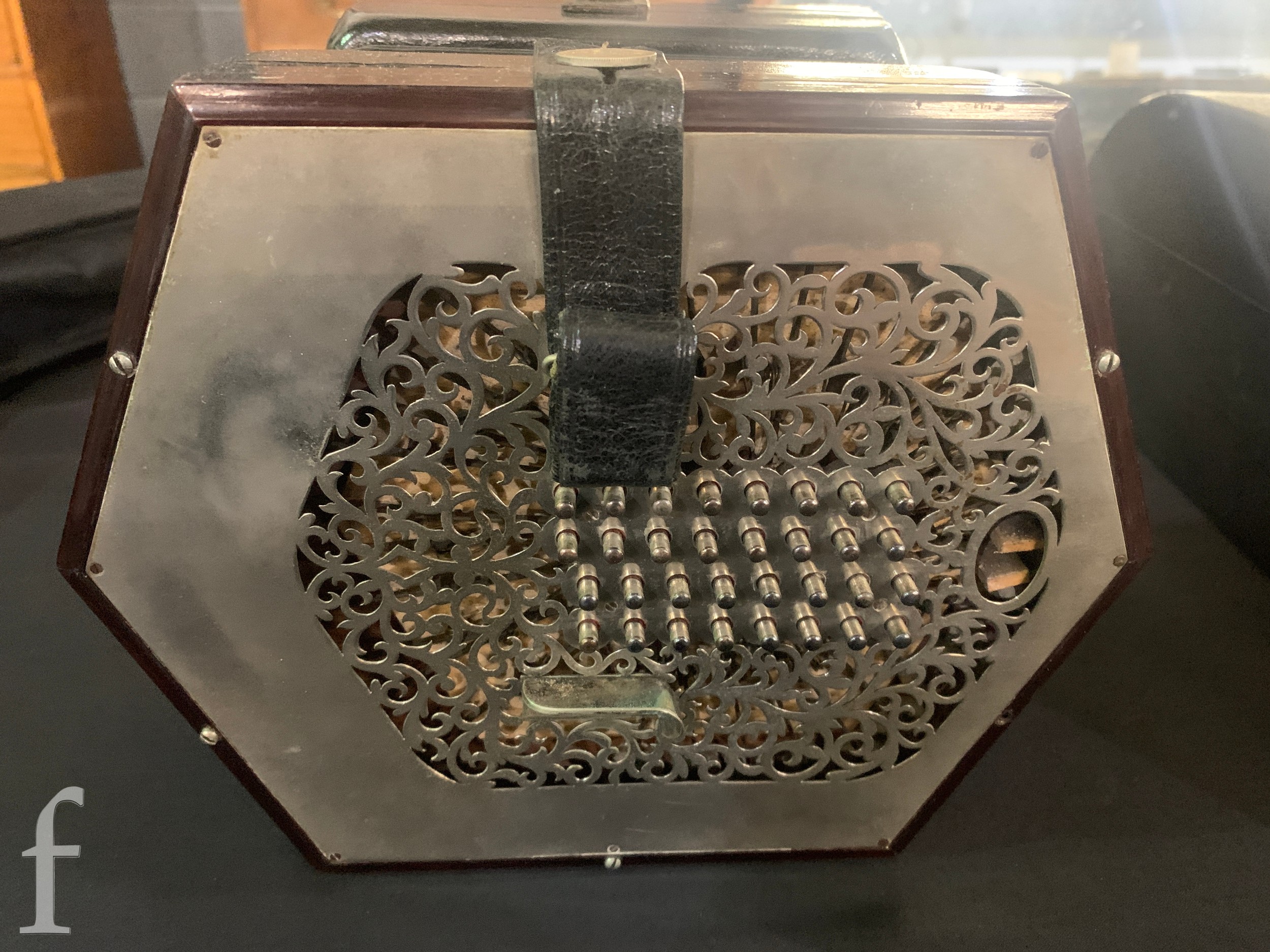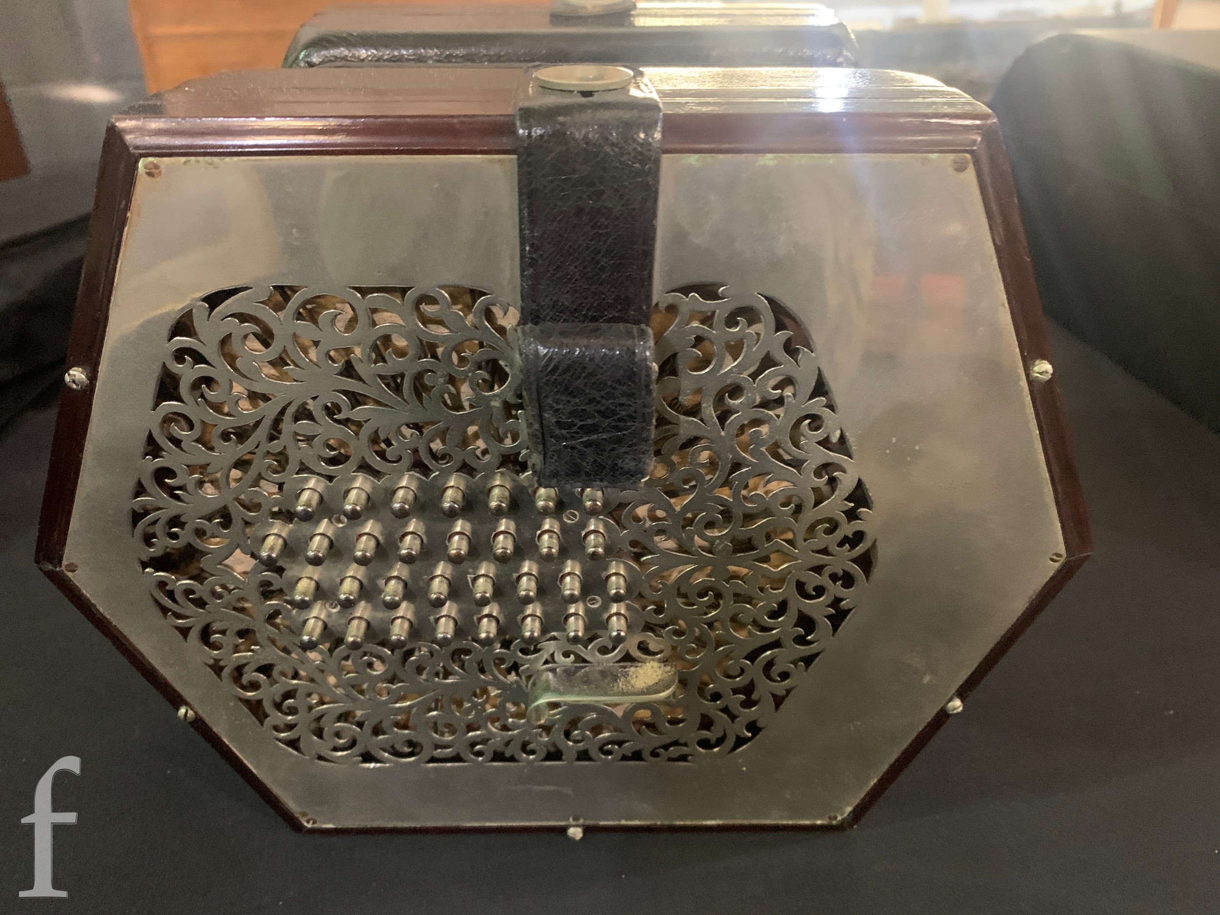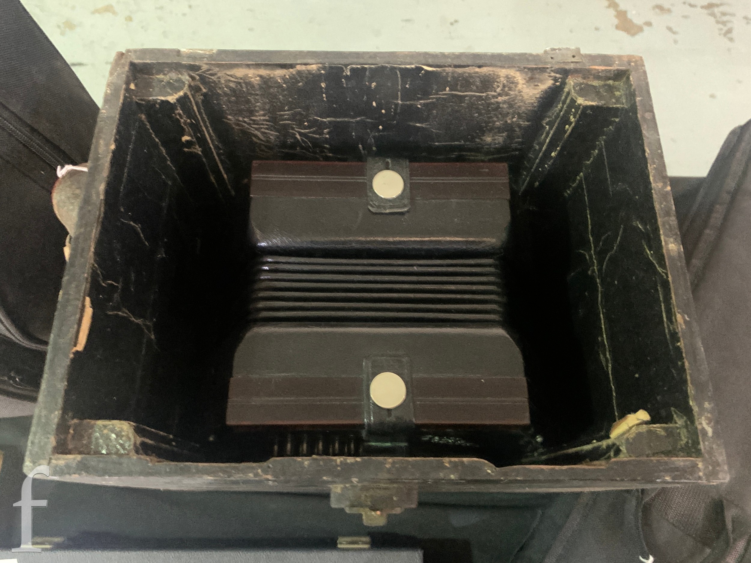 Concertina - Not named or numbered, some light pickling to the plated grills, plays and no splits to the black bellows