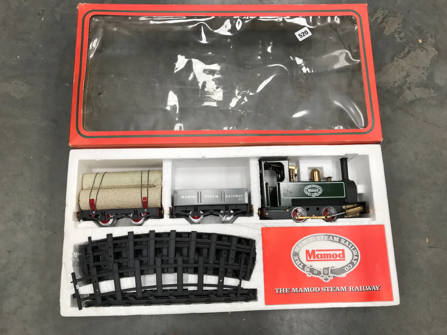 MAMOD STEAM RAILWAY CO MODEL LOCOMOTIVE AND TWO WAGONS IN BO...