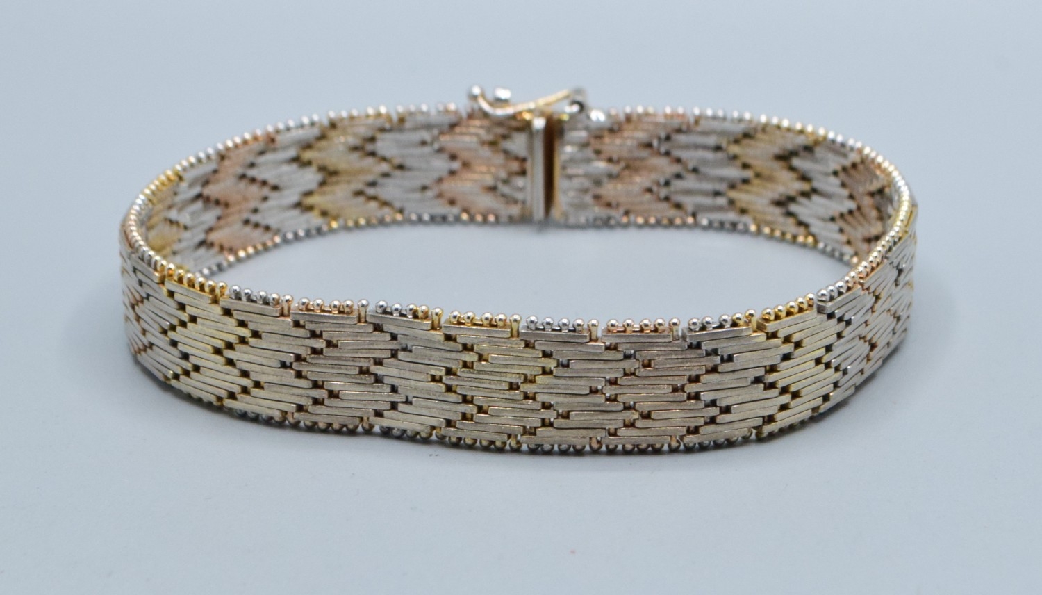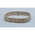 Two colour silver and gilt chevron weave mesh bracelet 19cm long 1.0cm wide