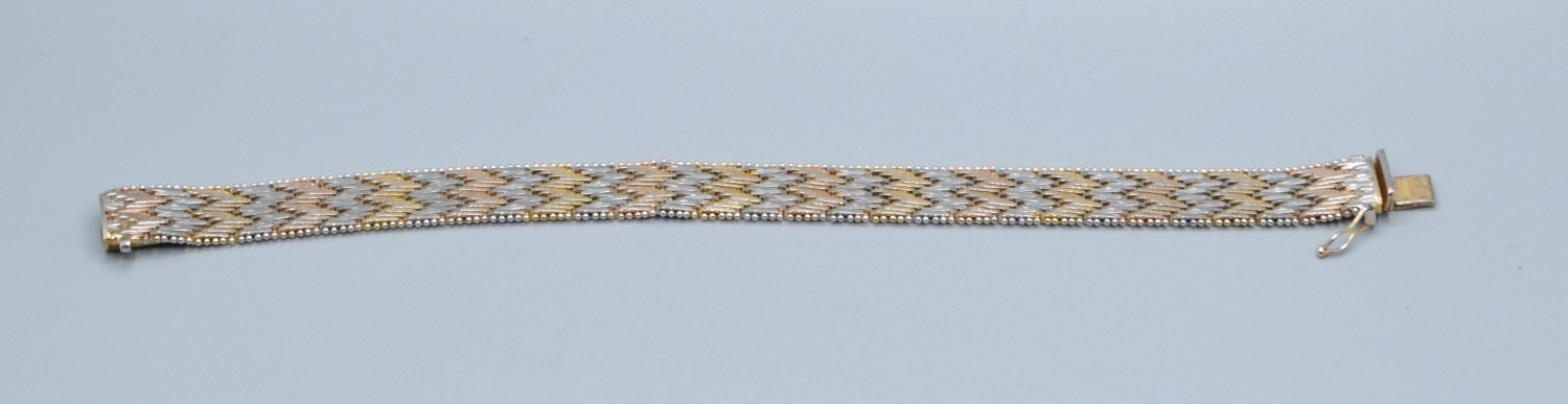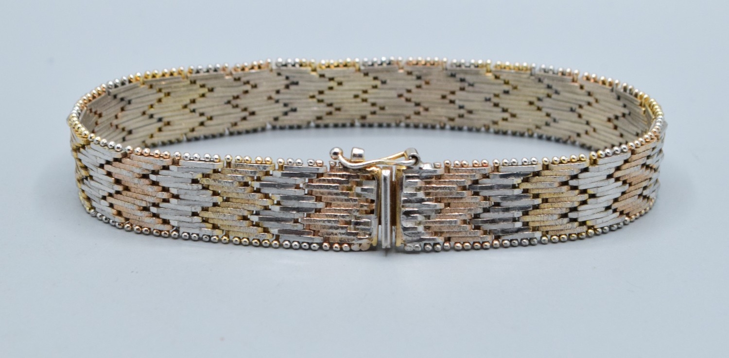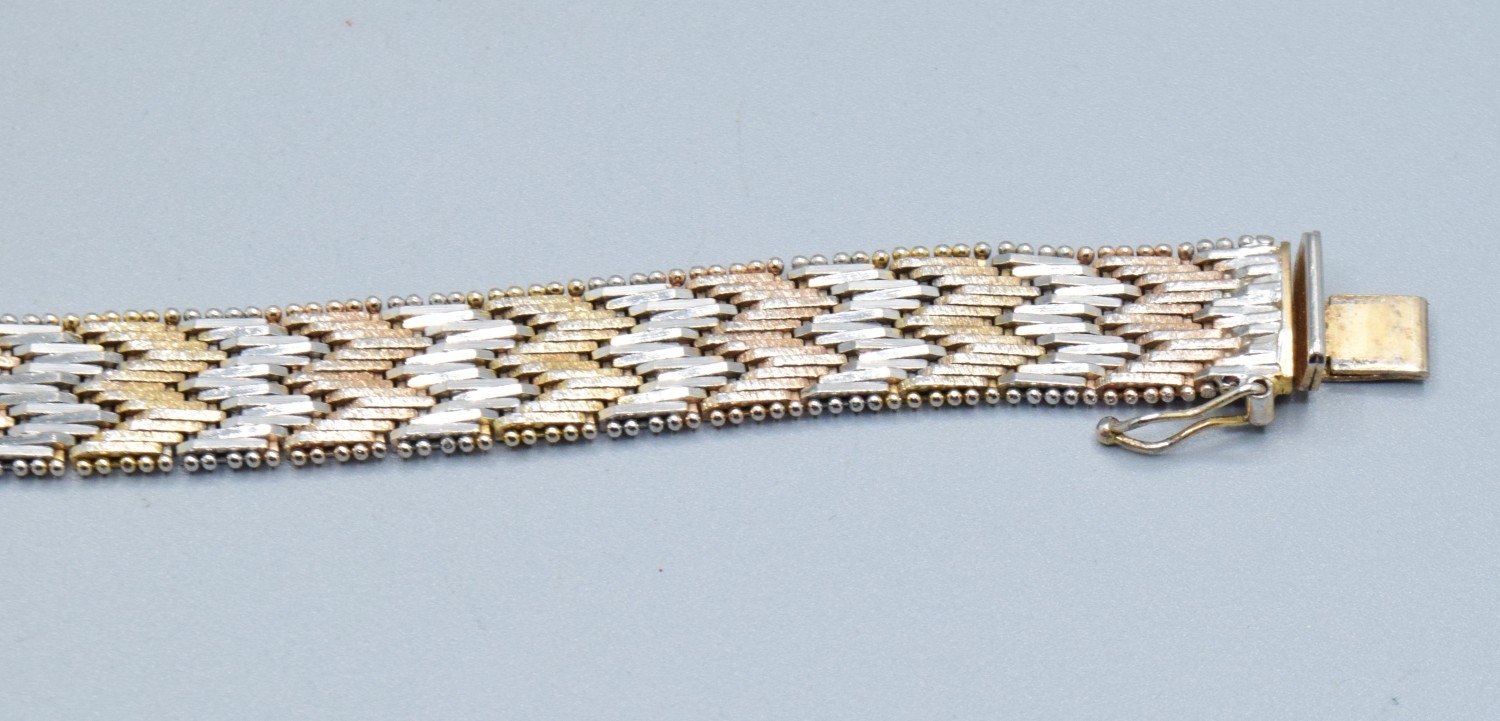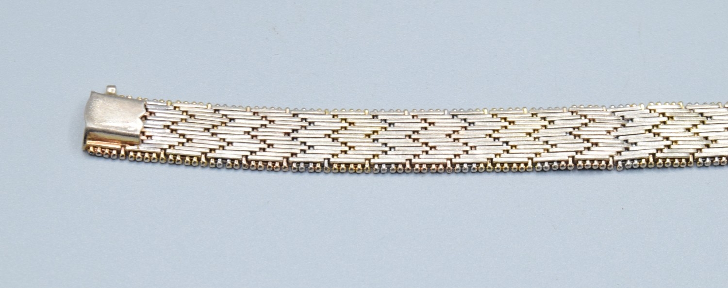 Two colour silver and gilt chevron weave mesh bracelet 19cm ...
