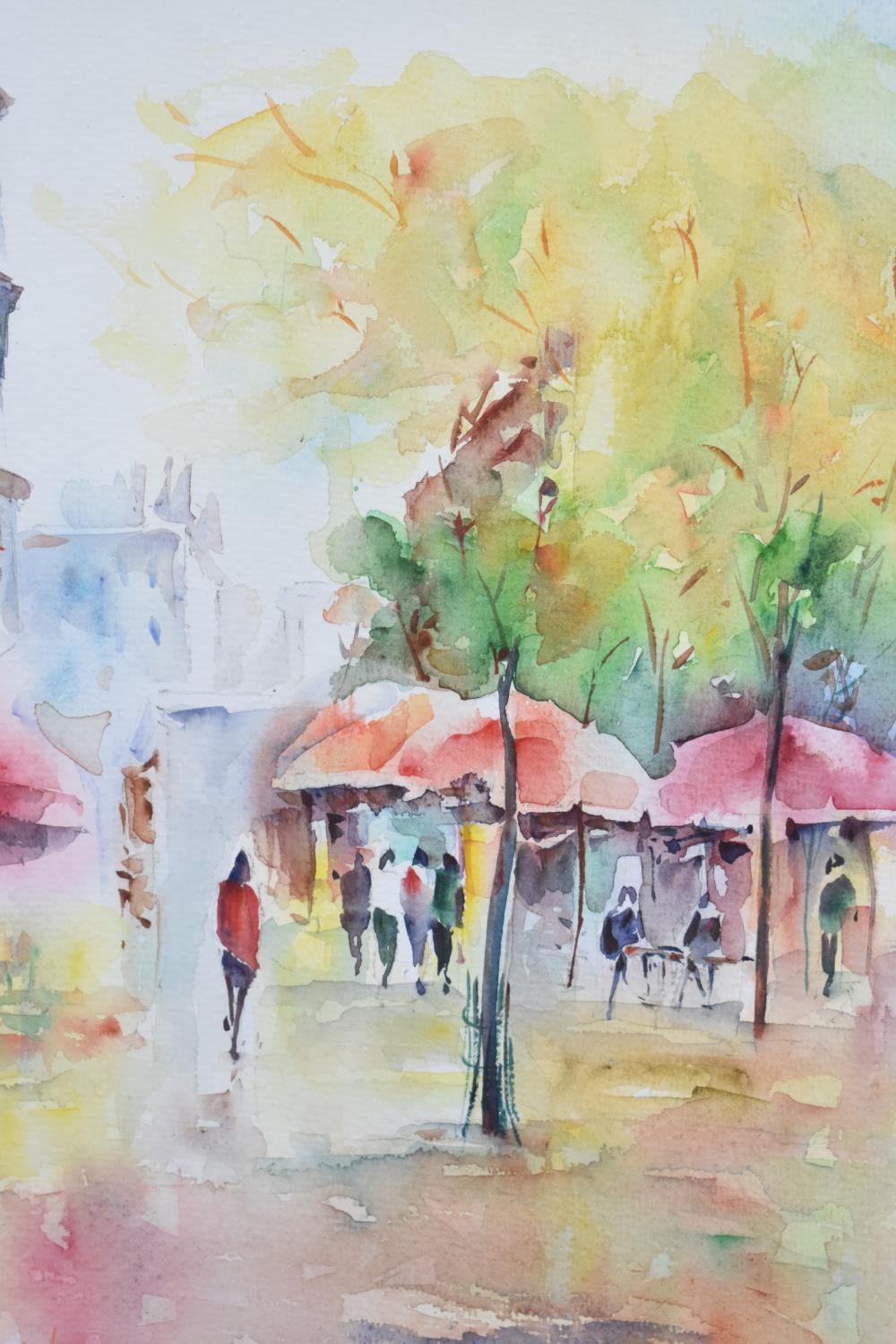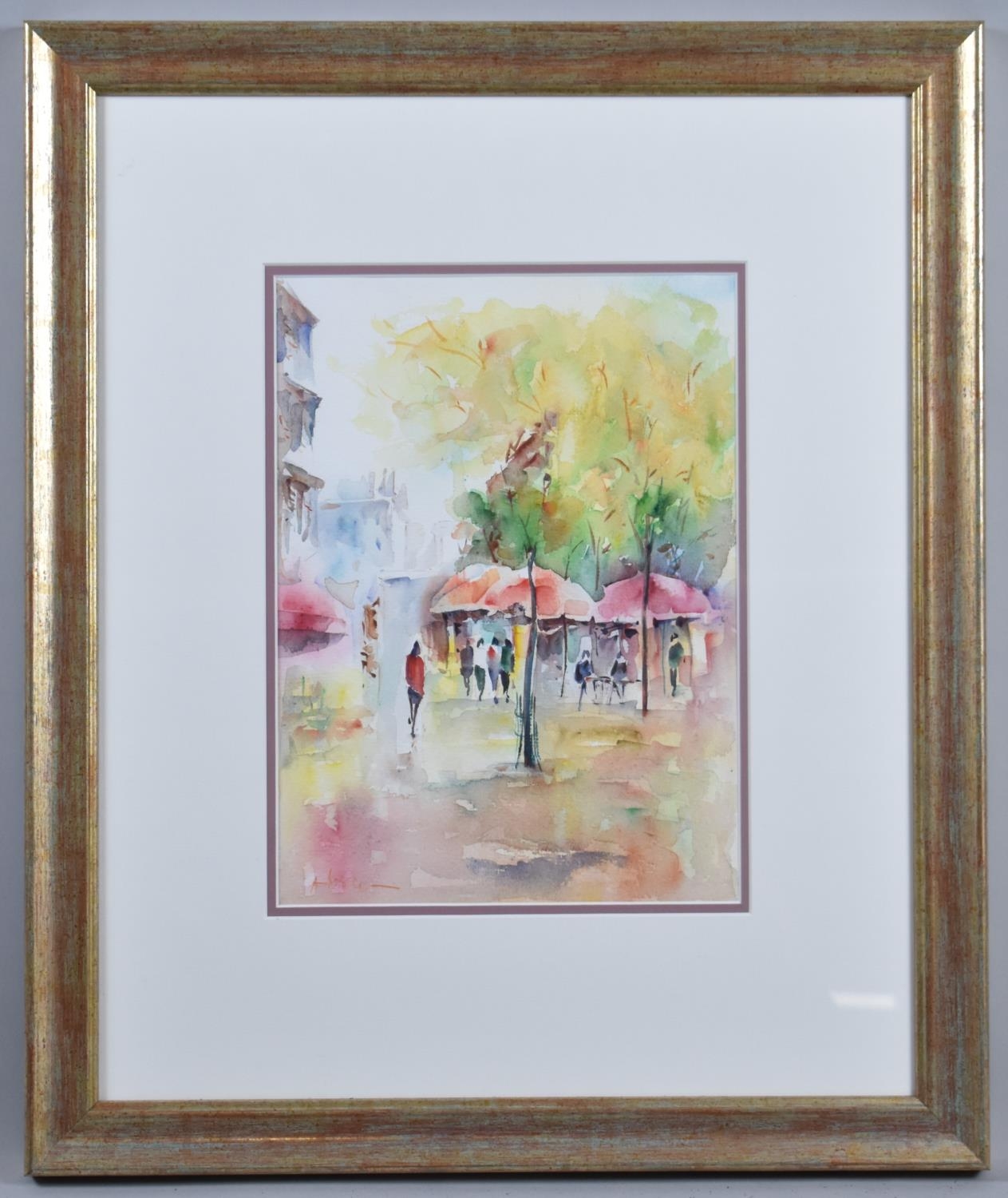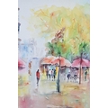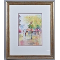 A Framed French Watercolour, Street Cafe, 26cm wide