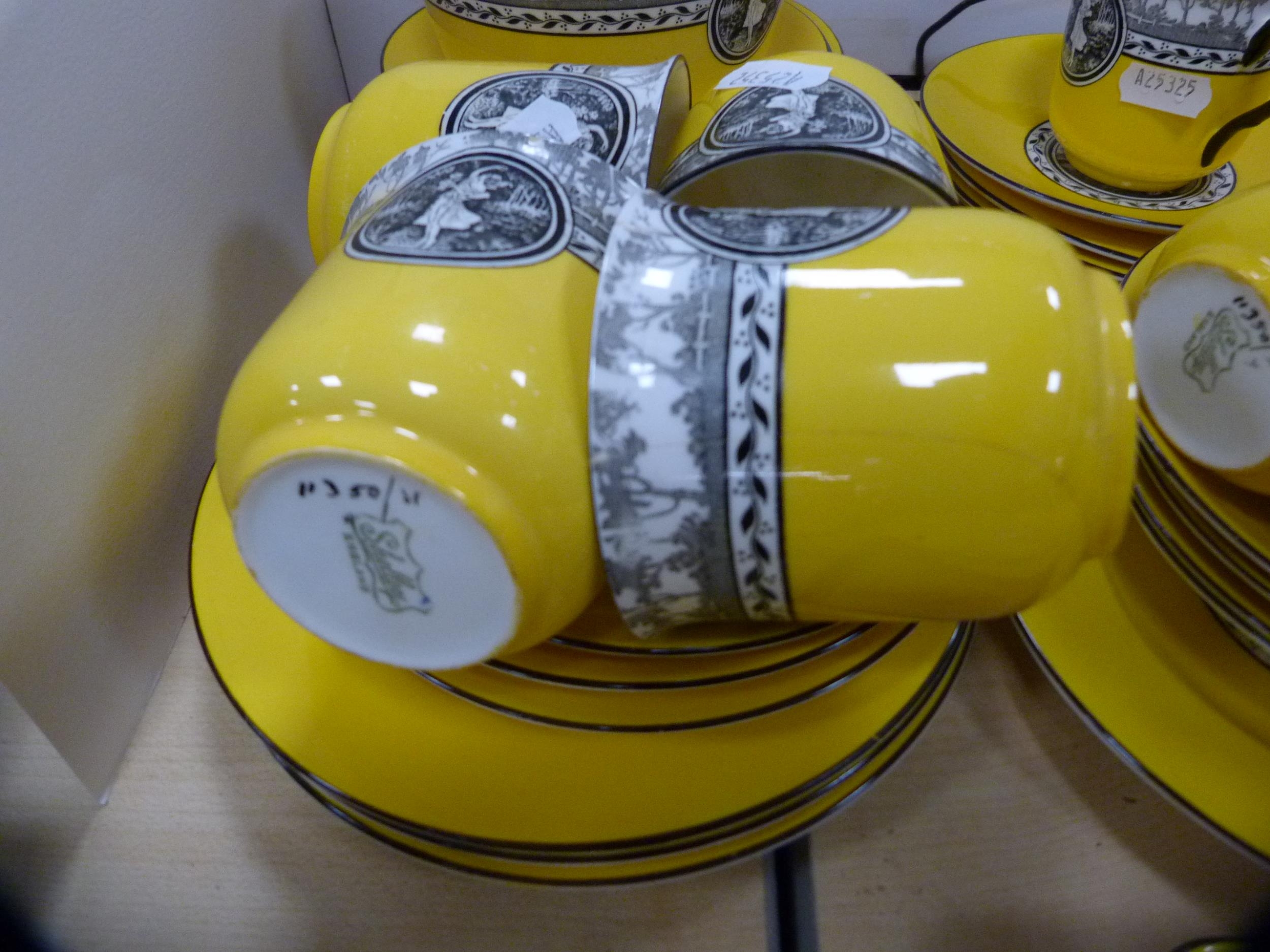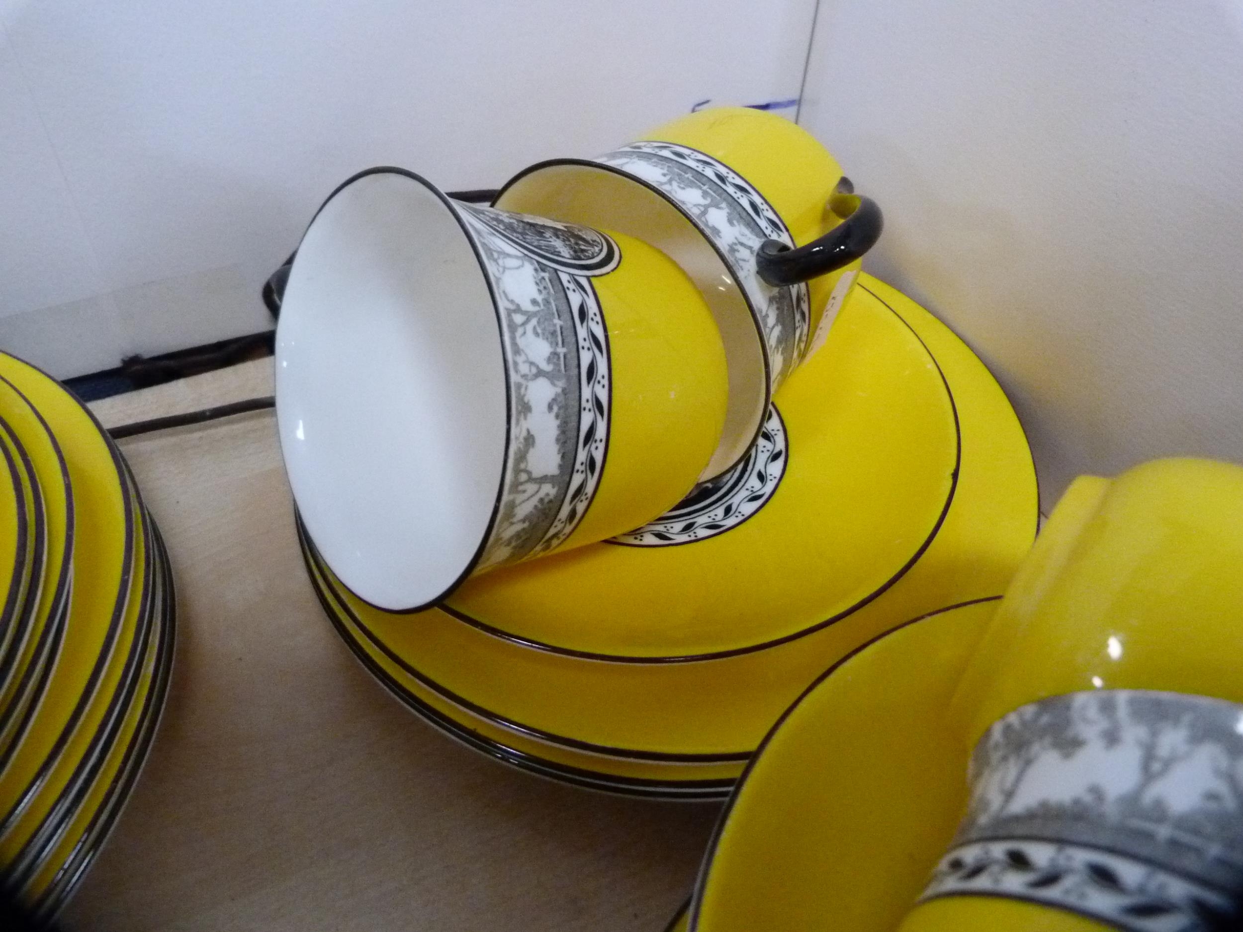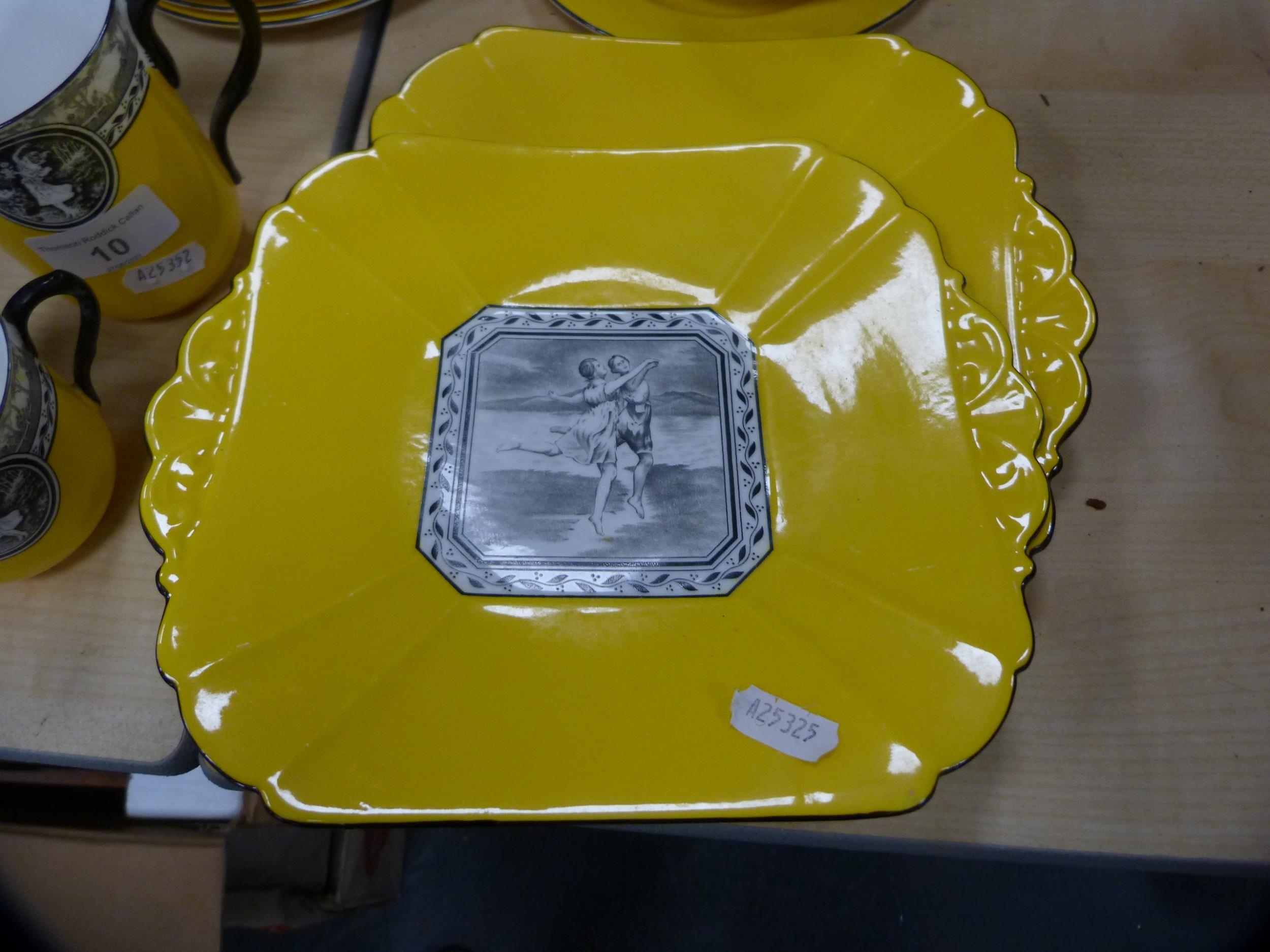 Shelley part tea set decorated with a pictorial scene of female dancers on a yellow ground. (39)