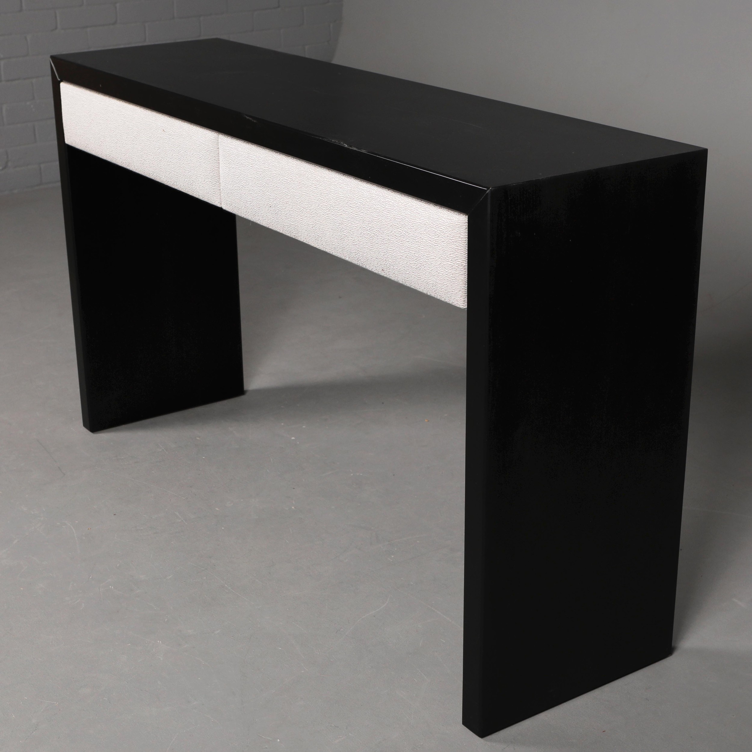 ATTRIBUTED TO THE SOFA & CHAIR COMPANY SOHO CONSOLE TABLE. 2 drawers, 140cm x 38cm x 80cm approx.