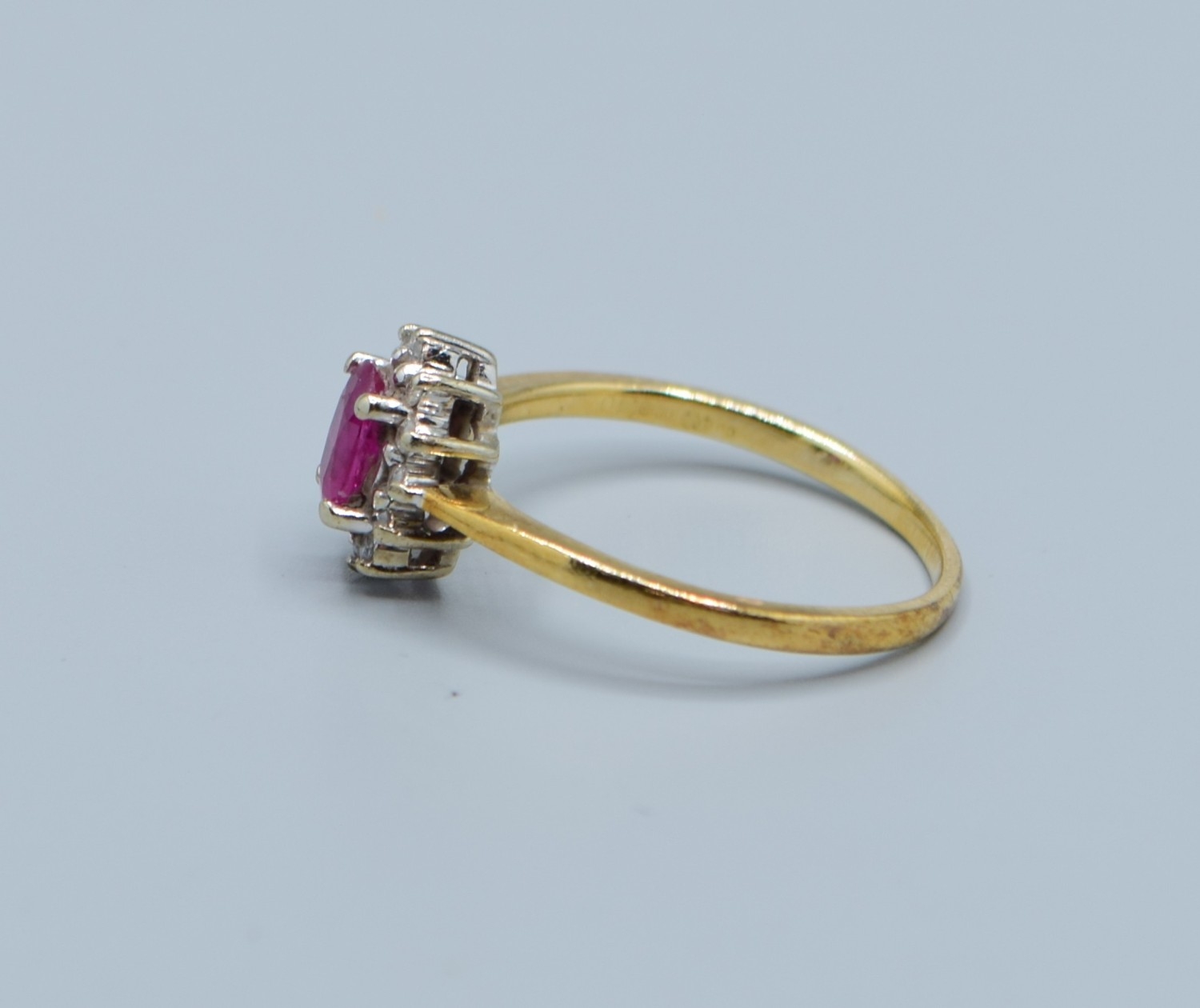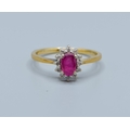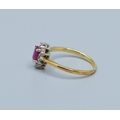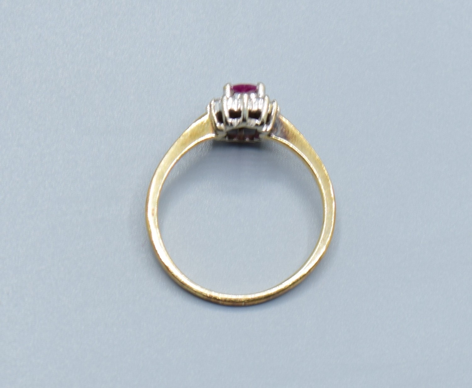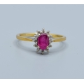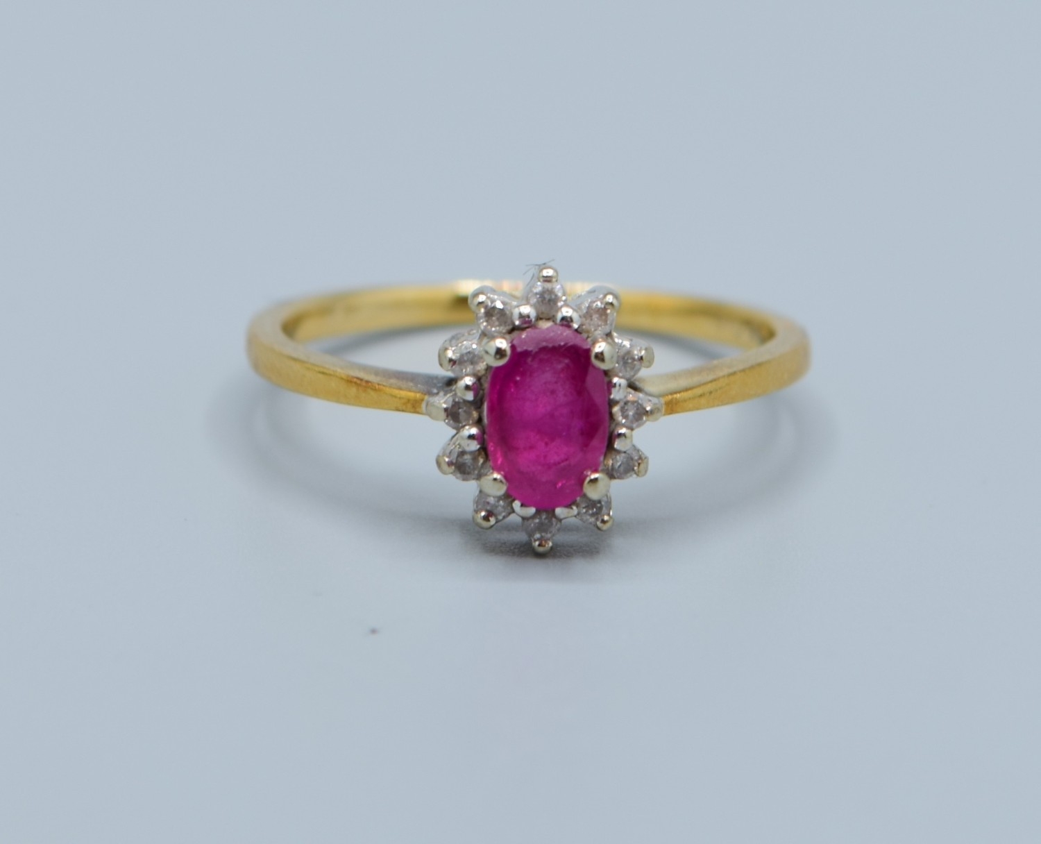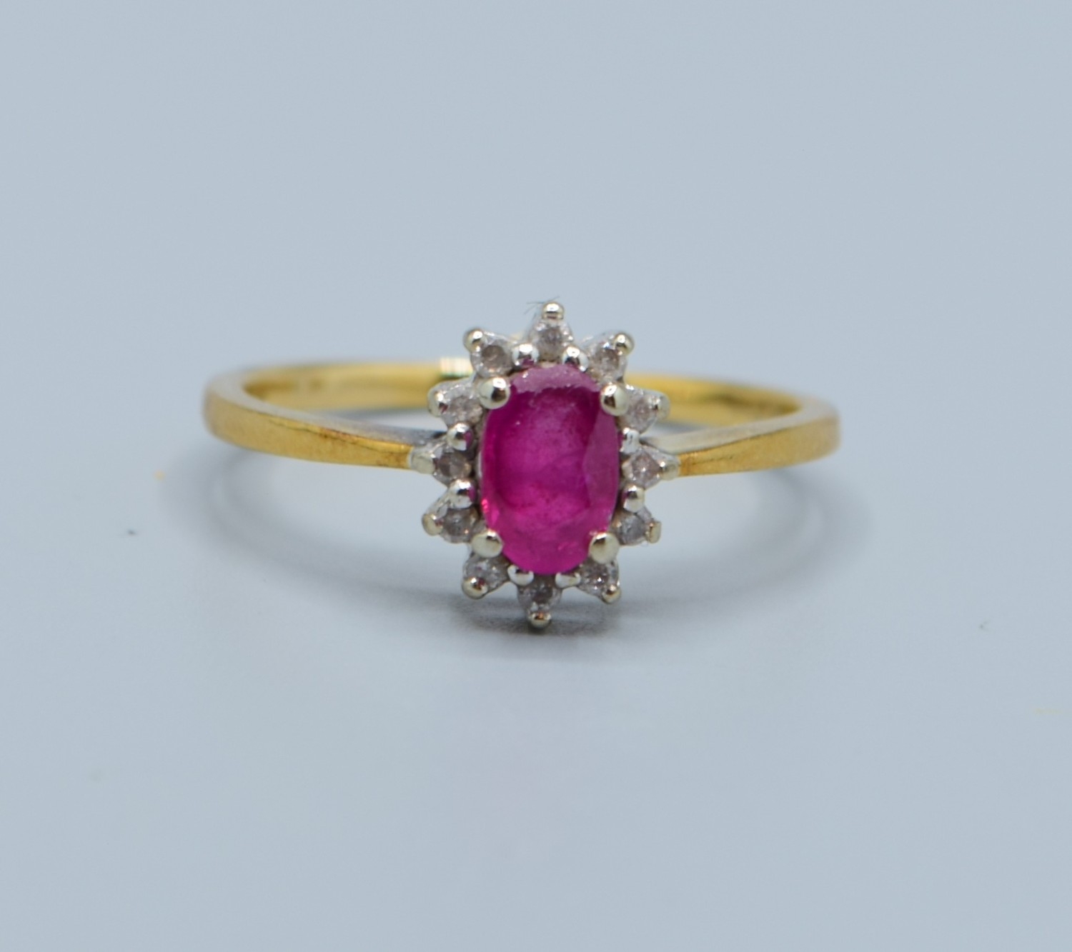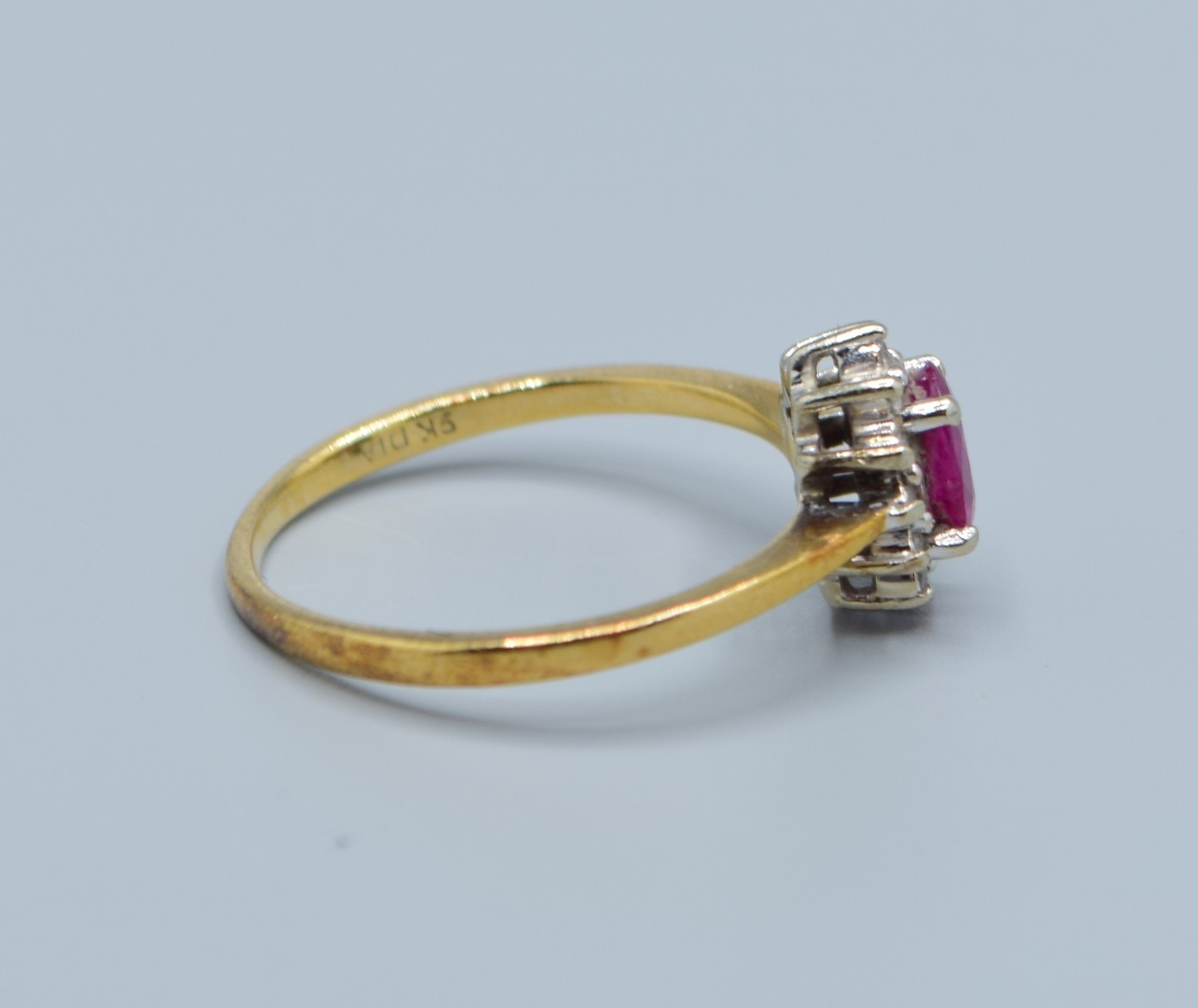 9ct gold ladies Ruby and Diamond halo cluster ring hallmarked as Diamond in the ring size M